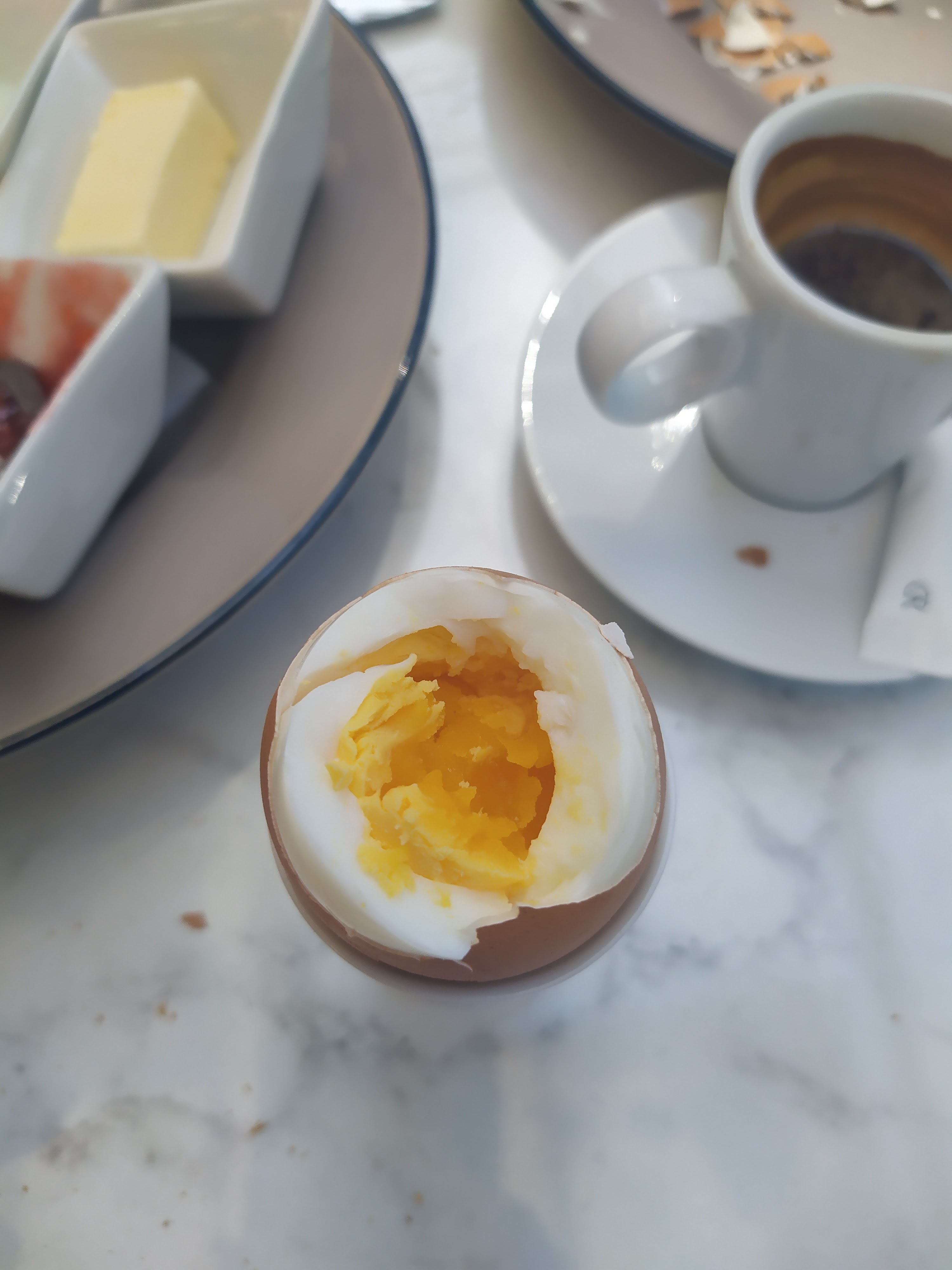 Petit déjeuner attrayant sur le panneau d'affichage. Nous choisissons la formule passionnément. Nous sommes étonnés car à la commande on ne nous demande pas nos choix. J'appelle le serveur, je sens que je l'agace. Plus de jus de pamplemousse, ok pas grave. On nous sert, il manque le fromage blanc granola maison. Le serveur nous répond que depuis 3 mois qu'il est là c'est la première fois qu'on lui demande. Quand je lui fait remarquer que c'est sur le panneau à l'extérieur, un responsable (je suppose) me répond : il y a le panneau et ce qu'on vous propose vraiment ilfaut vous renseigner à intérieur... Non c'est juste de l'arnaque. Les 2 oeufs brouillés sont devenus un oeuf coque, enfin non un oeuf dur... Nul Je ne reviendrai pas