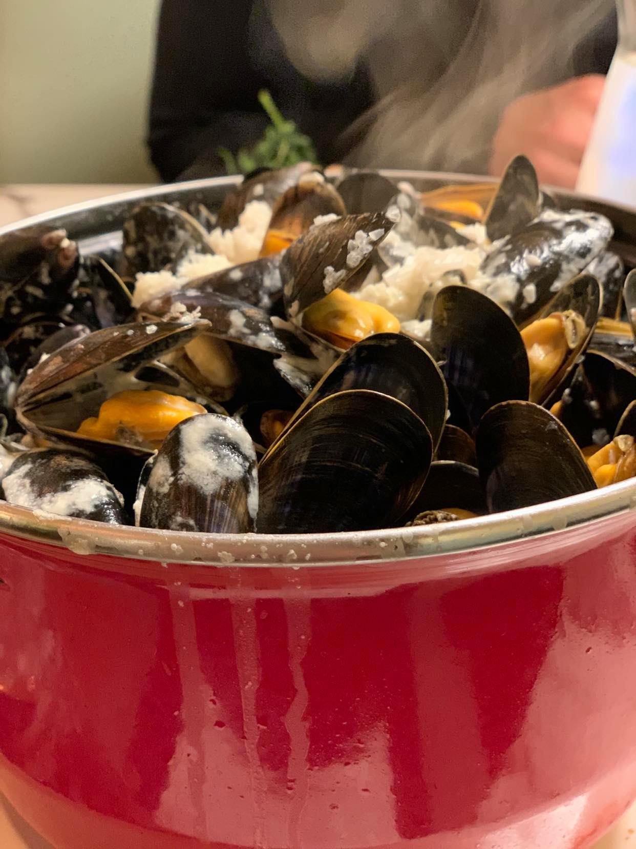 L’onglet de veau était vraiment bon. J’ai fini toute mon assiette alors que c’est très rare que je la finisse.. ce qui prouve que j’ai adoré ! Les moules à la crème, un délice 👌🏼 on se croirait en Normandie avec le cadre.