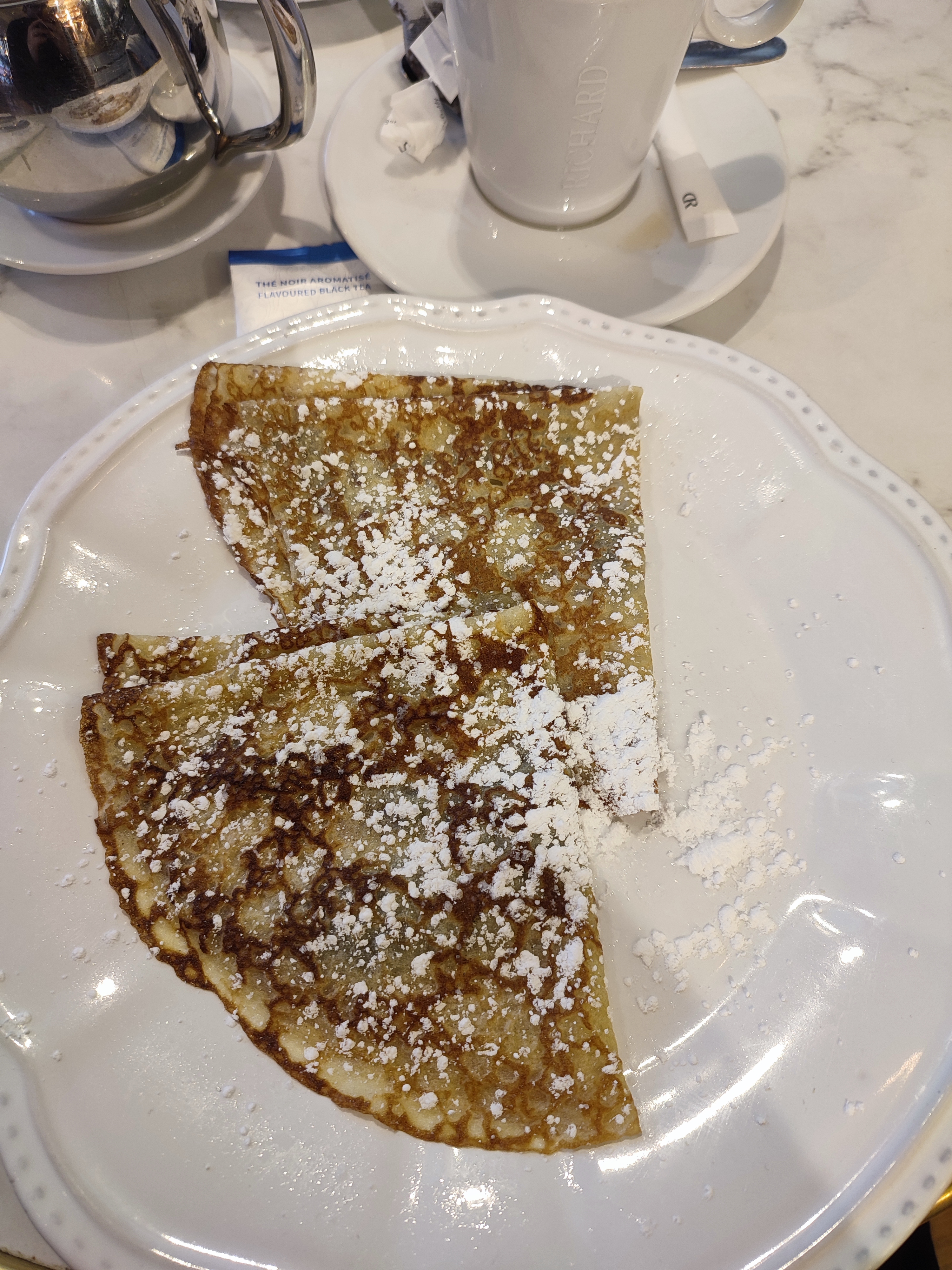 Le cadre est sympathique. J'ai pris un earl grey et une crêpe au Nutella, enfin une crêpe timide en Nutella 😅 mais ça ne m'a pas empêché de l'apprécier. Petit bémol le serveur est venu nous demander si il pouvait encaisser alors qu'on était encore à table.