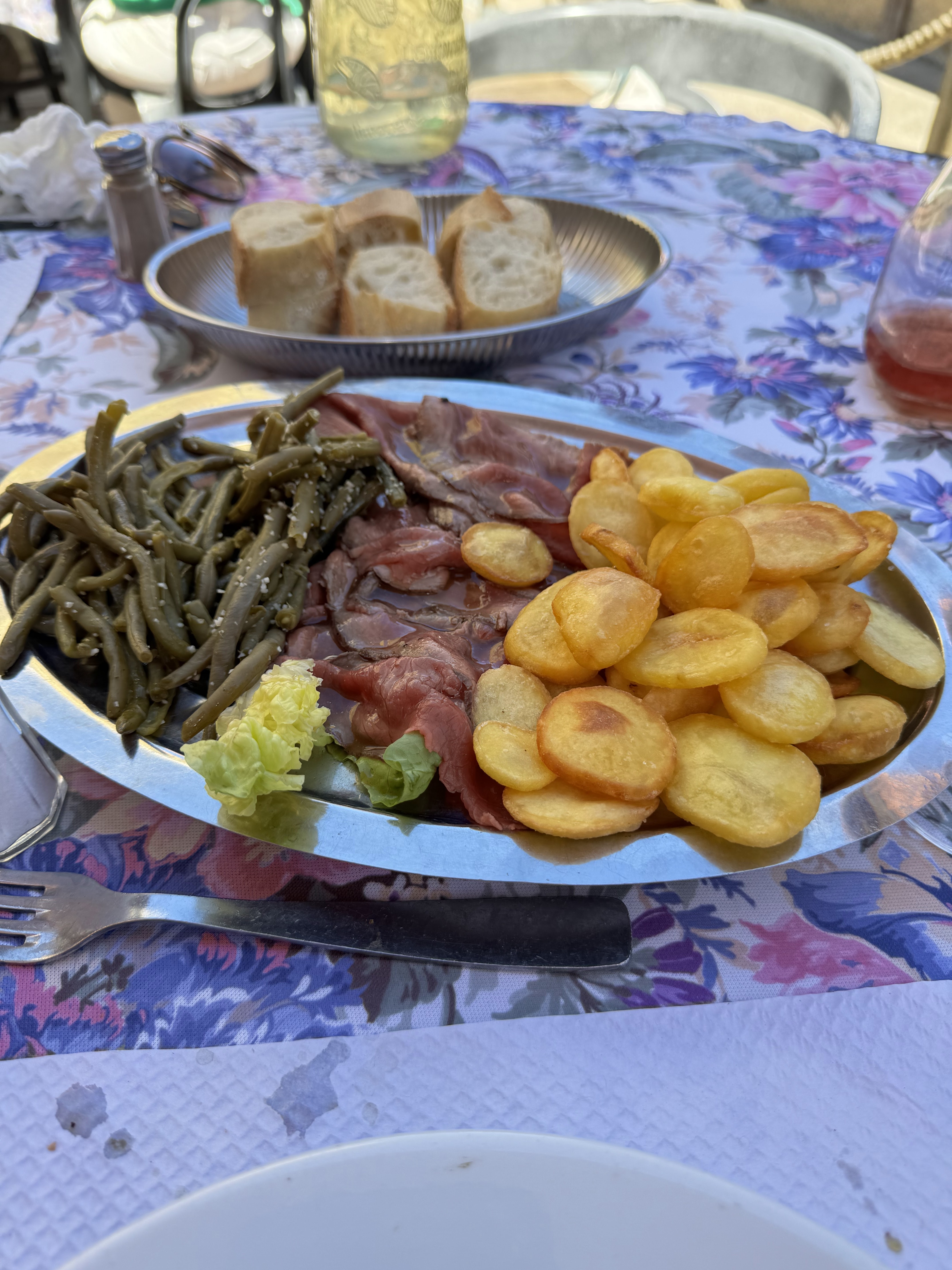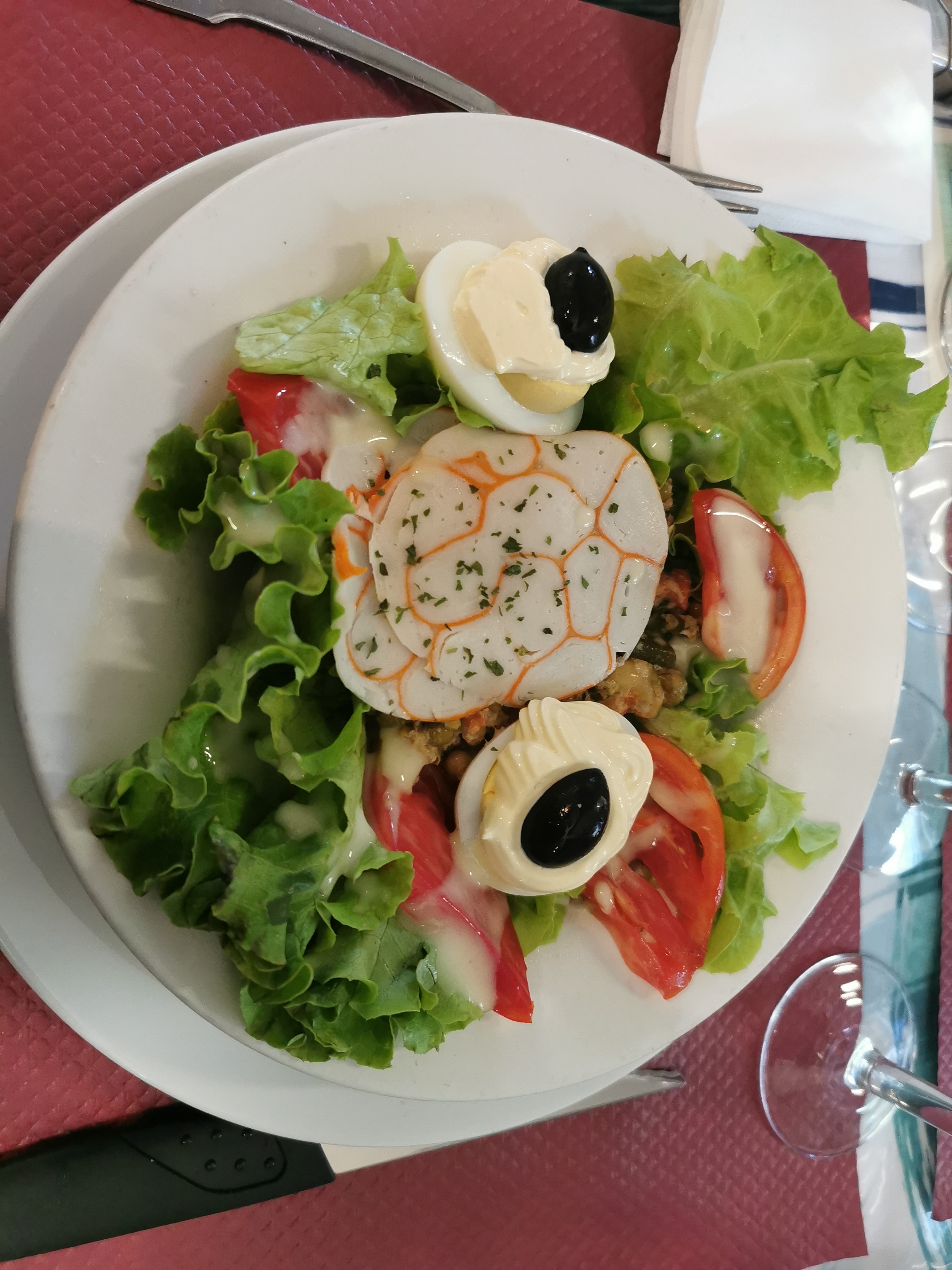 1 repas très complet. Certes vous n'avez pas de carte pour choisir. Mais alors vous ne sortirez pas de cet endroit le ventre vide. Donc 1 plat principal avec, soupe, moules ou salade composée, assiette de charcuterie, fromages et dessert. Les patrons sont d'une belle gentillesse et souriants. Pour un prix très raisonnable, faites vous plaisir et bon appétit