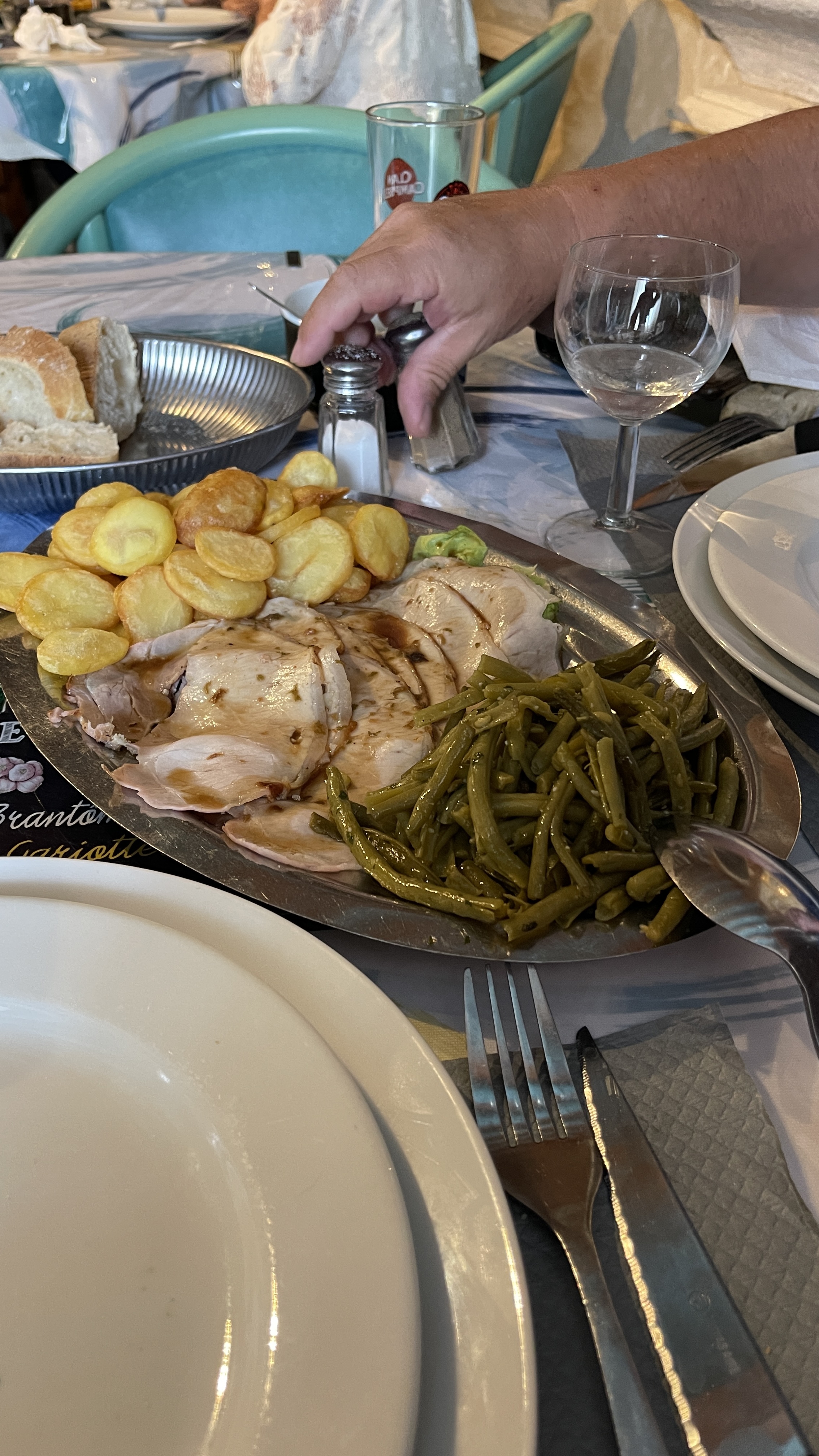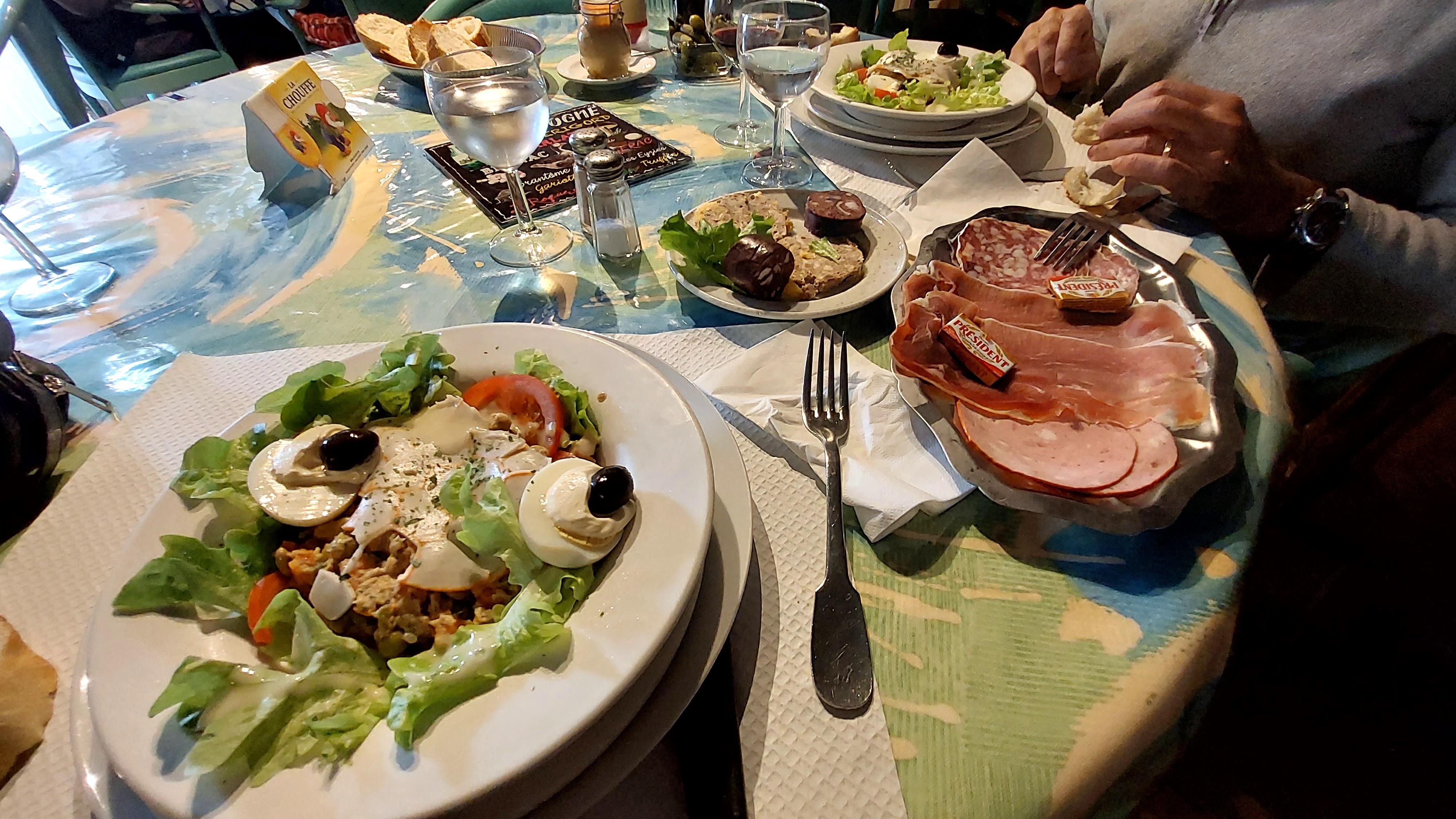 Superbe repas, menu du Jour, 6 plats, vins ( pichet) à volonté...17€50