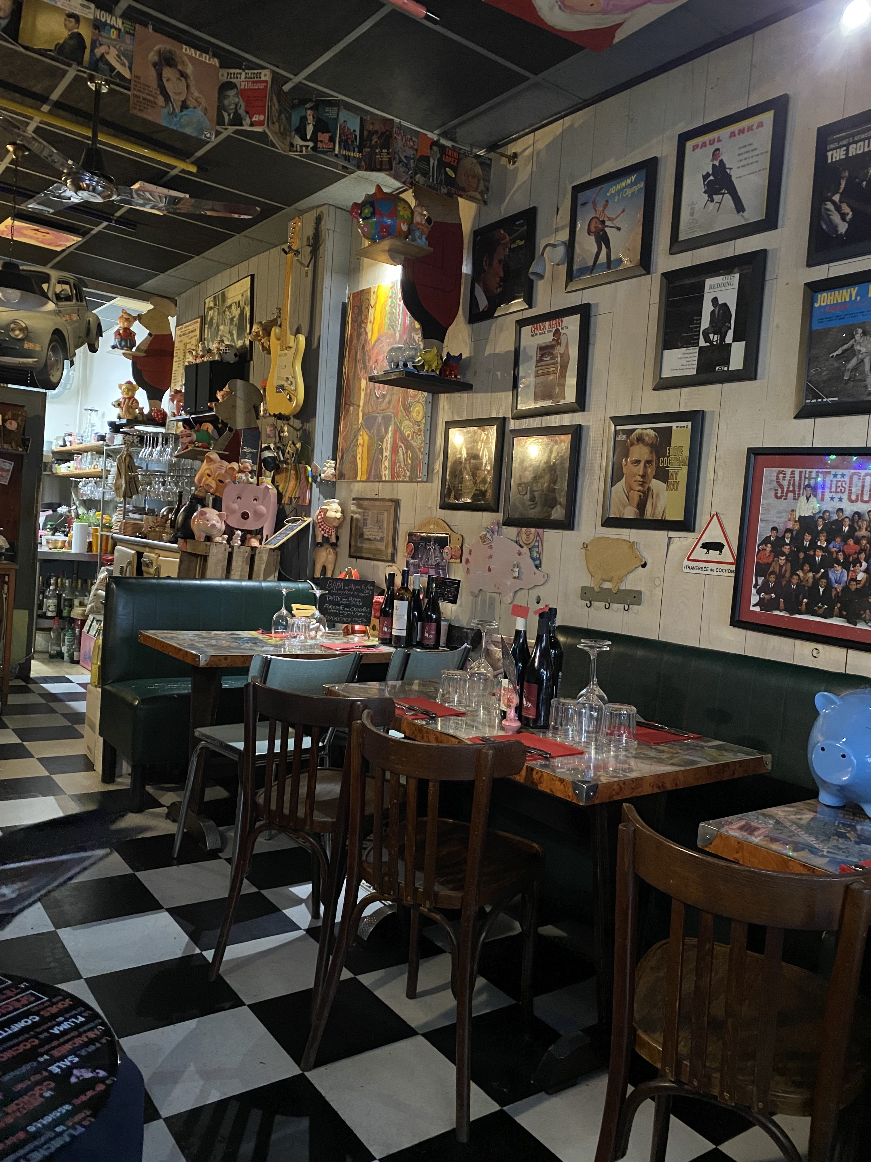 Si vous voulez échanger avec le chef sur les années yéyé c'est une bible. Et vous y manger correctement dans un univers sympa