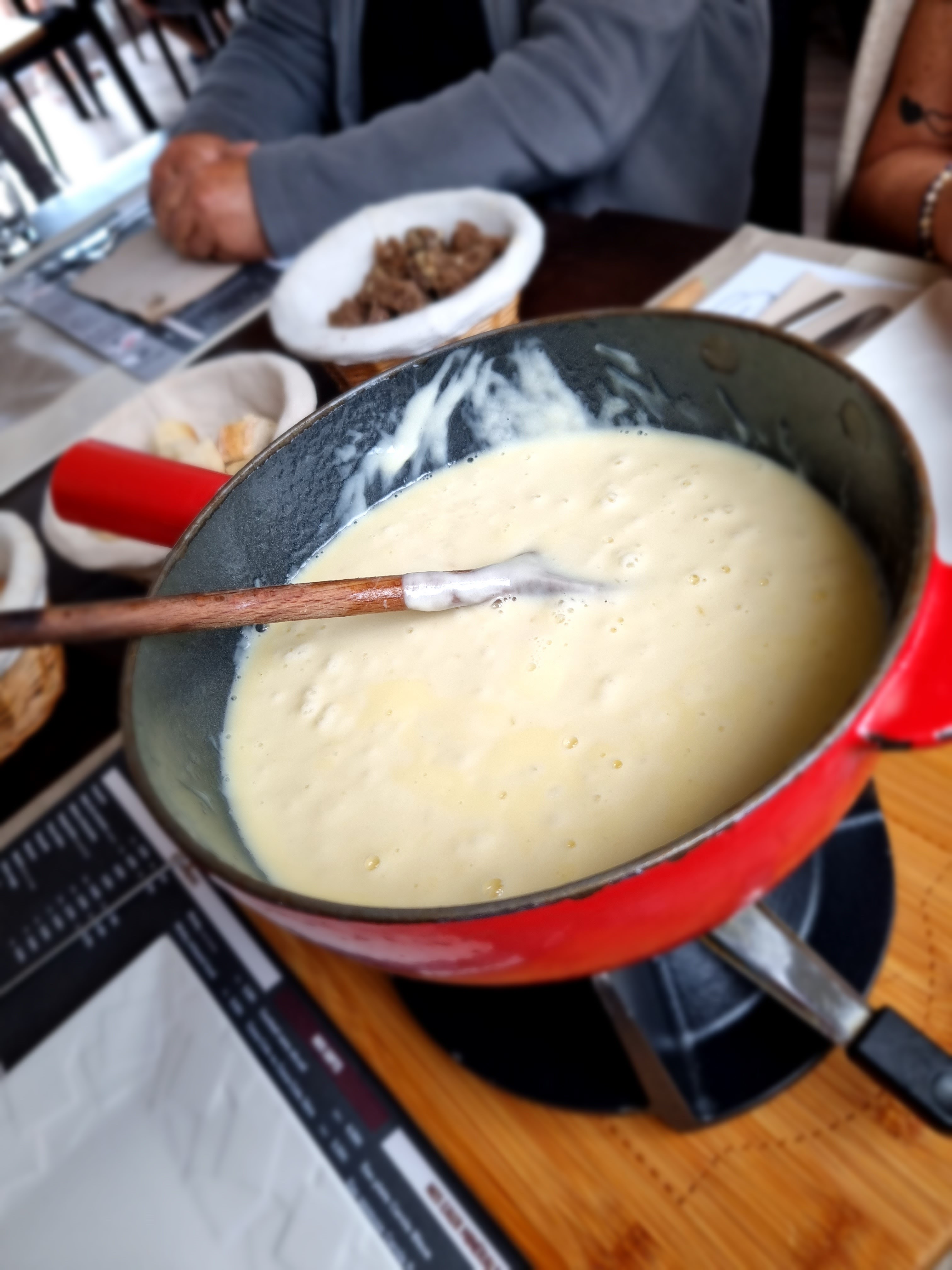 Délicieux ! Et comme ils préviennent dès le début, c’est de la nourriture de qualité mais ne venez pas si vous êtes pressés, car il faut être un peu patient lors des périodes de rush ;-) Délicieuse fondue savoyarde ! Et chouette ambiance familiale avec les enfants !