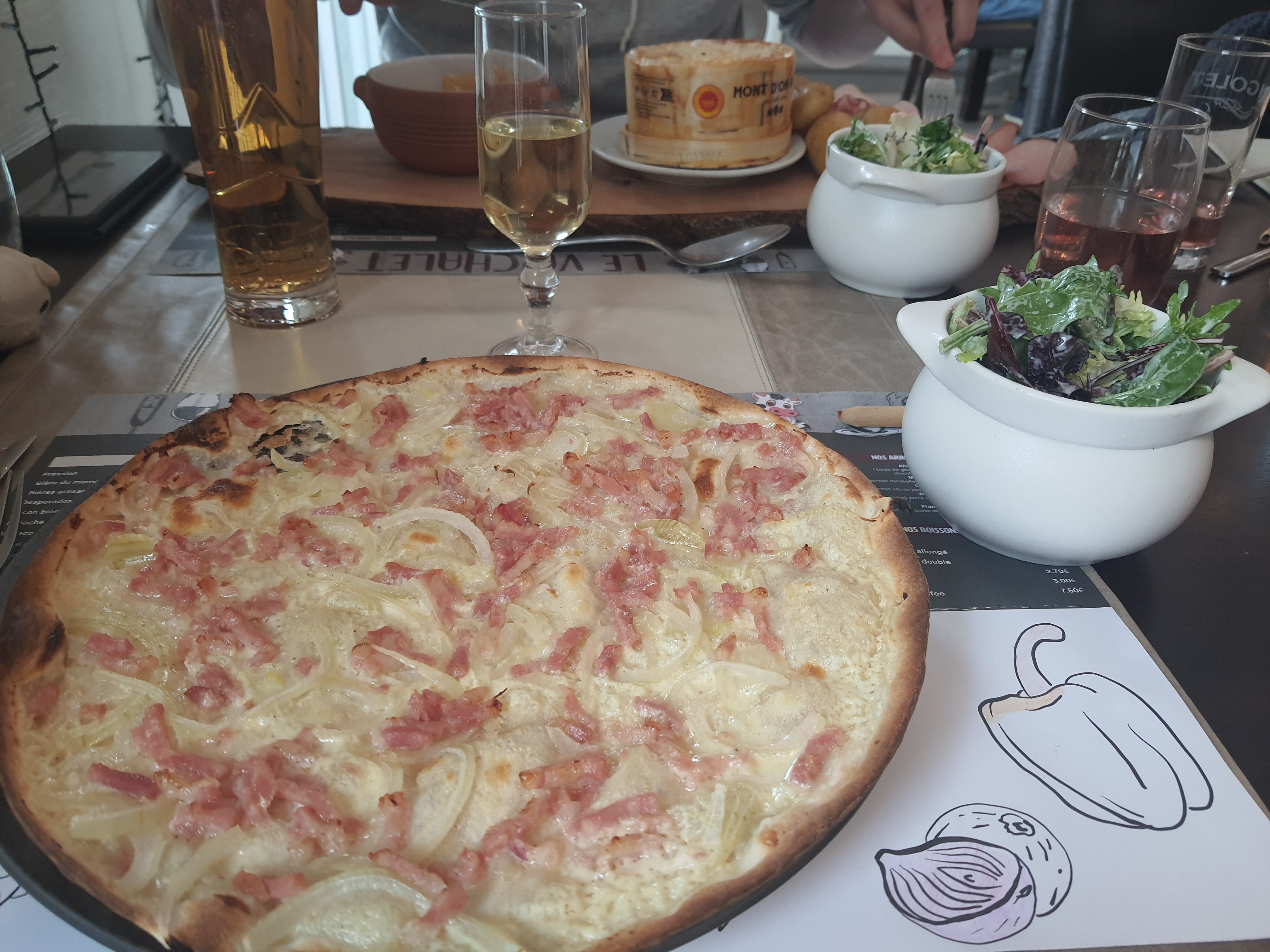 Super sympa et très bonne cuisine montagnarde Coup de cœur sur la tarte flambée courgettes champignons 😊