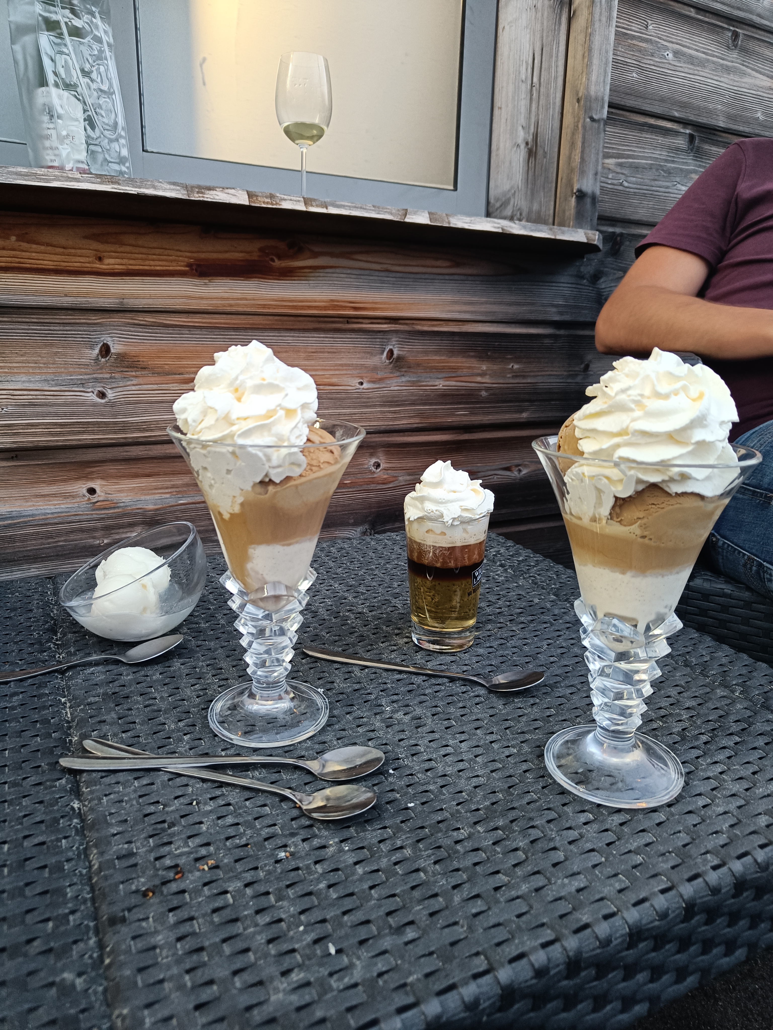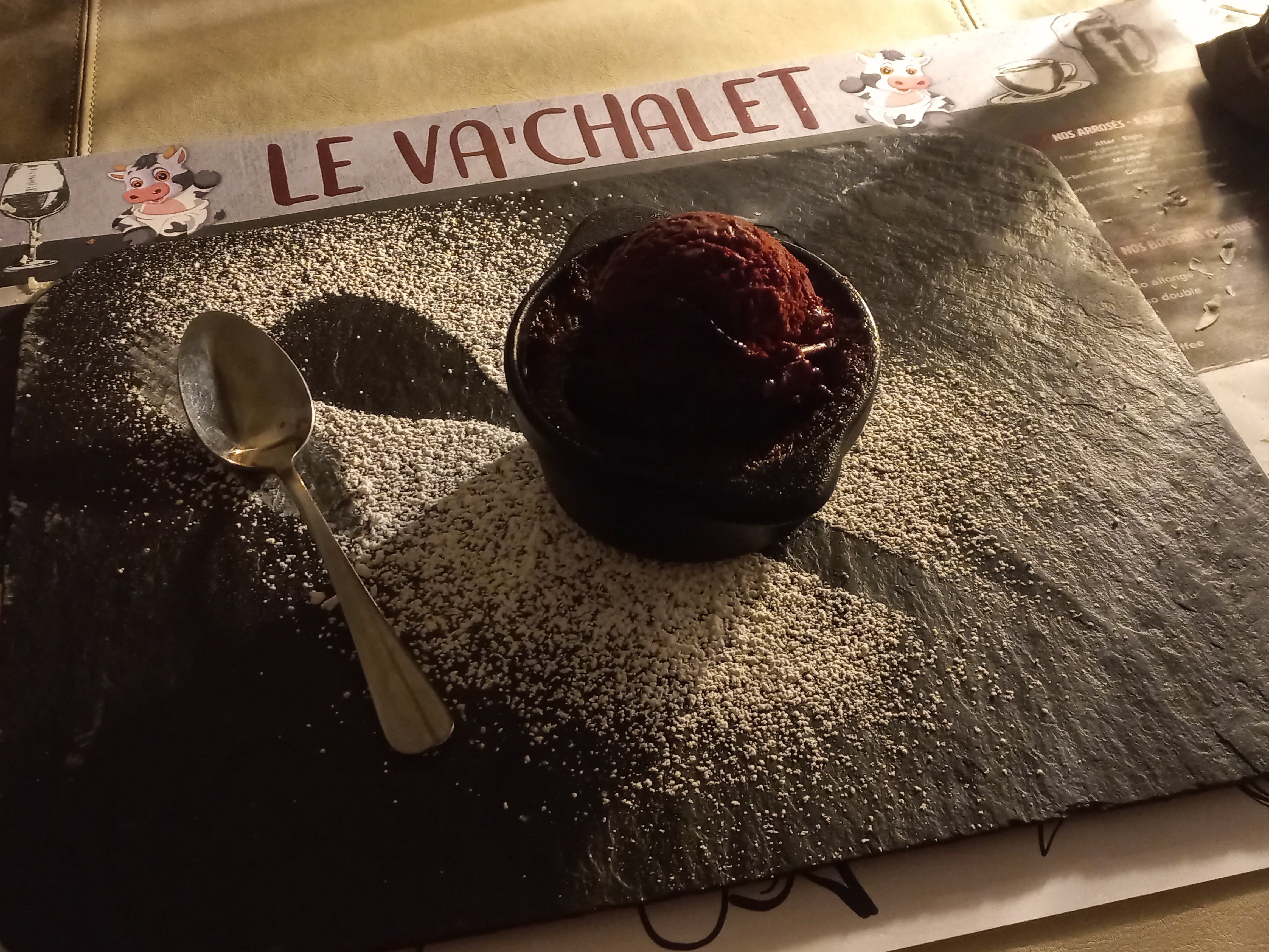 Agréablement surpris pr ce restaurant sympa, ambiance familiale, carte réduite mais la qualité est au rendez vous, à deux nous avions pris une pierrade de bœuf assortie de salade et de patates sautées, le dessert, magistrale coupe glacée le Va Chalet venant terminer un excellent repas..
