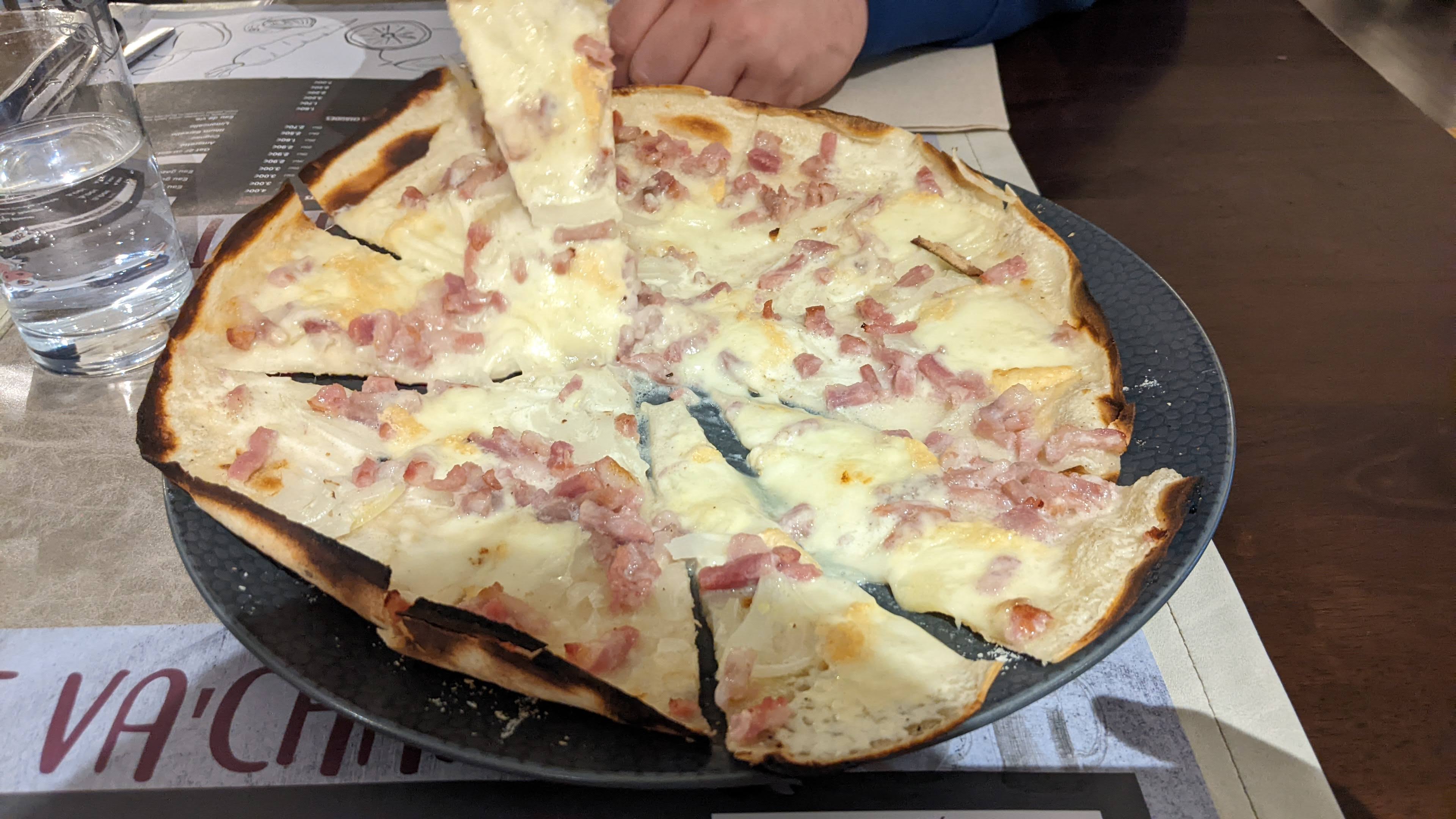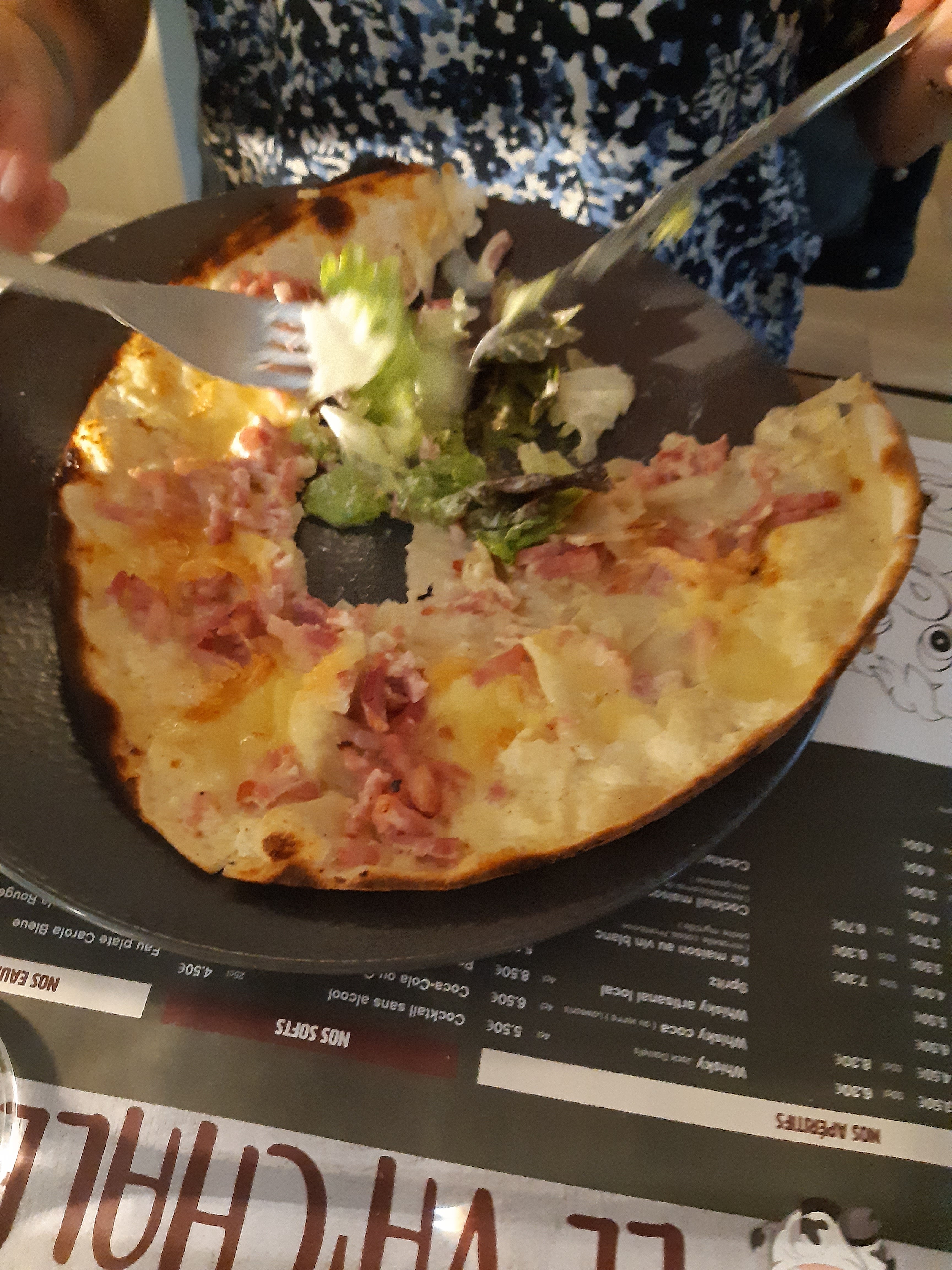 Jour férié, nous téléphonons pour déplacer notre réservation de 30mn. Le patron nous invite à venir avant 19:30, car pas de clients Cadre quelquonque, très peu éclairé, il fait un peu frais. En dehors des fondues et raclettes, 2 propositions de viande. Nous choisissons pour faire simple et rapide 2 flammekueches. Sans intérêt au global.