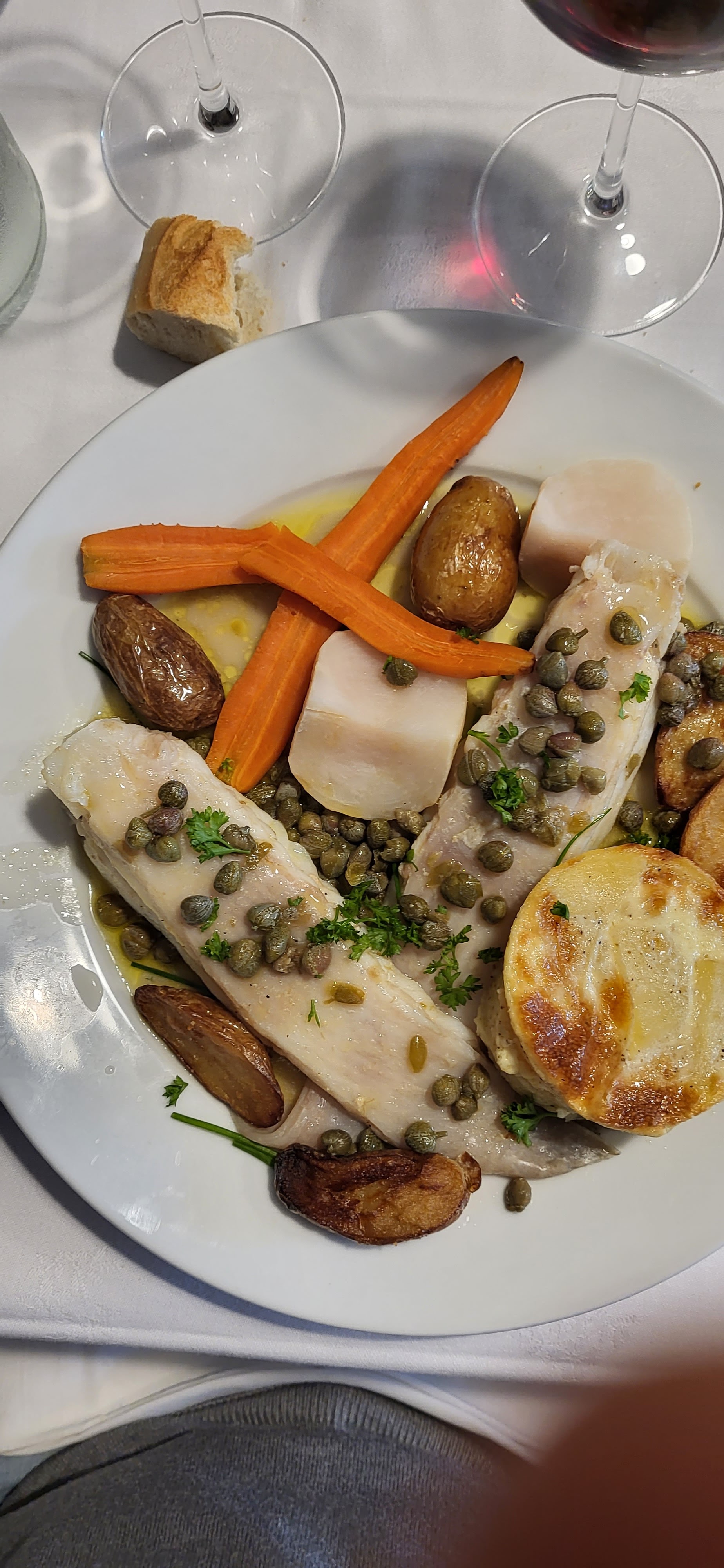 service long juste pour un plat. pain servi en fin de repas. hygiène à revoir dans les toilettes