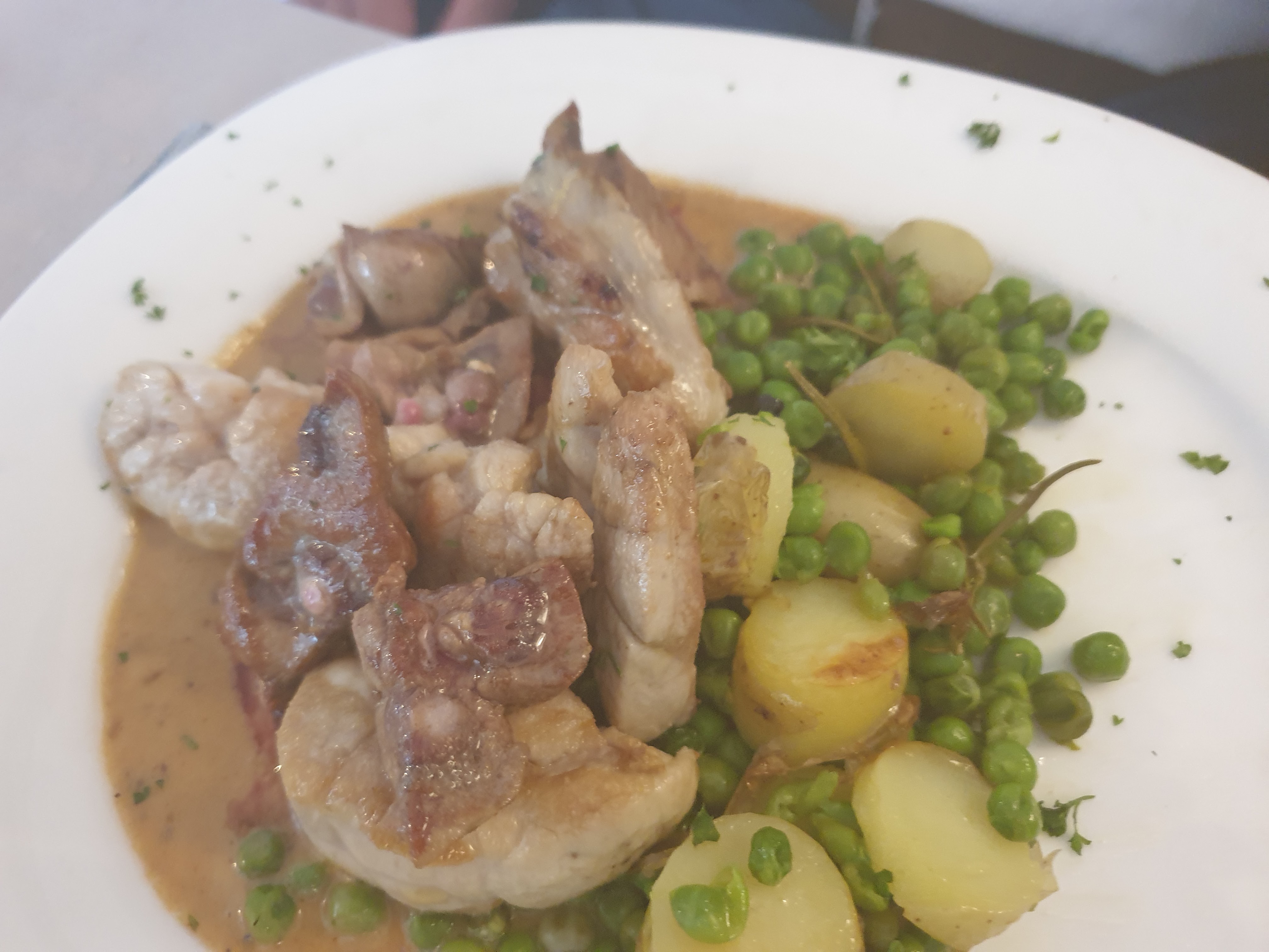 Sympathique inégalité dans les assiettes poisson filets de boeuf très bien coq au vin Un peu léger