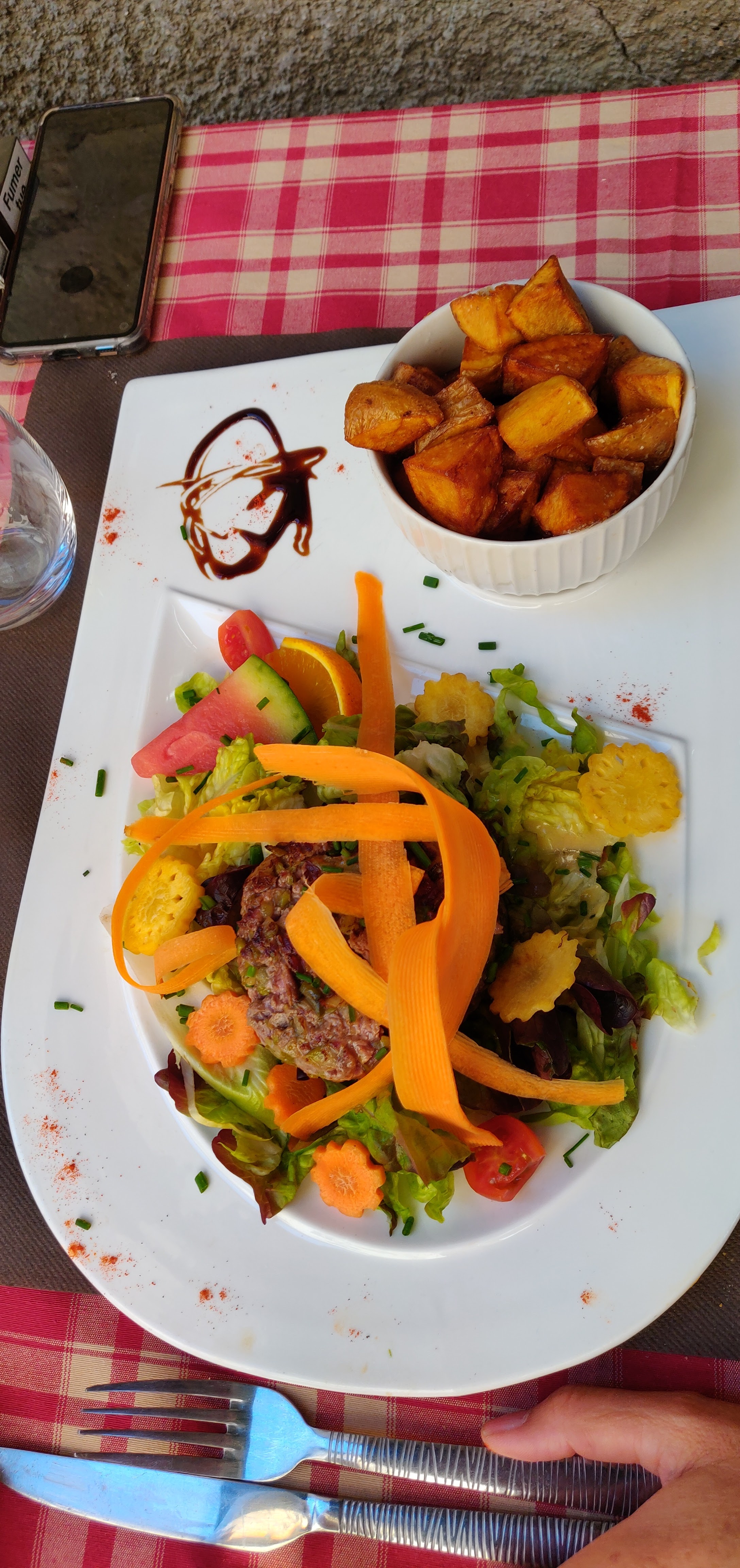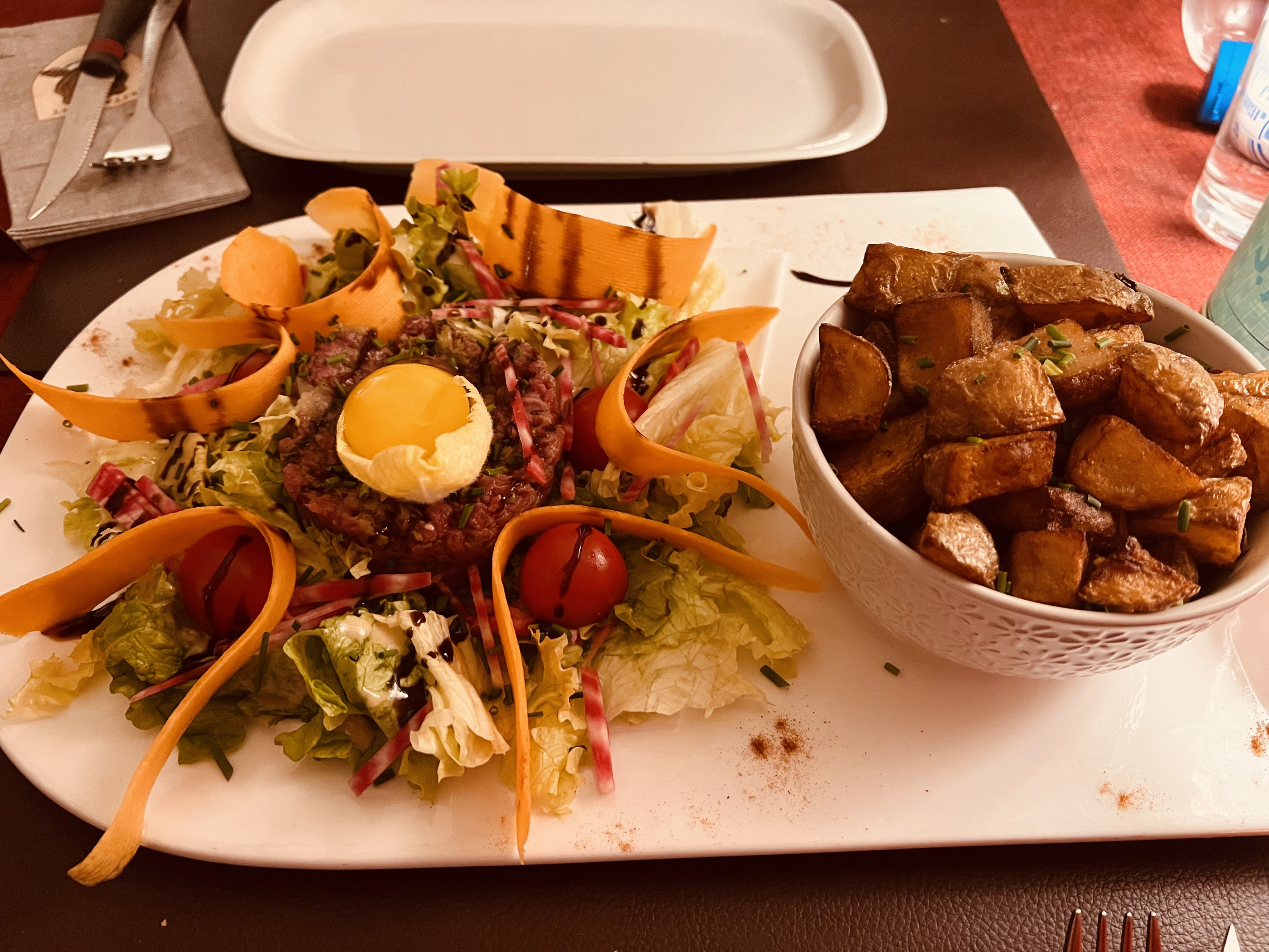 Franchement, remarquable. Un restaurant pas prise de tête mais la qualité des produits est extra. On a pris une Pierrade (trio de viande cuite sur pierre) et tout était parfait : la viande super tendre et de qualité, les sauces, les pommes de terres frites, la ratatouille (omg) !! Jusqu’aux tomates de la salade et à la tranche de melon. Rien à dire, foncez si vous êtes dans le coin. Bravo à vous !!
