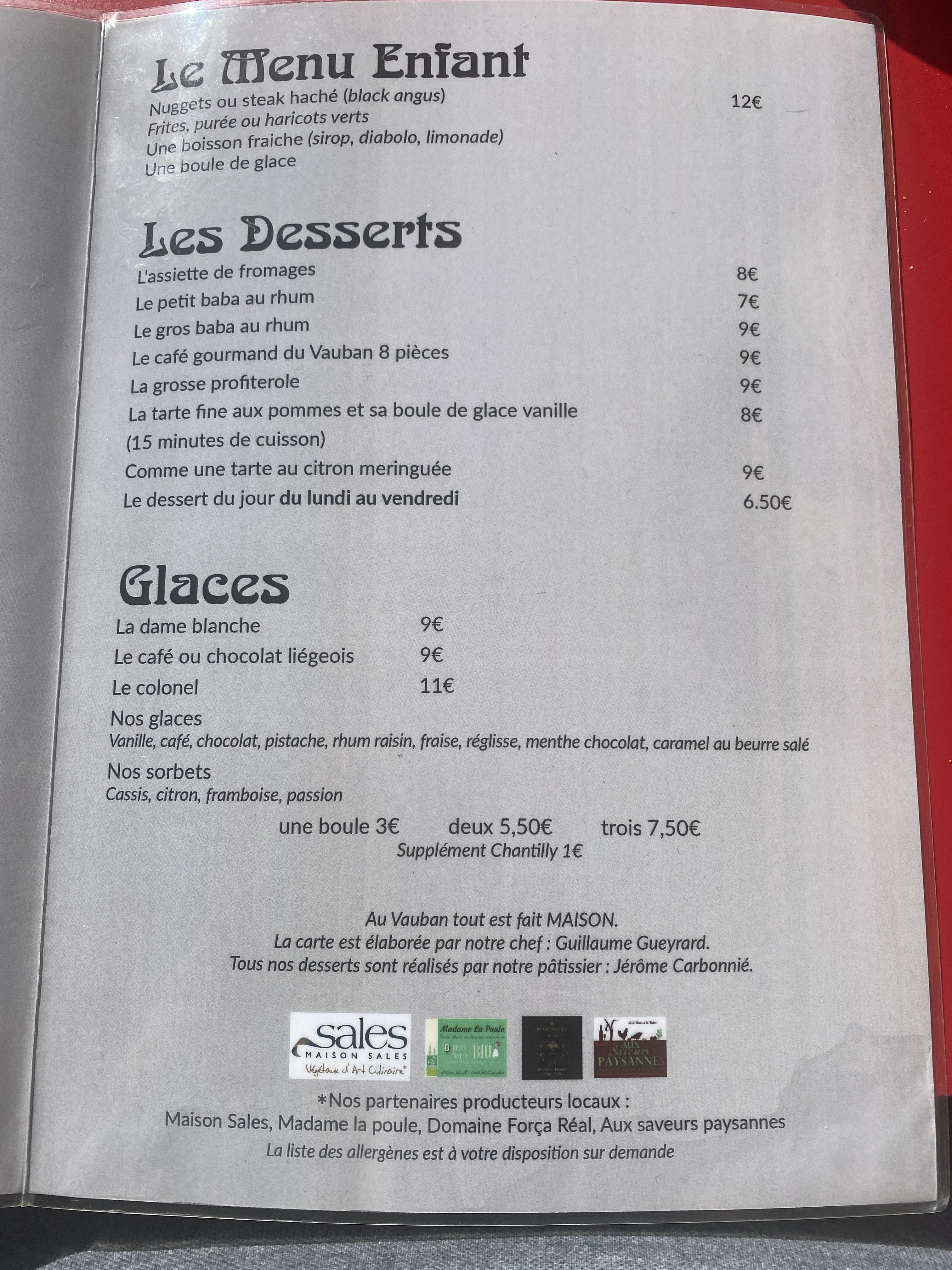 Lors de nôtre séjour près de Perpignan nous avons déjeuné au restaurant LE VAUBAN Cuisine très bonne et service impeccable et rapide Personnel très agréable