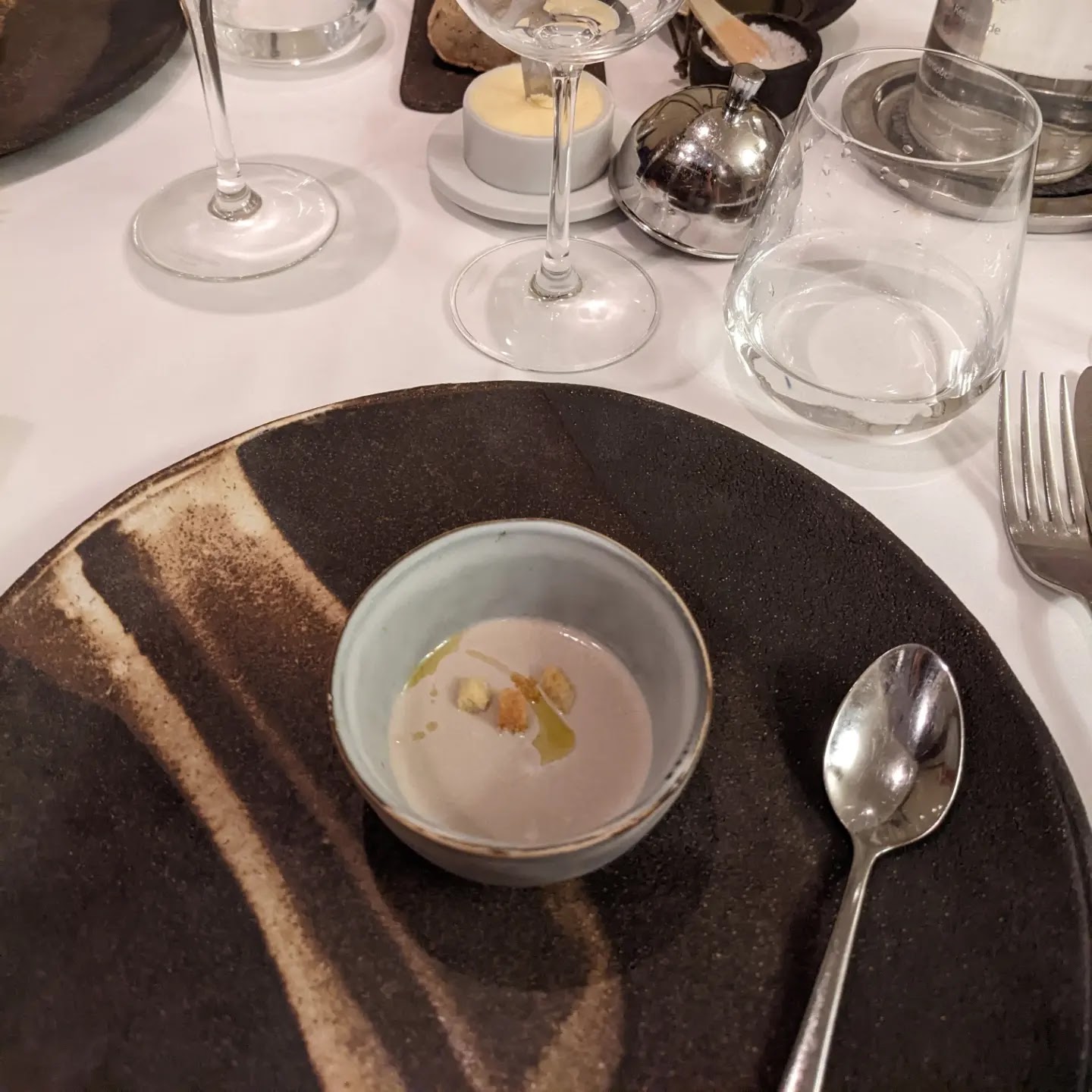 Très belle soirée avec un menu dégustation parfait, de très belles saveurs, des plats très fins, un service vraiment soigné et une ambiance parfaite (mention spéciale pour la qualité des produits et notamment l'huile d'olive et le beurre citronné...). Merci pour ce moment ...