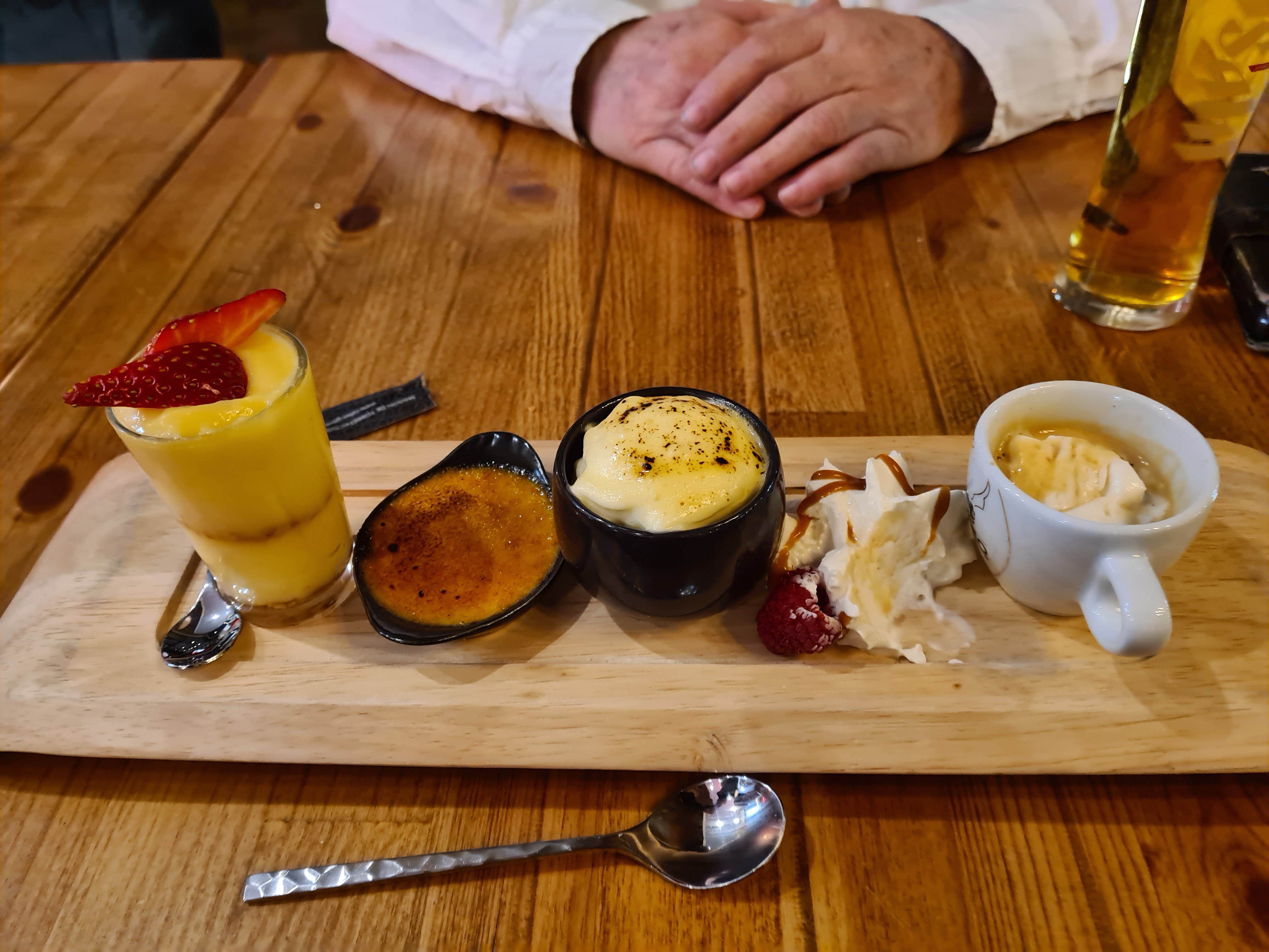 Repas entre copains mardi midi, nous avons attendu assez longtemps nos plats. entrées bonnes, cassoulet bon, cuisses de grenouilles très fades sans saveur dommage. Desserts café gourmand bien.