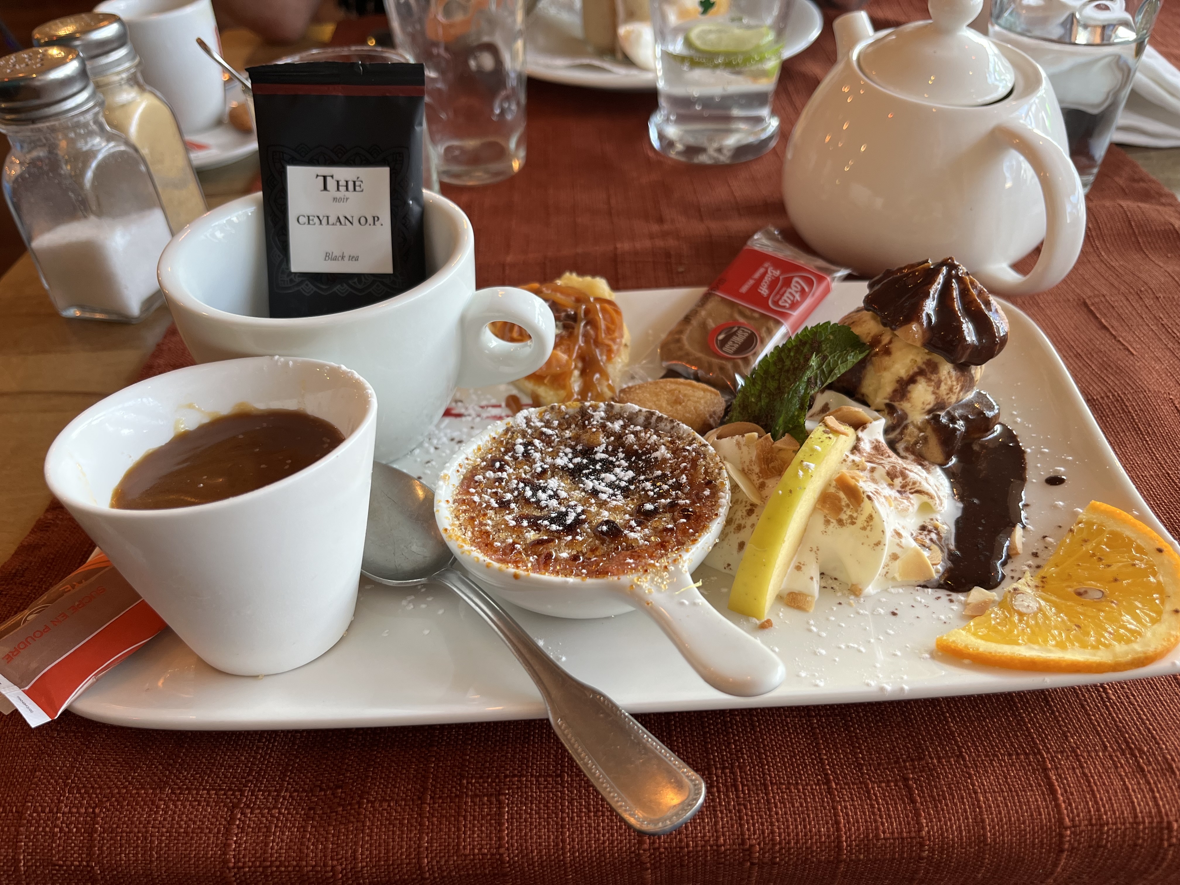 Chouette déco, service agréable, mais plats très chiches et desserts moins que passables (deux choux un peu vieux pour les profiteroles avec une chantilly manifestement en bombe, trois morceaux de fromage aux bordures sèches pour l'assiette de fromage, donc sans doute préparés largement à l'avance du service). L'entrée était très bien, le plat vraiment léger.