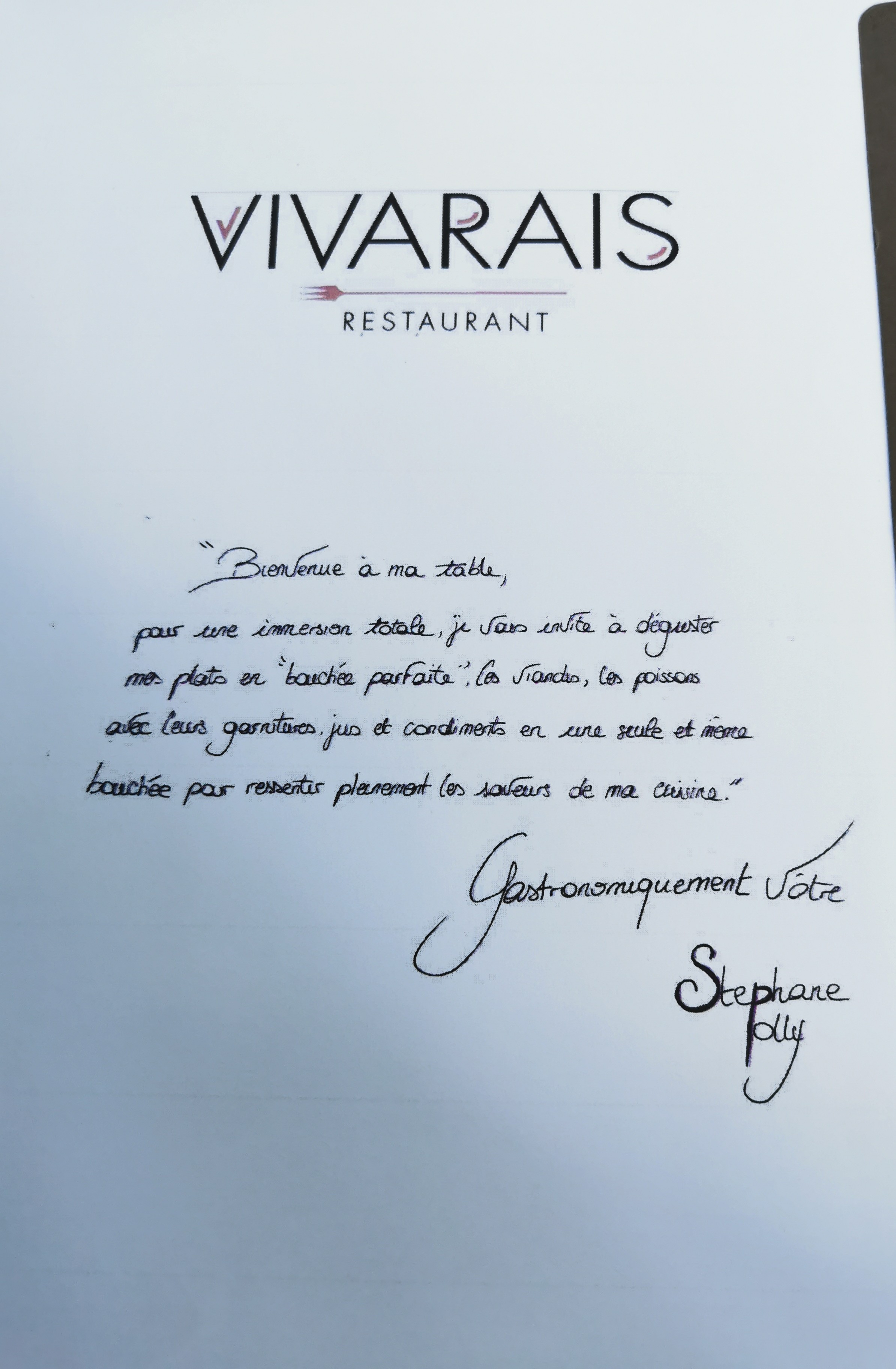Experience culinaire étonnante.. Un service efficace, attentionné, très professionnel Des plats originaux avec des produits locaux une carte des vins très riche, Un pâtissier qui sublime la noix de coco, les agrumes et les produits laitiers, un chef qui sort de sa cuisine pour vous saluer et s'inquiéter de votre satisfaction gustative.Le vivarais : un grand moment de gastronomie