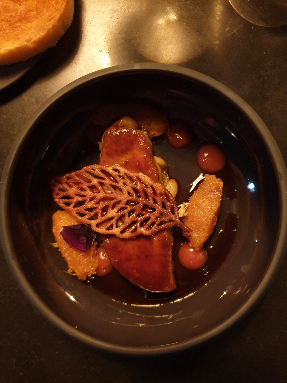 Bonjour. Repas ( de St-Valentin ) agréable mais pas équilibré, je m'explique : le demi Pithiviers en amuse bouche, était bcp trop imposant, excellent mais trop imposant et de ce fait, le reste des plats a eu du mal a passer et également, au lieu d'aller crescendo, on est parti du plus imposant au moins imposant -> faute de goût, sauf si c'est un partit pris. Côté service, encore du travail car la saucière déposée, coulante, sur la table, pas classe du tout. Le changement de couverts aussi, ça croise, ça décroise, ça tape du pieds dans la chaise du client -> pas pro ... sans doute en formation cette jeune femme mais encore du travail. Pour finir, les mignardises -> trop sucrées, cela plombe la légèreté du dessert agrumes/choc, qui était excellent. Globalement, c'est positif mais pour un menu à 69 €, on frôle donc les premiers prix d'un primo étoilé, donc cela devrait être à la hauteur et ce n'est pas le cas. Il y a du potentiel donc à travailler et ce sera meilleur l'an prochain. merci.
