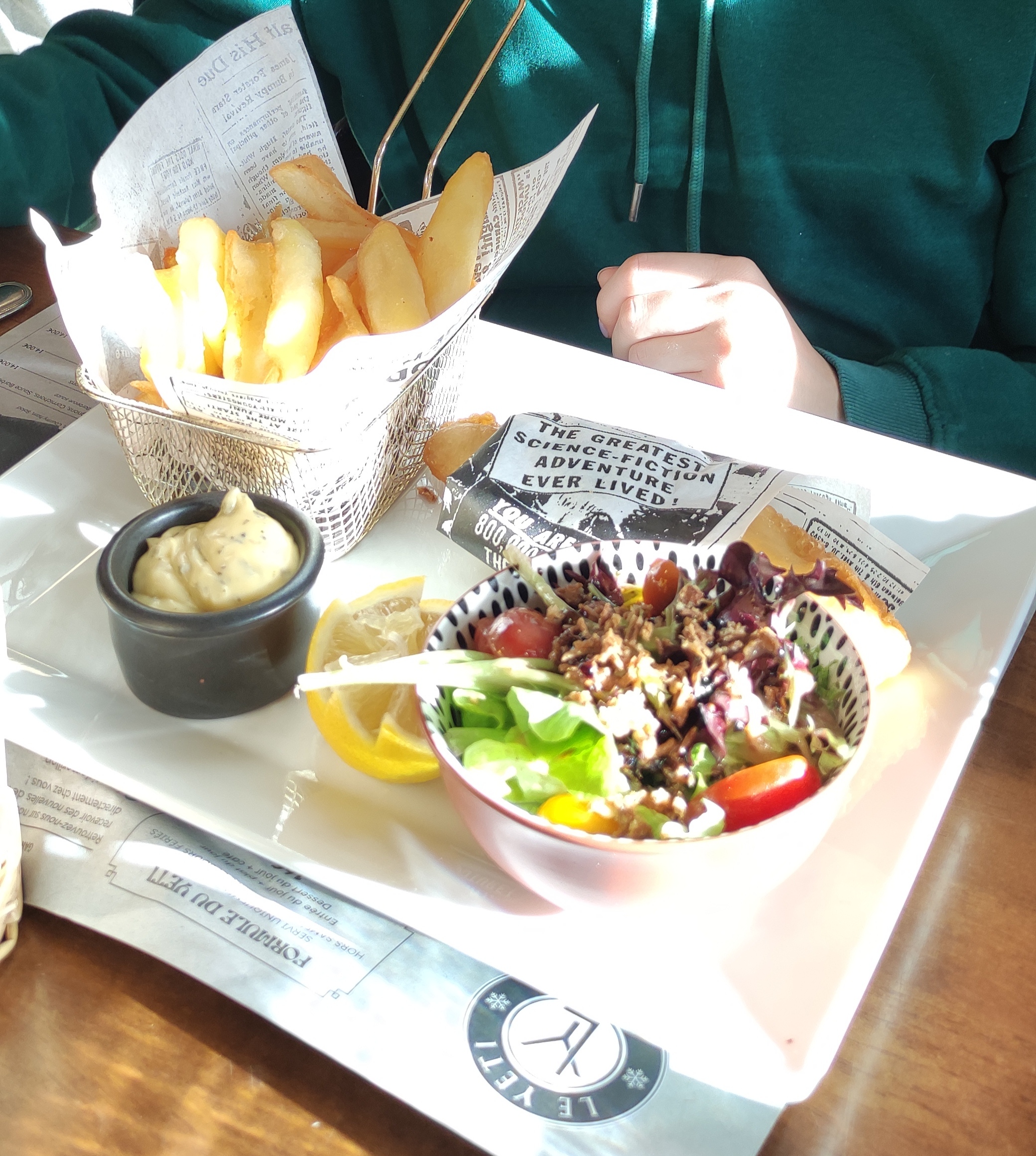 Je viens de prendre le pire repas de ma vie au Yeti. Nous avons tous deux commandé du fish and chips. Au lieu d'un morceau de poisson frais frit pané, on nous a présenté un petit morceau préfabriqué et congelé de poisson indéterminé qui aurait pu provenir de McDonalds. Sauf que McDonalds l’aurait effectivement cuisiné. Ce qu'on nous a donné était encore congelé, cru à l'intérieur. Je l'ai signalé à la serveuse qui l'a emporté. Je m'attendais à ce qu'elle revienne avec du poisson fraîchement cuit, mais non, elle est revenue quelques minutes plus tard avec les mêmes morceaux de poisson qui avaient été coupés en deux et évidemment à nouveau frits. Bien sûr, ils étaient désormais durs à l’extérieur et immangeables. Je me suis plaint à nouveau et on nous a finalement donné un plat frais composé de filets de poisson frits bien cuits, ce qui était correct, même s'il était très petit, moins de la moitié de la taille à laquelle je m'attendais. Aucune déduction de la facture n'a été proposée, juste de brèves excuses. Nous vivons à Morillon, mais l'impression donnée était que, comme nous parlions anglais, ils pensaient que nous étions des touristes et qu'on ne les reverrait plus jamais. Eh bien, ils ont bien compris.