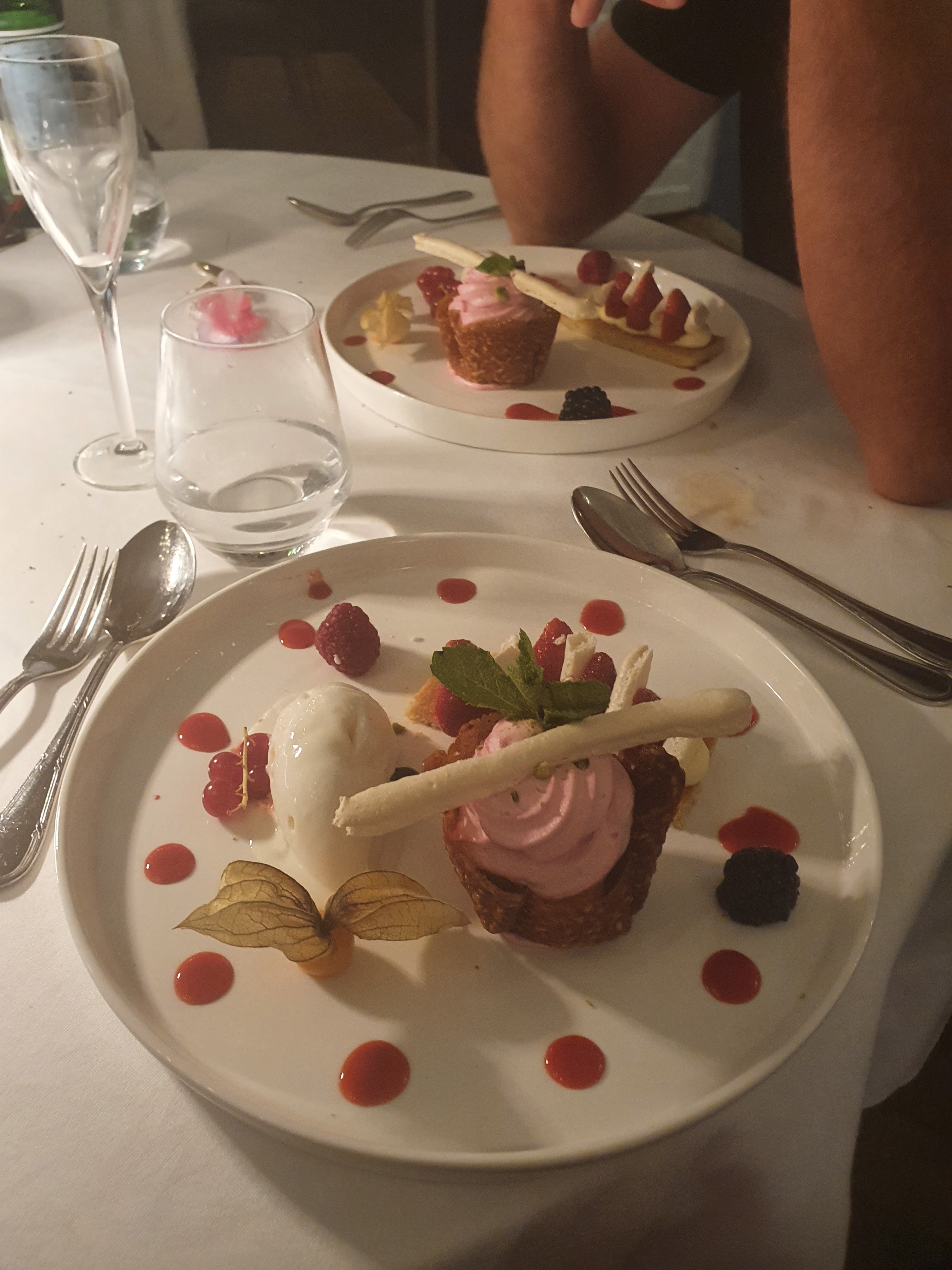 Le chef a changé il y a 2 mois. Nous sommes déjà venus en Juillet 2021. C'est avec déception que nous avons découvert le résultat de la nouvelle cheffe remplaçante du Chef Gilles BLONAY qui était super et nous avait rendu visite après notre repas en 2021, désormais parti à la retraite. Le cadre est toujours excellent ainsi que l'ambiance. Cependant La dorade aussi était trop cuite et les desserts trop standard/classique pour ce tarif là, nous nous attendions à bien mieux. Pour l'entrée à la Truffe, celle-ci était excellente en revanche !