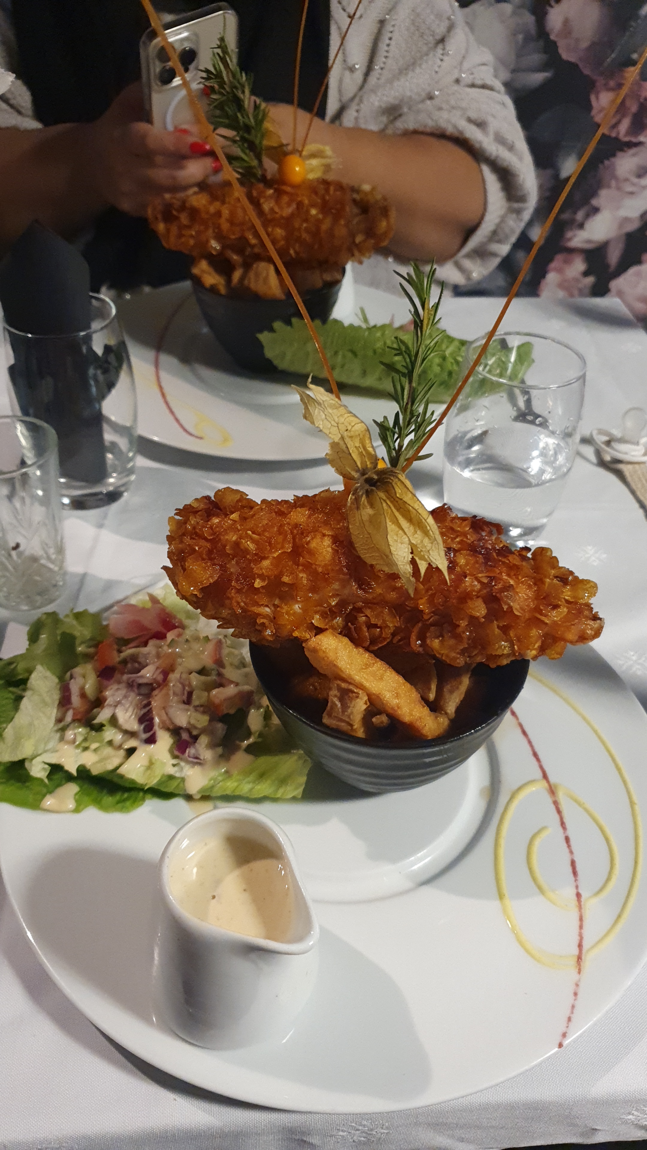 restaurant sympa, les plats sont copieux et le service sympathique j’ai beaucoup aimé l’entrée une salade de toast au chèvre et le dessert égale même c’est un sans faute, pour le plat j’ai choisis le cordon bleu seul petit bémol il n’y avait pas de fromage fondant à l’intérieur..sinon le dessert était bon et bien présenté et l’’ambiance sympa merci pour l’accueil ☺️