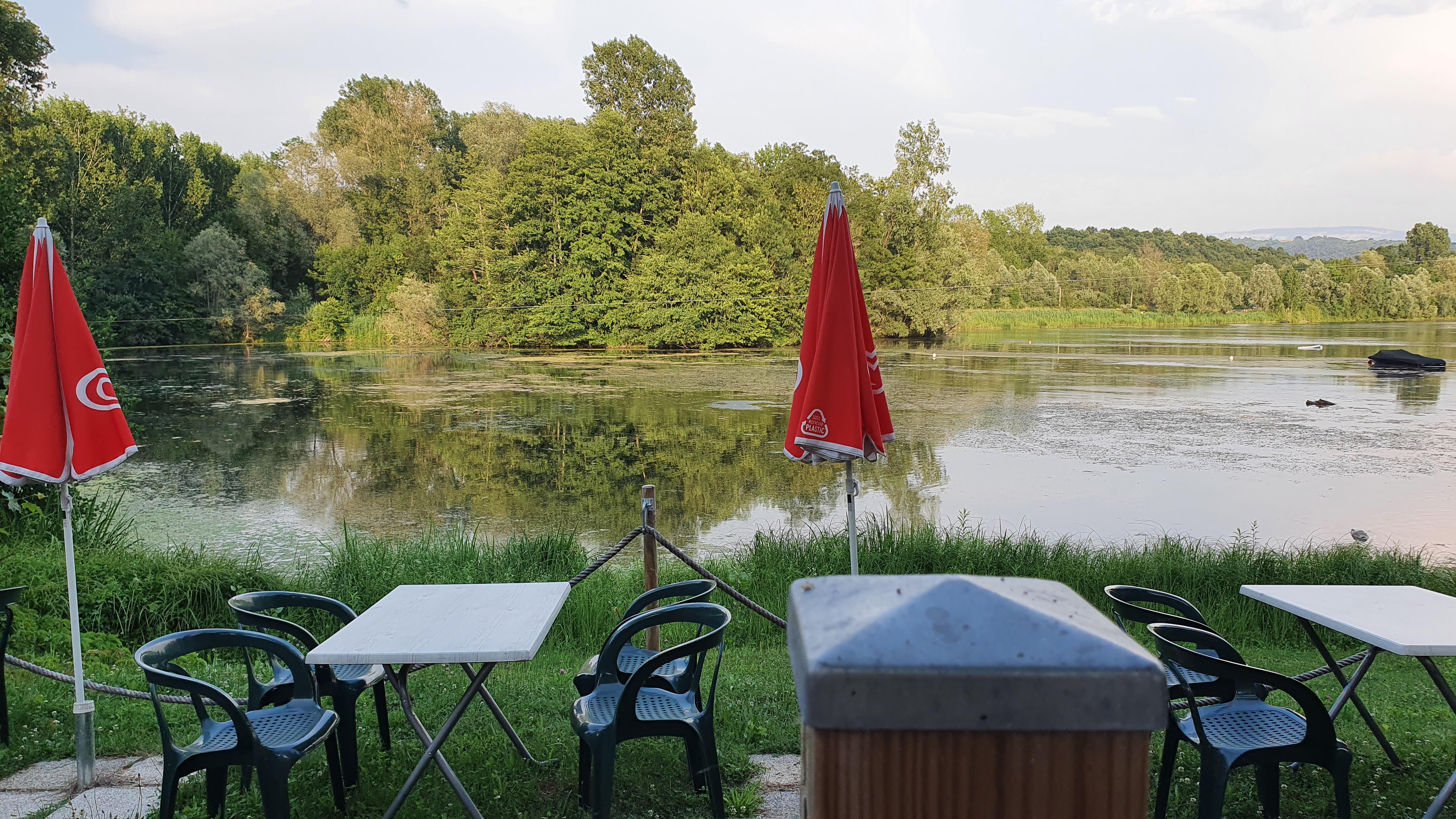 Belle terrasse ombragée au bord du Haut Rhône, carte savoureuse, produits frais. Parfait pour une pause champêtre au bord de la route. Plats principaux à partir de 20 EUR, et menus. Cuisses de grenouilles délicieuses, bien charnues.