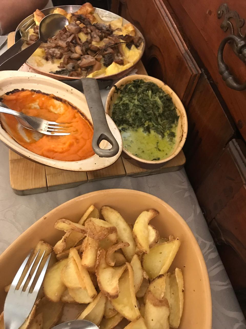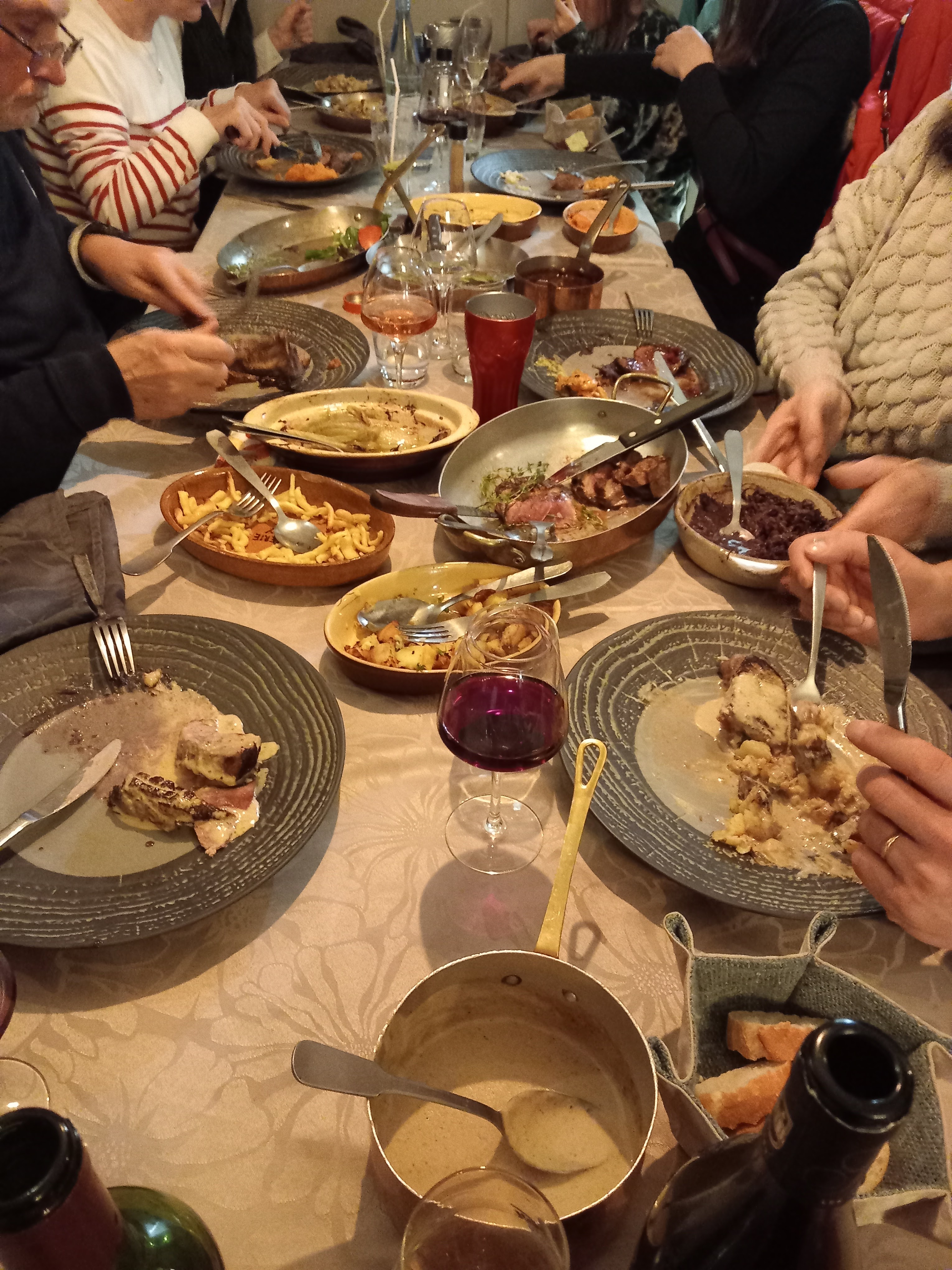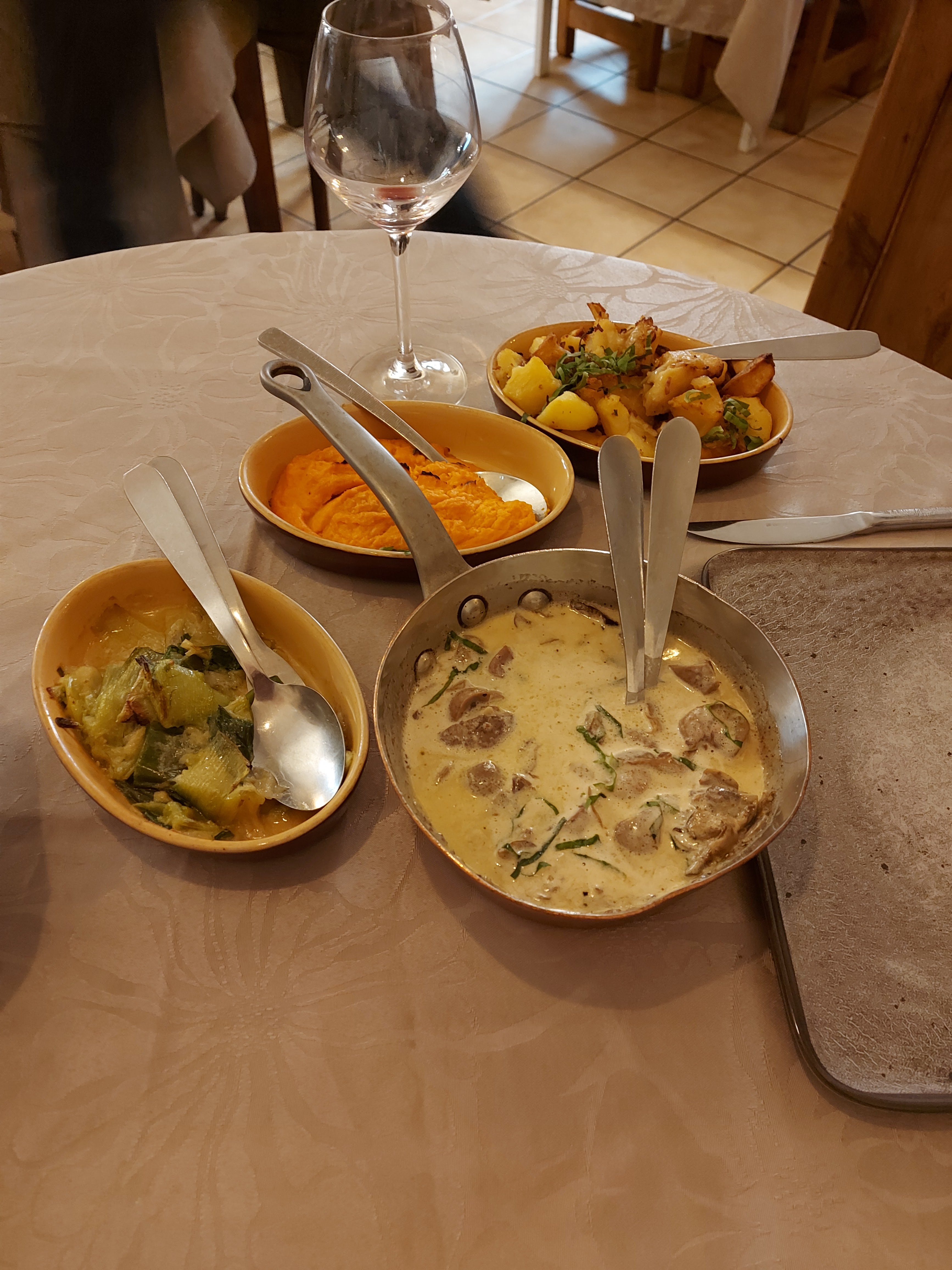 Copieux et bon!! Pas de chichi ici. Si vous voulez un lieu conviviale, c'est pour vous. Tout les plats et desserts sont maison. C'est servi à côté de l'assiette. On peut donc partager. Les dessert sont bon, mais pour ça, faut avoir encore de la place... 😁 mais personnellement je les trouve léger. Je viens de manger une tarte tatin avec des pommes du jardin!! Délicieux. Bref, je recommande.