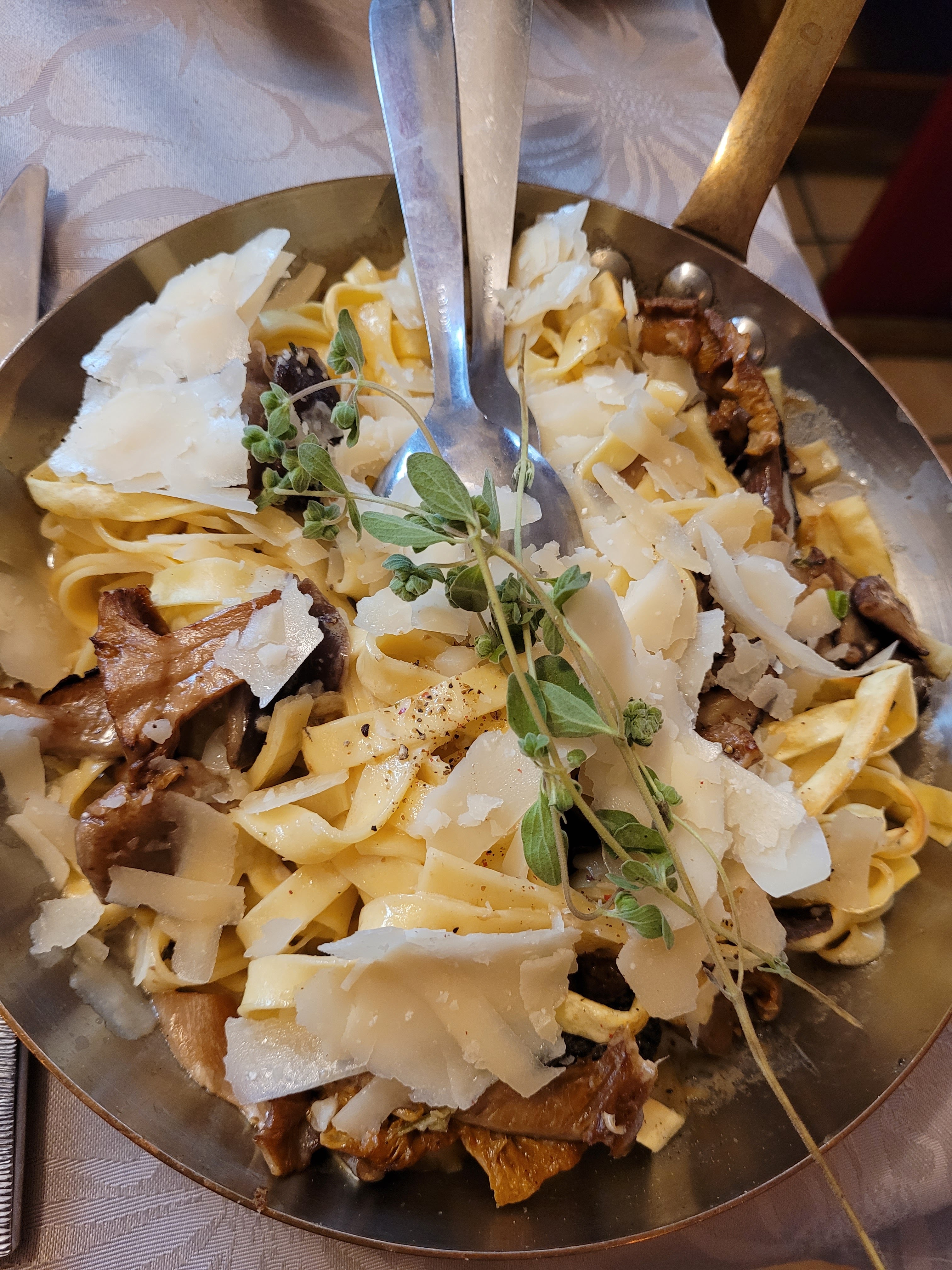 Excellente nourriture savoureuse et service amical. Nous avons essayé les girolles avec des pâtes et des côtelettes maison. Tous les plats sont servis avec une variété de plats d'accompagnement. J'ai aussi beaucoup aimé le vin recommandé. Uniquement des critiques des meilleurs endroits !