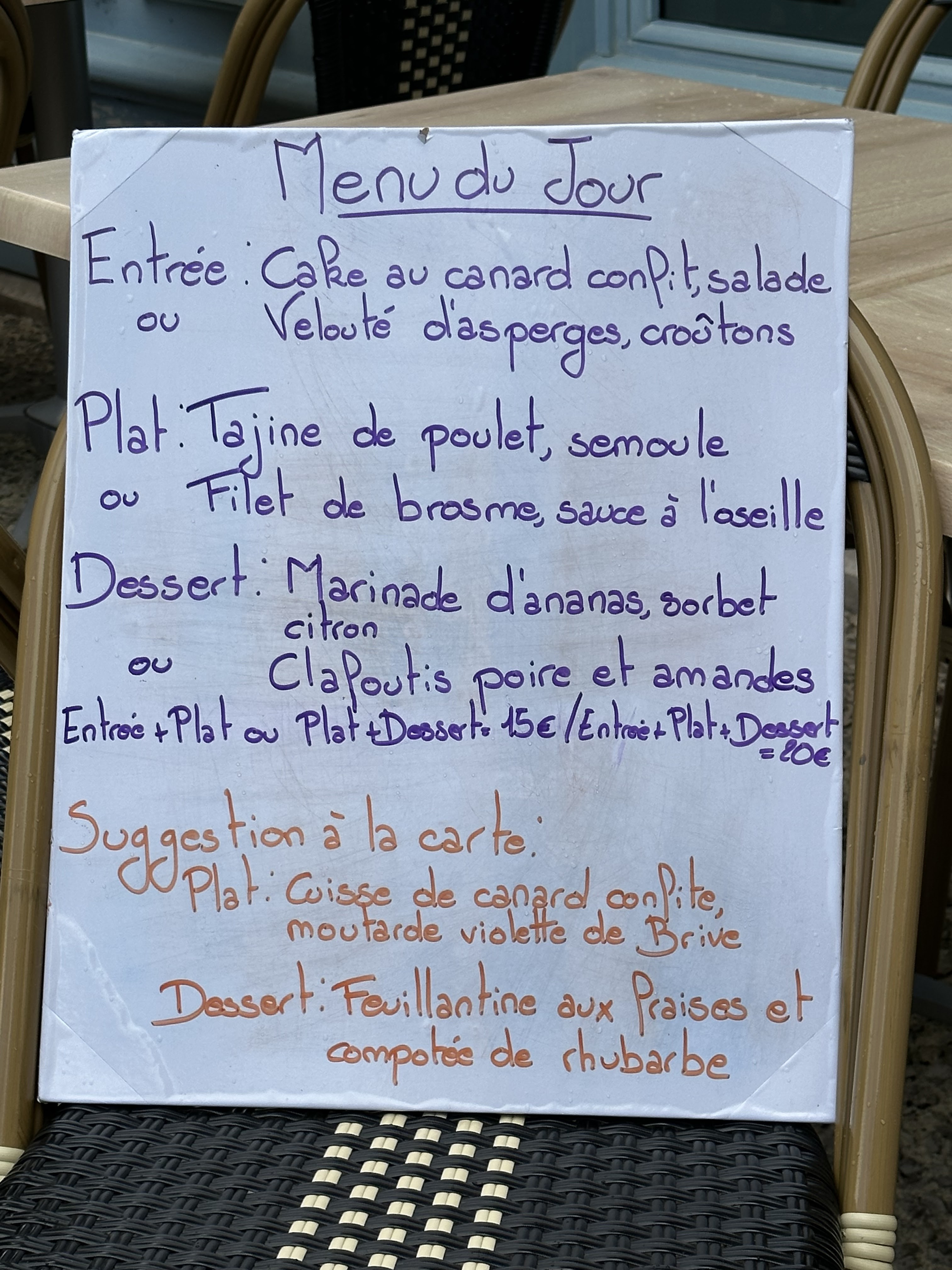 C’était bien mais sans plus. Je n’ai pas été emballée ni par le Parmentier de canard ni par le far aux pruneaux, ni par mon verre de vin blanc. Le service était OK. Le point positif c’est l’endroit - la petite place au centre de Terrasson est charmante!
