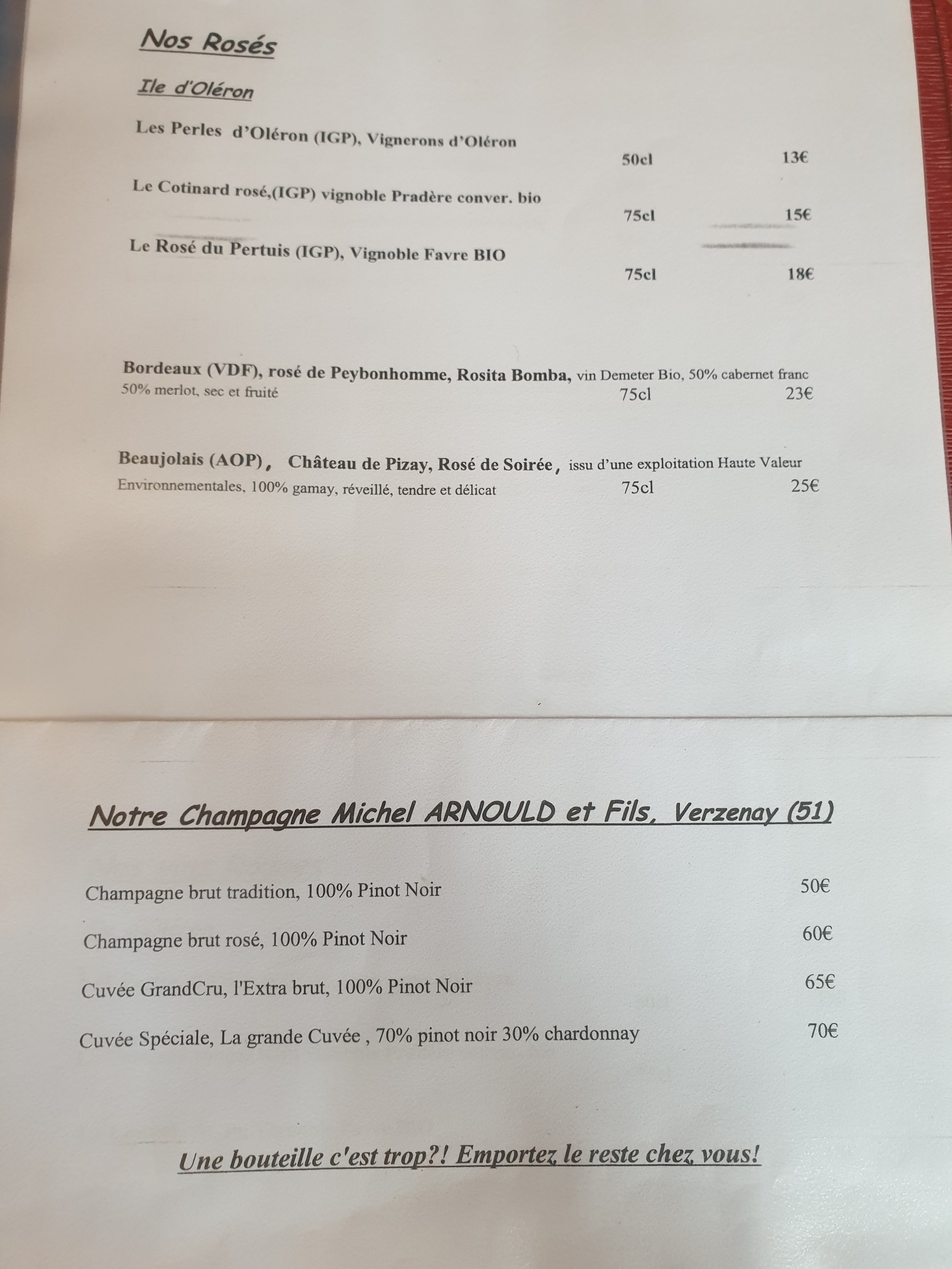 Exceptionnel, les produits sont frais les plats sont originaux . Serveuse très agréable, le rythme du service parfait. A ne pas manquer lors d’un séjour à Oléron. Bravo