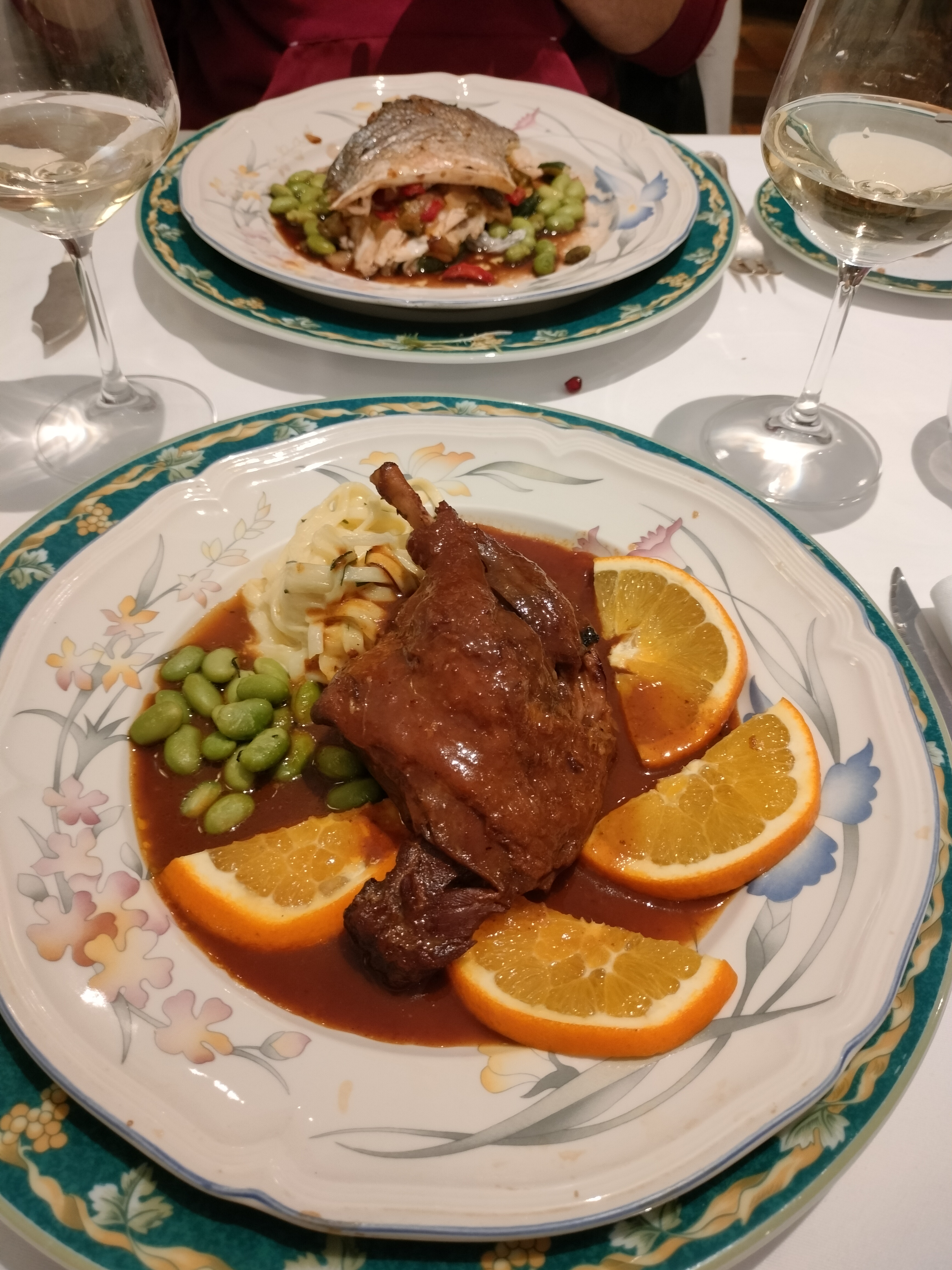 Merveilleux repas dans un cadre détendu avec un accueil chaleureux de notre hôte. Nourriture de première classe dans un petit menu complet comprenant de la viande, du poisson et de la volaille. Vin et eau uniquement pour les boissons. Une influence catalane a orienté nos choix. Un repas de première classe dont on se souviendra longtemps. Un indispensable.