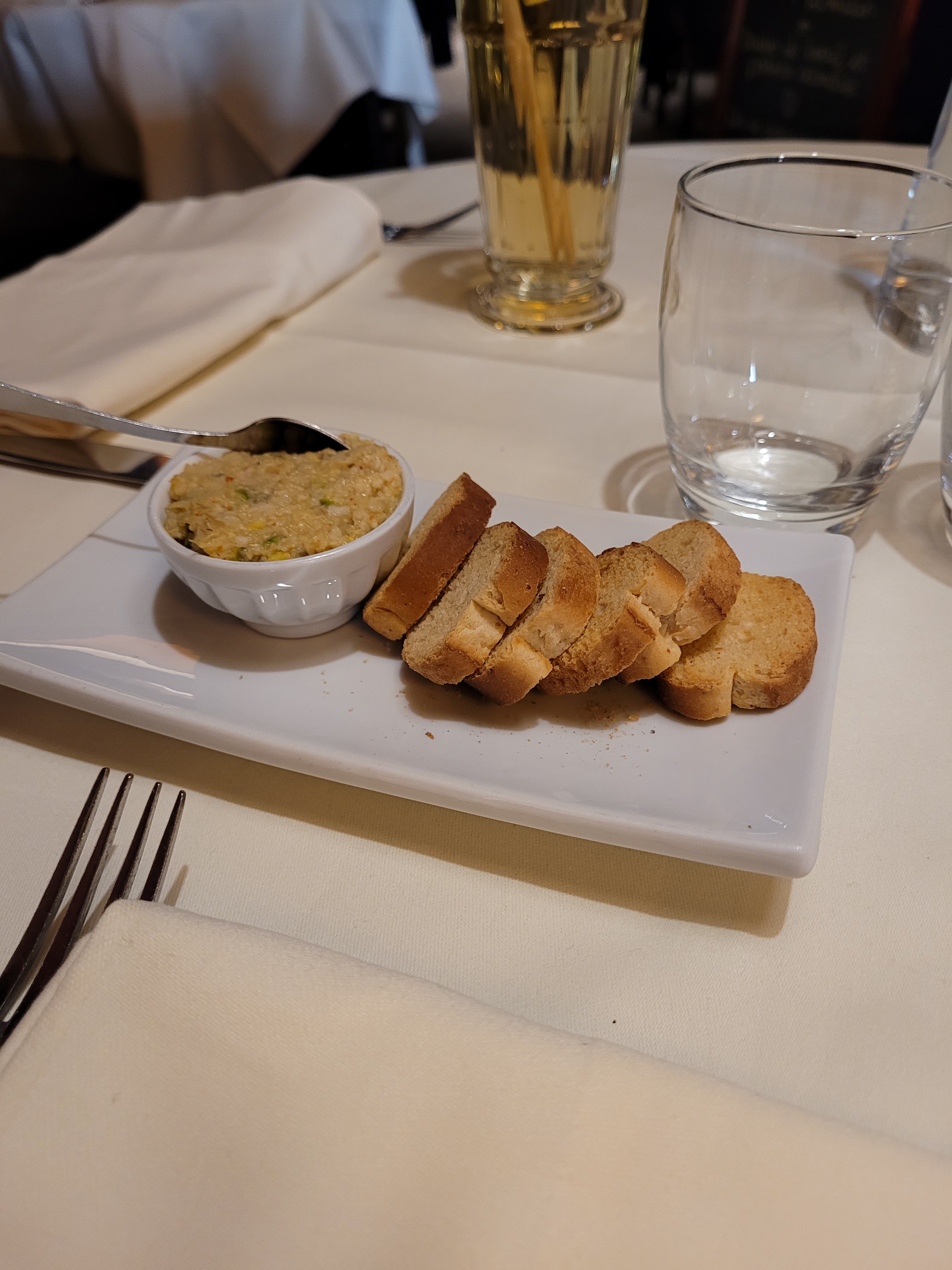 Très belle expérience. Nous avons chacun pris des plats de poissons différents et tout étaient vraiment très bon. Cela a pris un peu de temps pour prendre nos commandes au début mais nous avons apprécié le service (et un + pour le serveur qui nous demande qui de la table va goûter le vin, au lieu de se diriger tout de suite sur l’homme de la table, on a apprécié 😉) . Nous avons passé une belle soirée sans voir le temps passé!