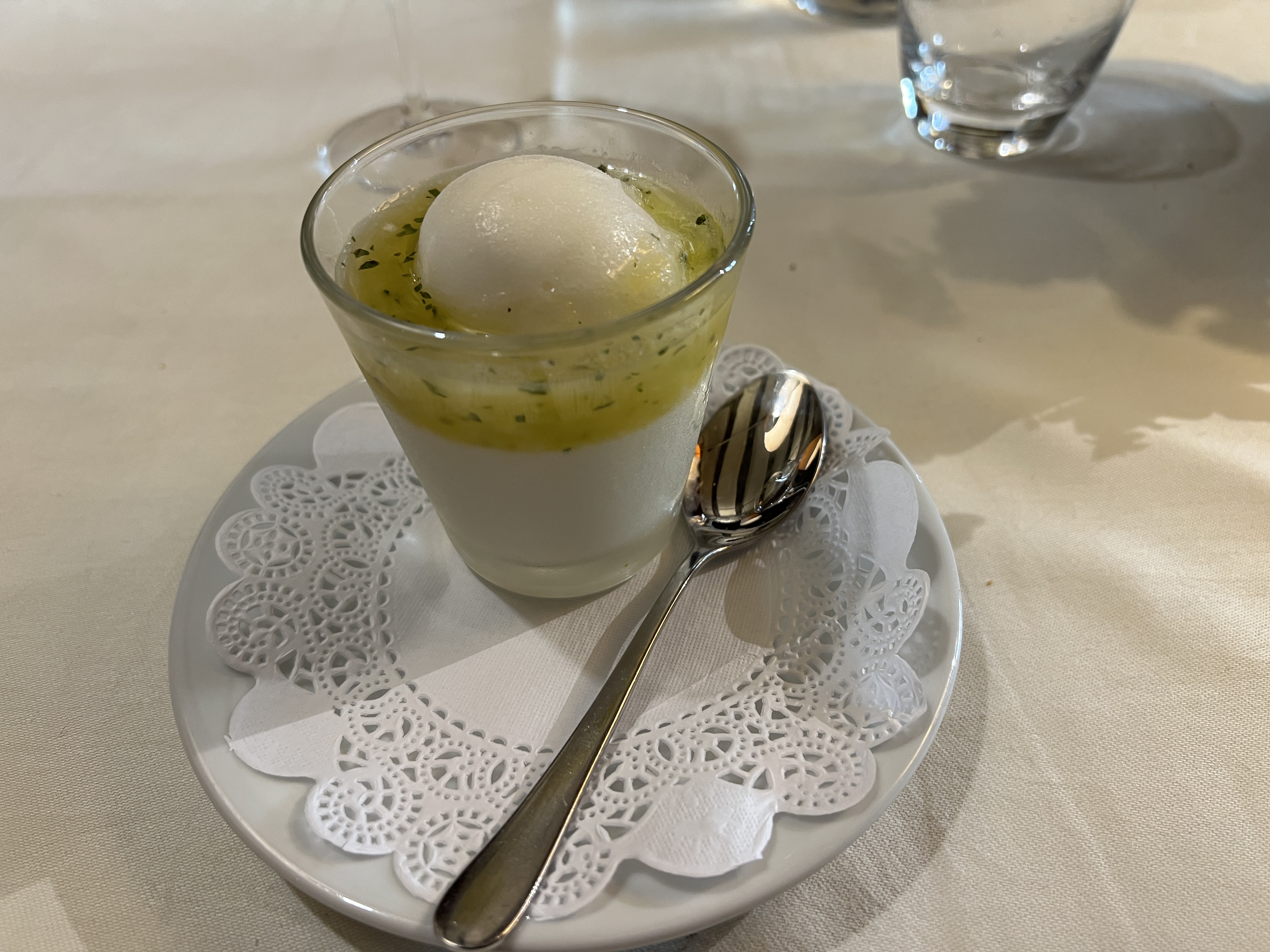 Dîner sympa et serveurs aussi. J'ai commencé par de la burrata, tapenade et cocktail de fleur de sureau et citron vert. Vraiment super bons ! Le cocktail est bien rafraîchissant. La burrata est très crémeuse et fraîche. La tapenade avec un goût fin d'olive, pas trop salé et sur le pain grillé, c'est quasiment divin. J'ai appris après coup que la tapenade, ce n'est pas végétarien car ça contient de l'huile d'anchois généralement... Ce serait top si il est possible d'afficher une petite icône sur la carte pour signifier si le produit est végétarien pour les étourdis. J'ai opté ensuite pour le risotto verde au noisette. Pareil, vraiment très bon et bien dressé. Pour finir un pavlova aux fraises et sa glace verveine : très bonne surprise pour la glace verveine. Si on m'avait donné le choix, j'aurais certainement pas misé sur ce melange, mais c'est très frais et m'a fait découvrir ce parfum. Repas excellent et très bon moment passé avec ma famille. Assurément le meilleur restaurant qu'on a fait durant nos vacances à Marseille.