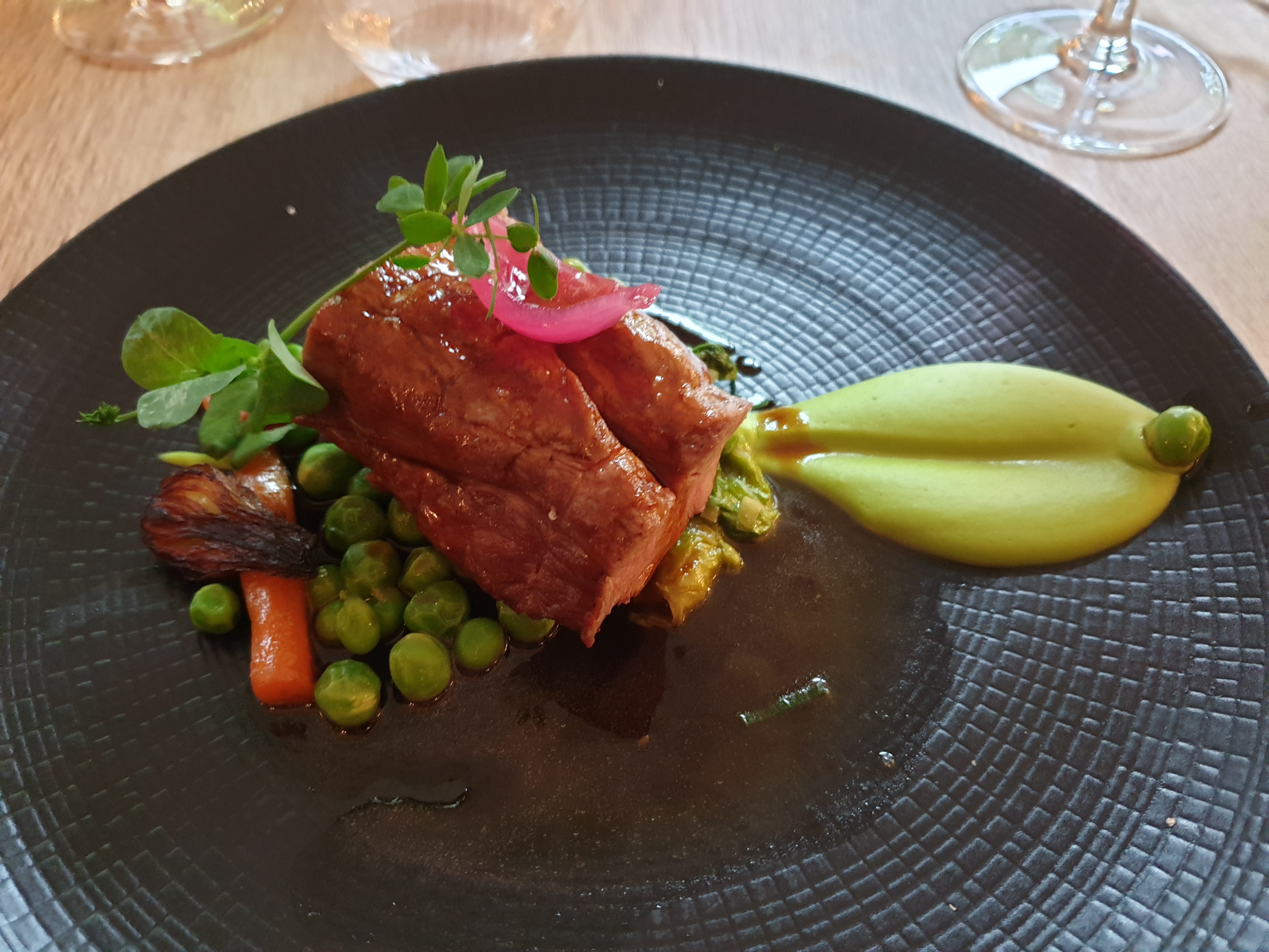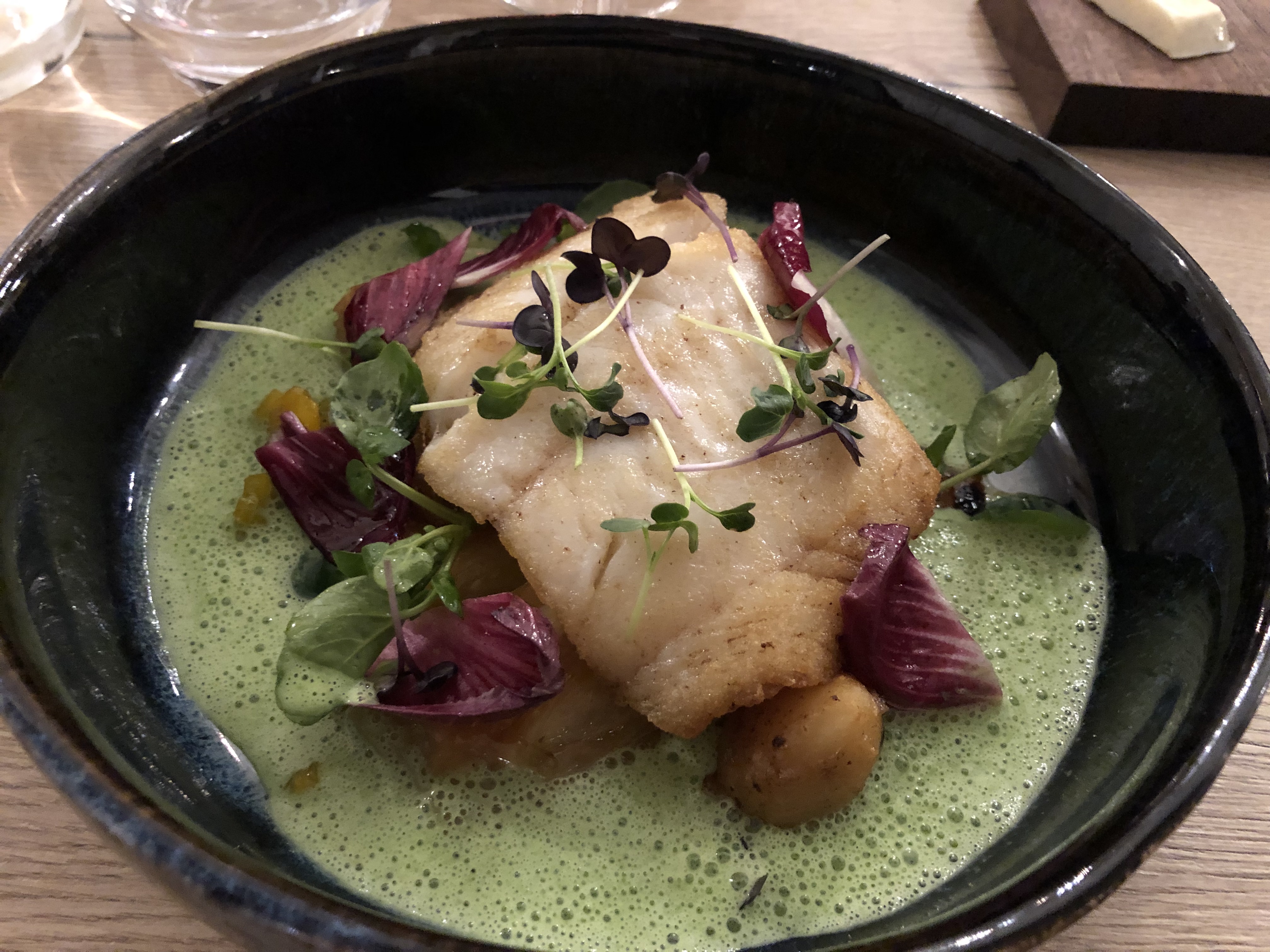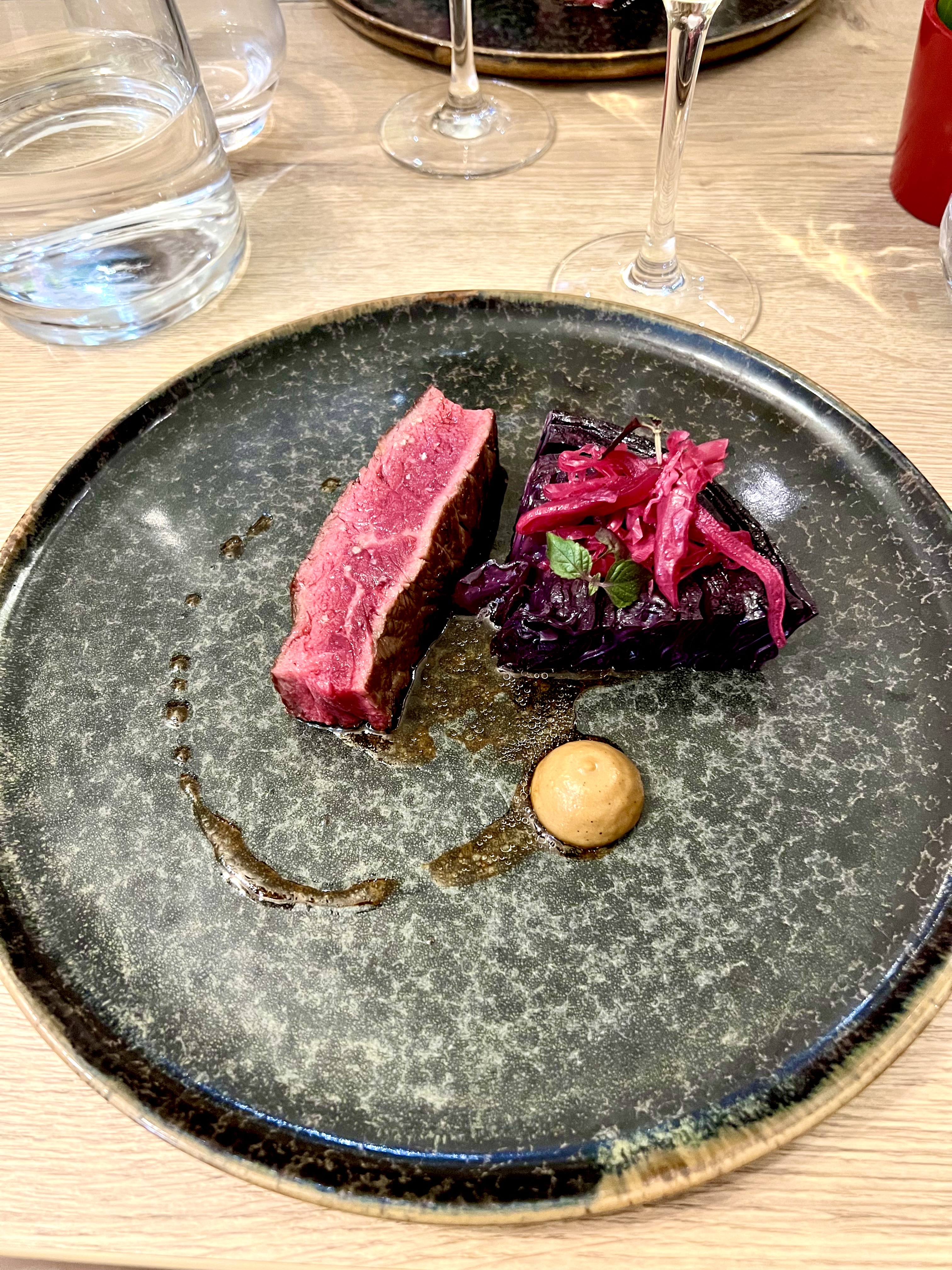 Un très bel accueil, de très belles assiettes, beaucoup d’attente et des plats qui n’ont pas émoustillés mes papilles. Accompagnent de la pièce de bœuf très salé et aucune explosion de saveurs en bouche. Le dos de cabillaud un peu trop cuit et ne se mariait pas forcément avec l’artichaut… Assez déçue pour un Michelin et Gault et Miault. Pas vraiment adapté aux jeunes enfants non plus… J’ai du échanger mon plat (pièce de bœuf) avec celui de ma fille (dos de cabillaud)
