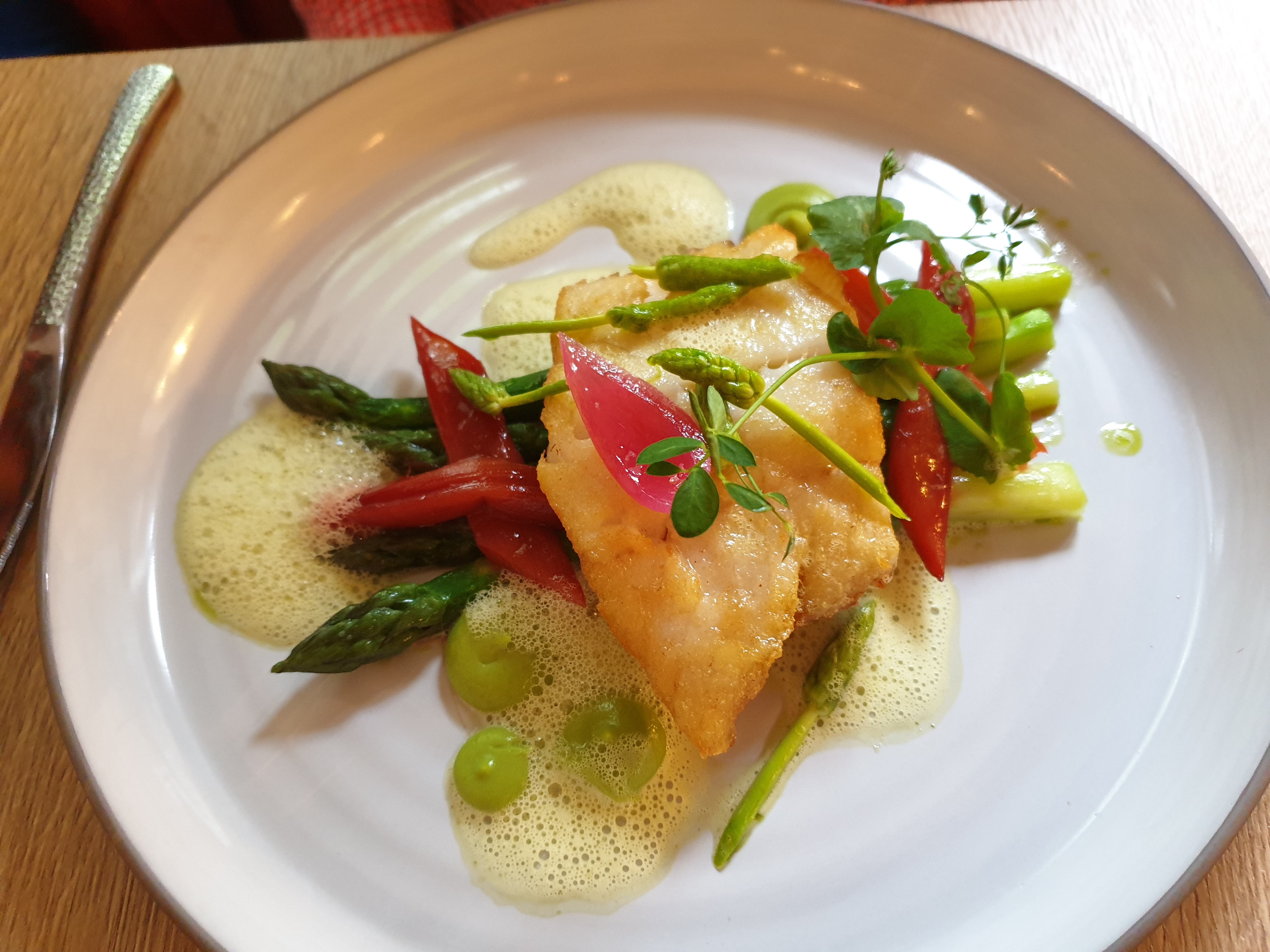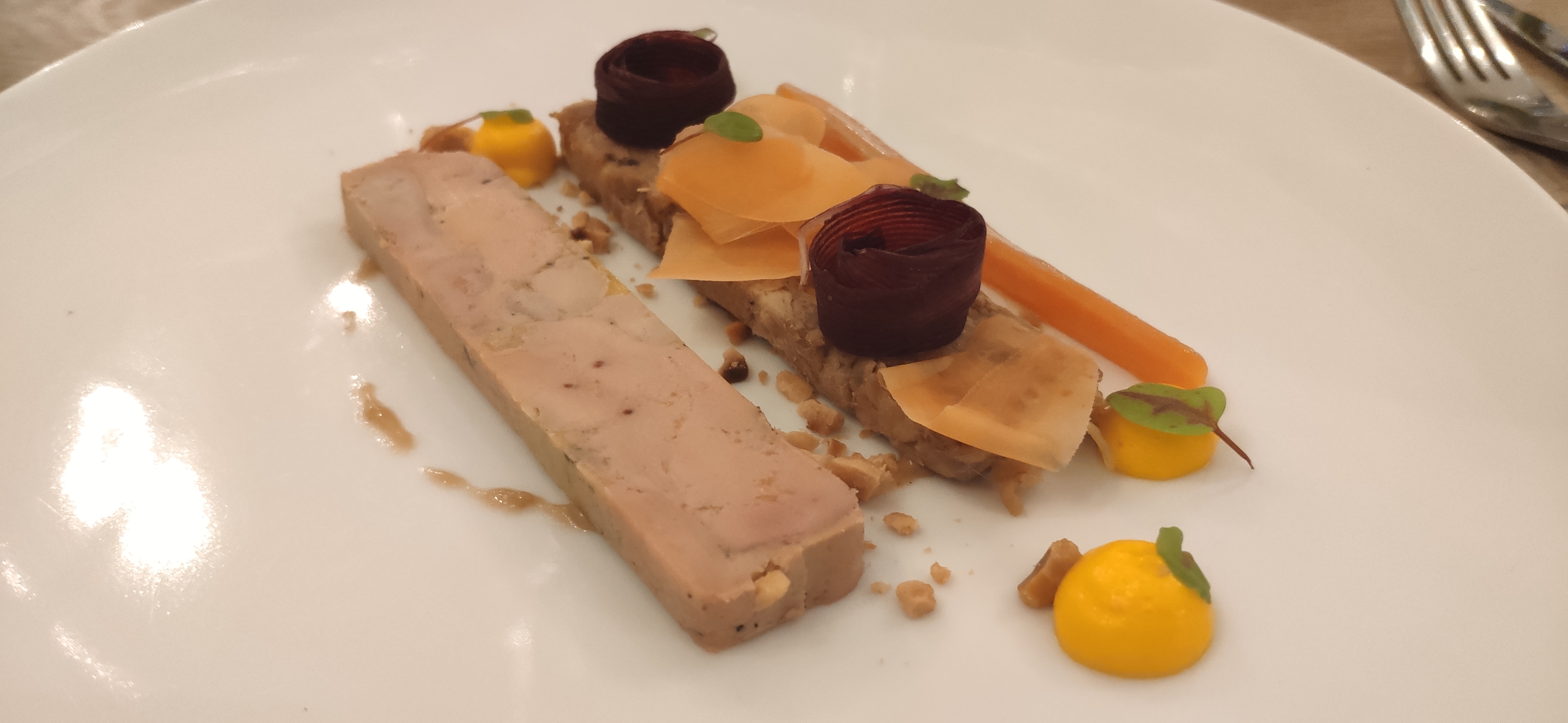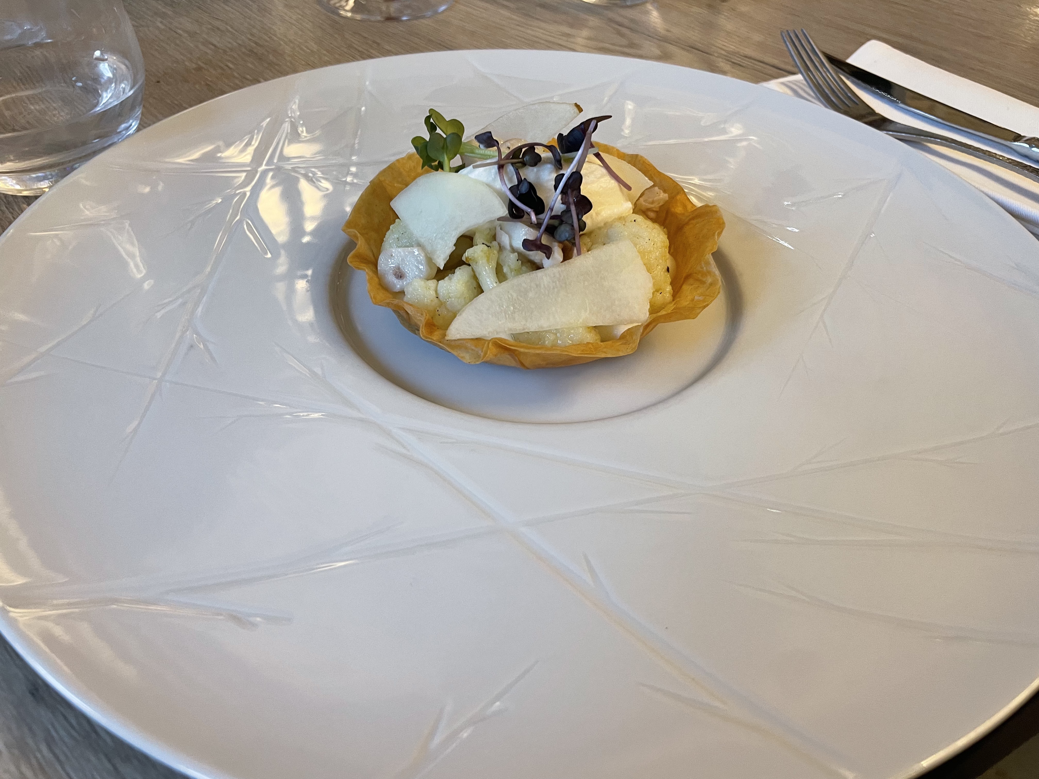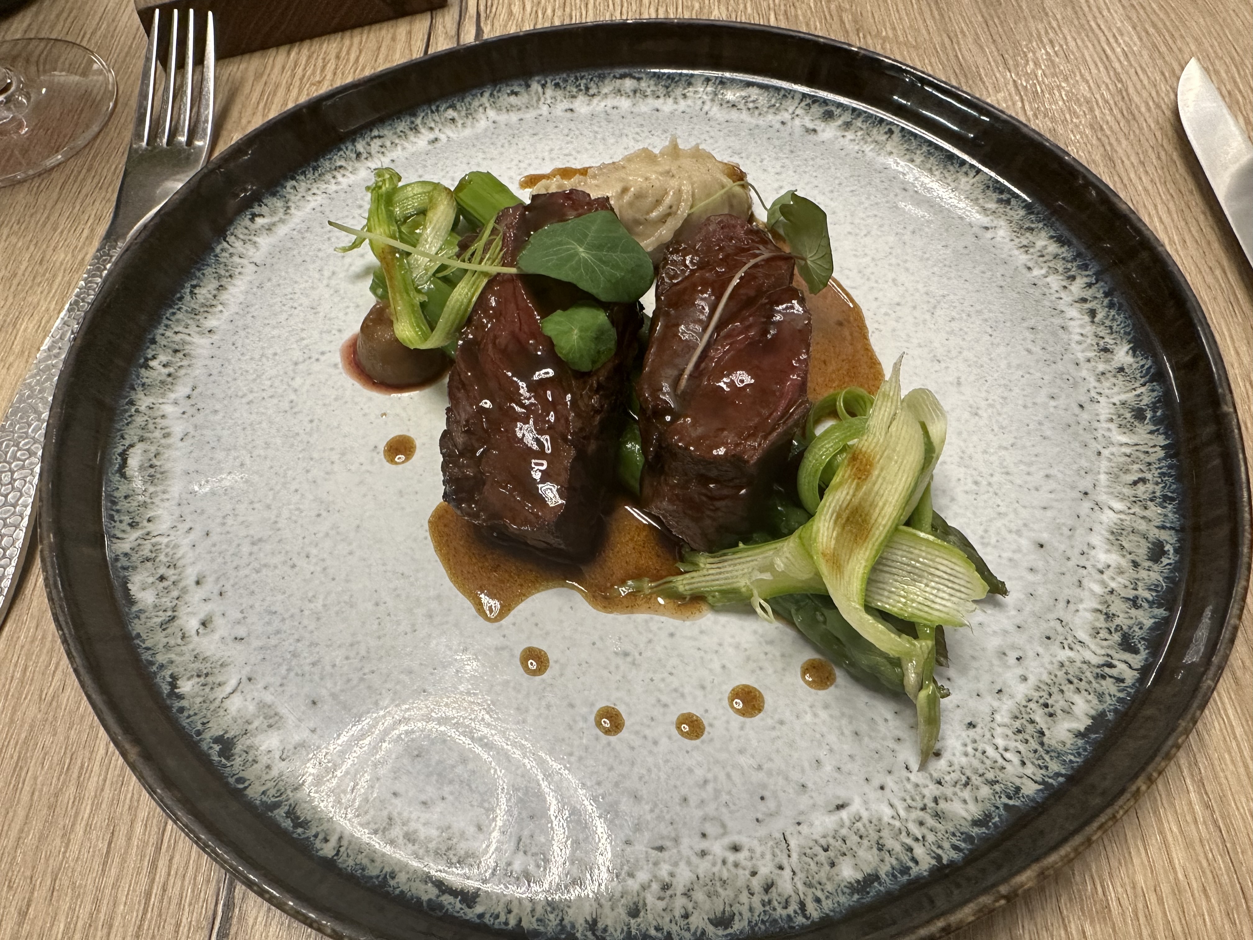 Un très bel accueil, de très belles assiettes, beaucoup d’attente et des plats qui n’ont pas émoustillés mes papilles. Accompagnent de la pièce de bœuf très salé et aucune explosion de saveurs en bouche. Le dos de cabillaud un peu trop cuit et ne se mariait pas forcément avec l’artichaut… Assez déçue pour un Michelin et Gault et Miault. Pas vraiment adapté aux jeunes enfants non plus… J’ai du échanger mon plat (pièce de bœuf) avec celui de ma fille (dos de cabillaud)