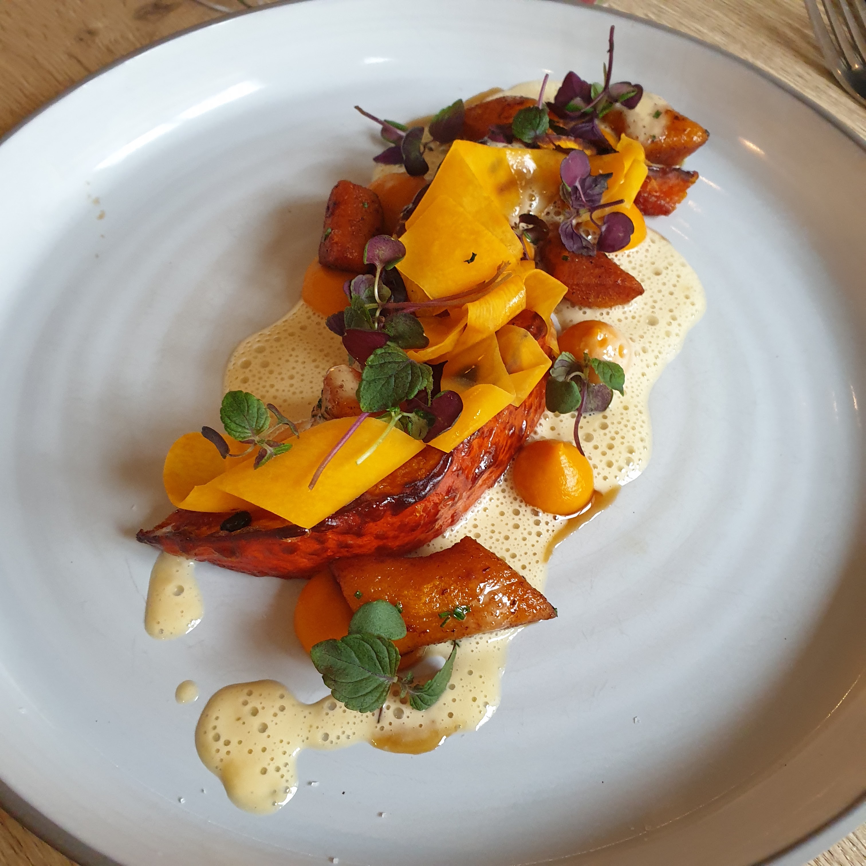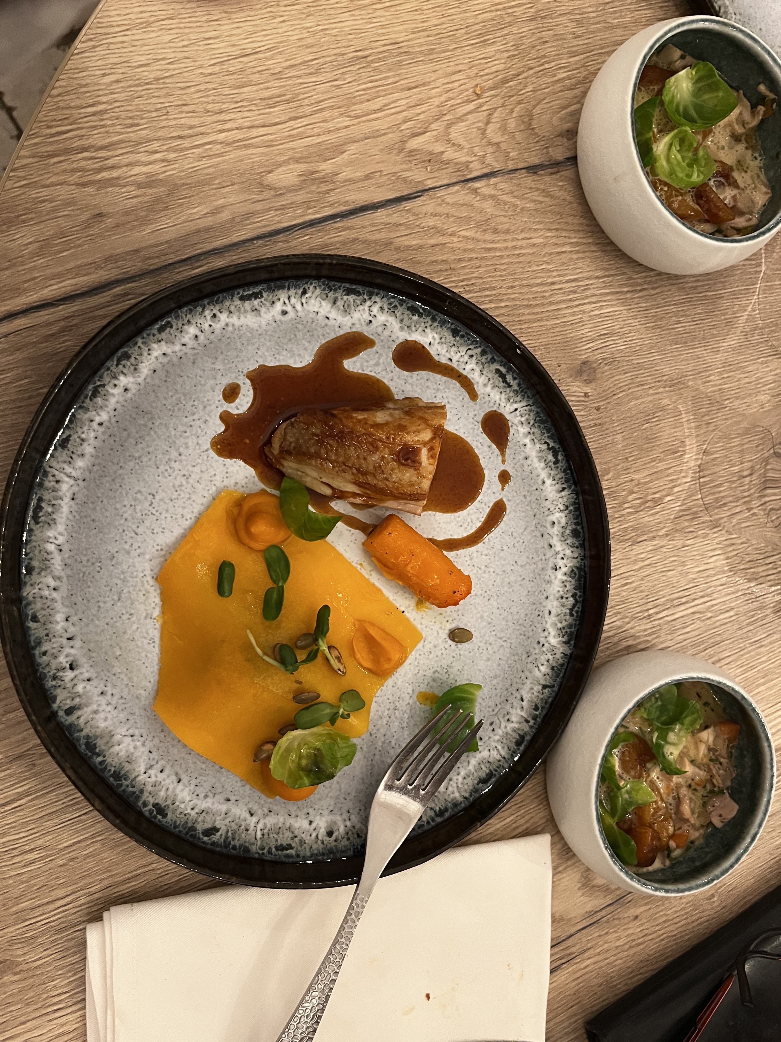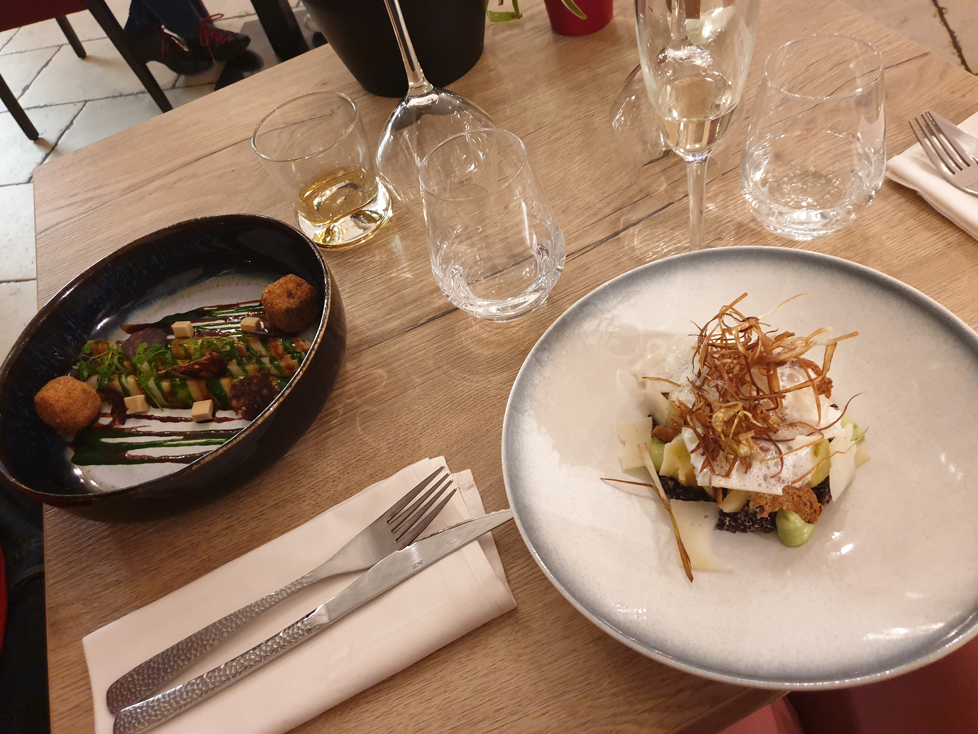 Belles assiettes; de l'originalité, de bons produits, les saveurs pourraient être plus affirmées; et les talons de la serveuses moins bruyants.