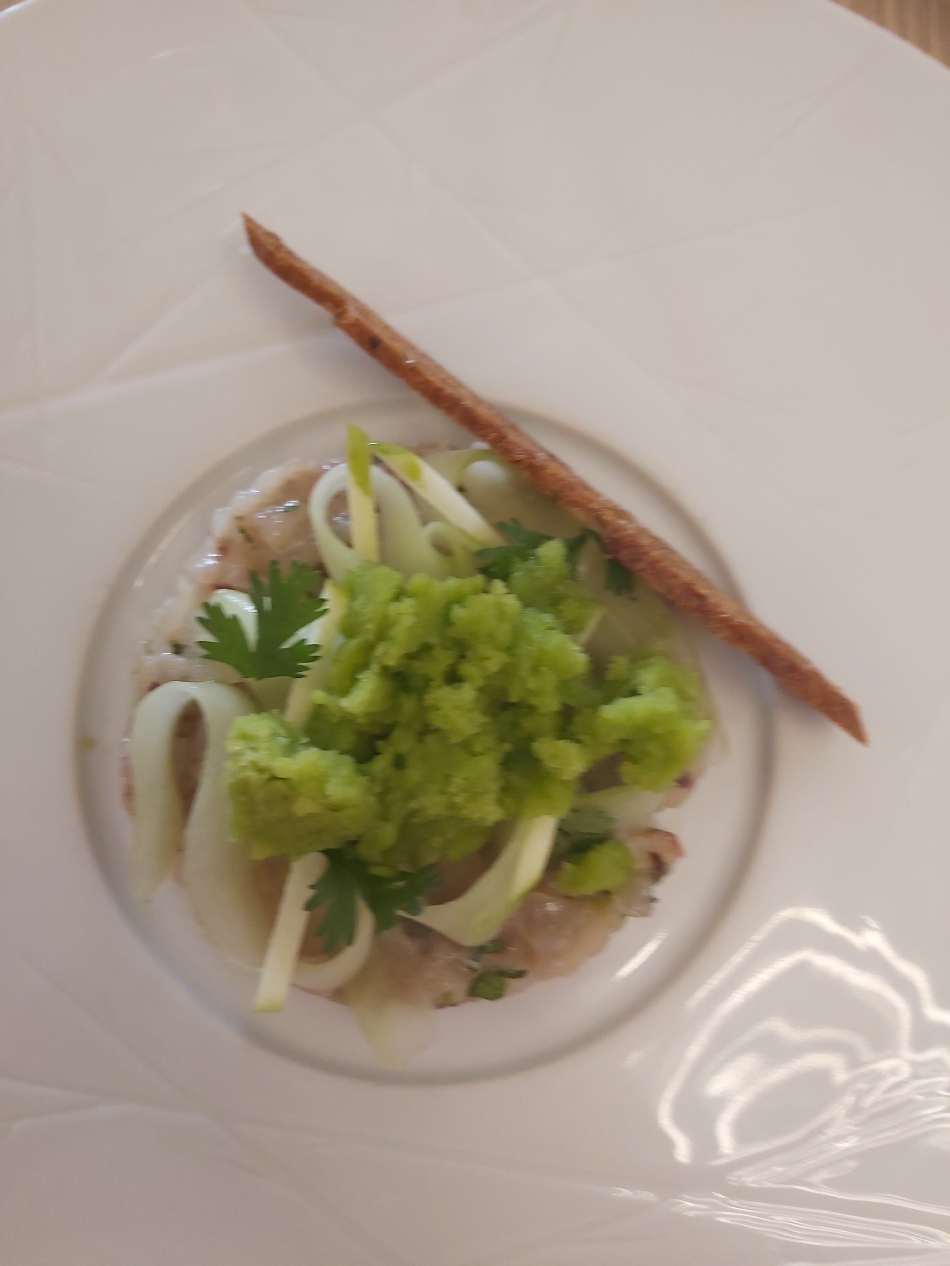 Une salle très épurée avec de la distance entre chaque table. C'est très agréable. Un service au petit soin. Et pour finir, des plats fins super travailler et très bien présentés. Donc un super moment, nous avons adoré. Nous allons y retourner