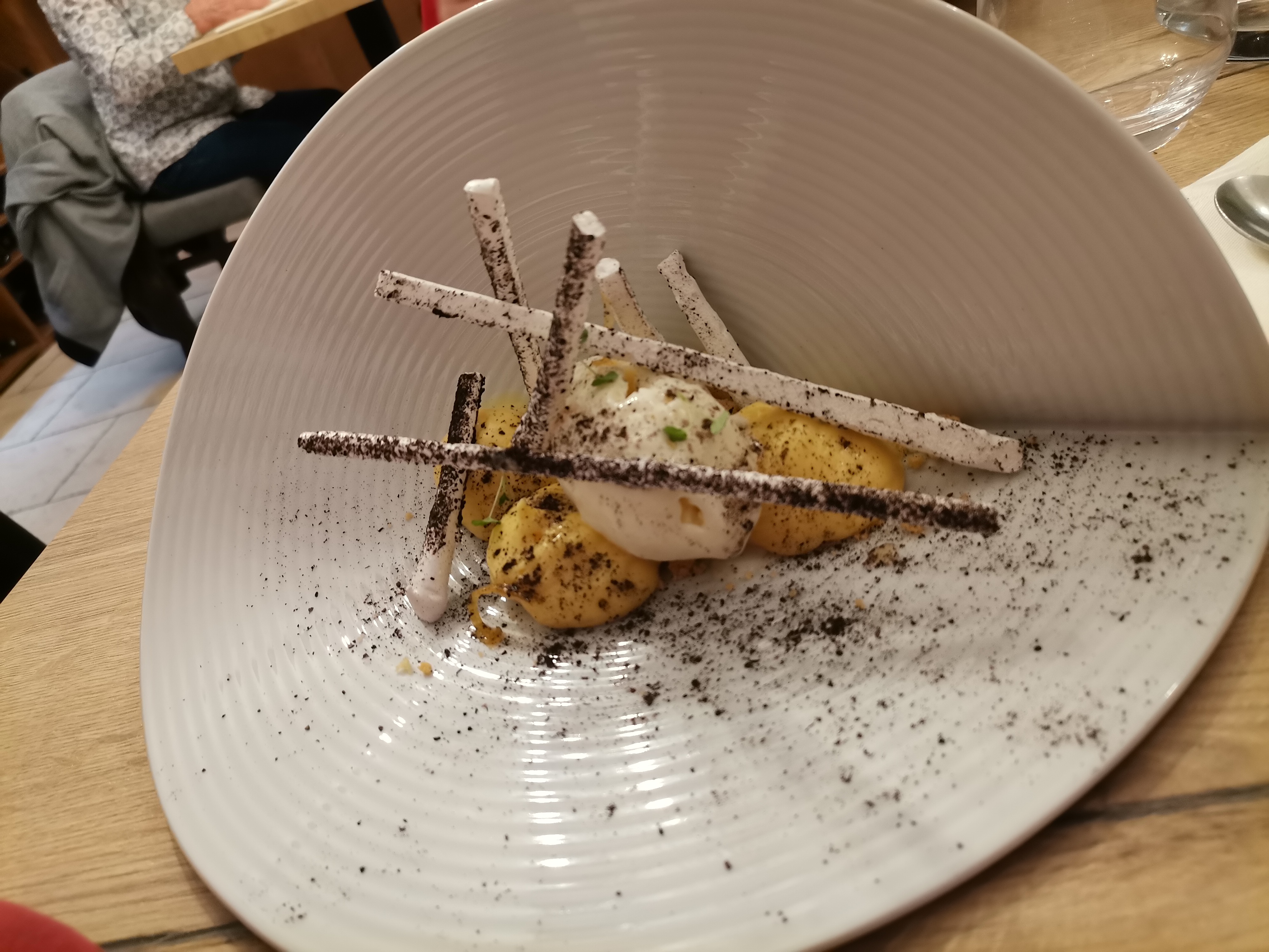 Dommage, vraiment dommage qu'un serveur puisse faire passer un bon moment degustatif en fiasco! La brigade en cuisine est très professionnelle,les assiettes sont belles et les saveurs au rendez-vous. Seulement voilà, comment un serveur qui se croît humoriste peux vous faire regretter et passer à côté d'un bon dîner. D'ailleurs, est ce de l'humour ( très mauvais et très déplacé ou est ce tout simplement de la bêtise ?) Dans le commerce au contact de la clientèle, Il faut un minimum de respect envers le client,ce qui n'est pas le cas ici. Une reconversion ...?