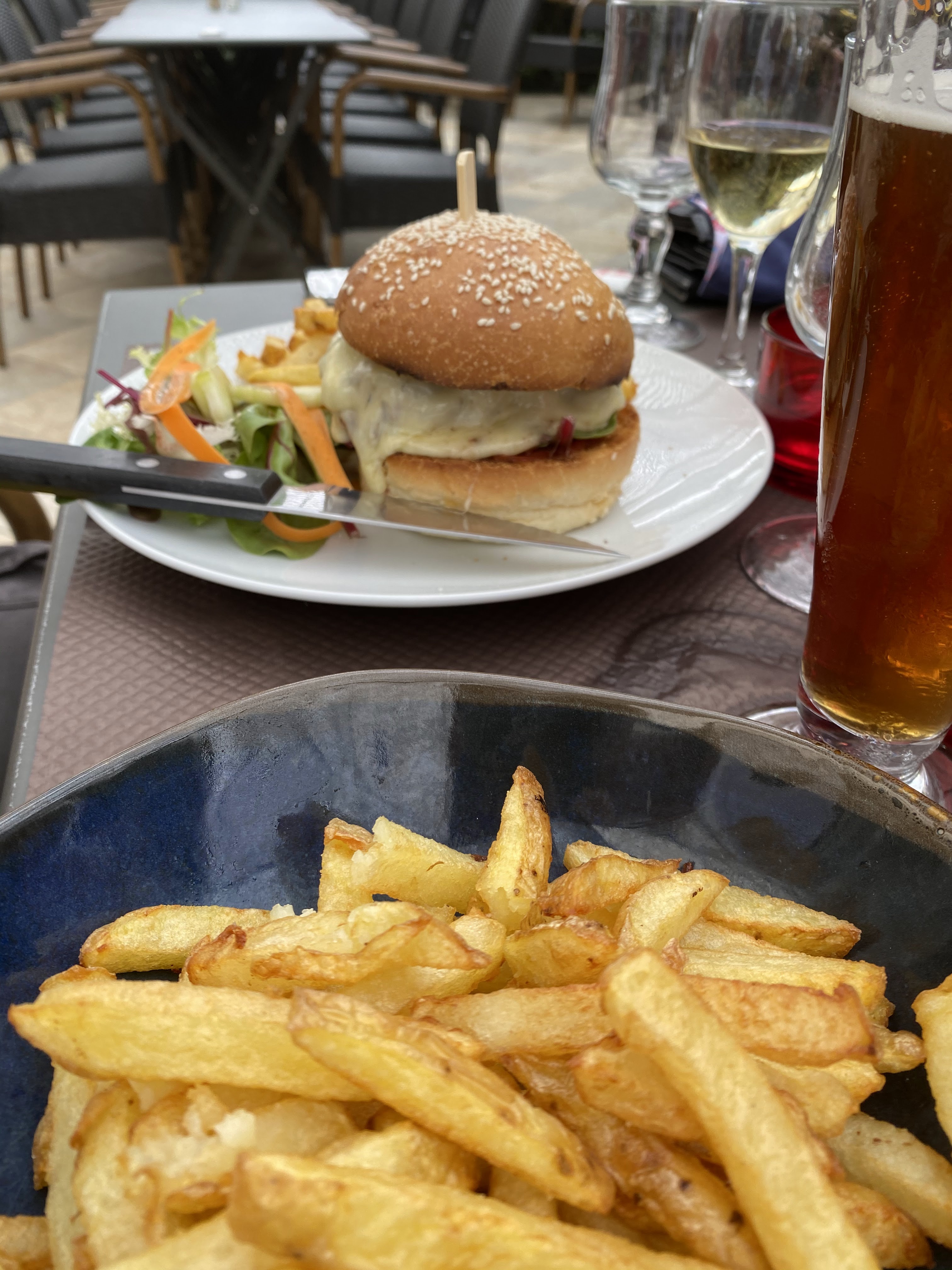 Repas de midi. Service rapide par des gens souriants. Burger bien fait