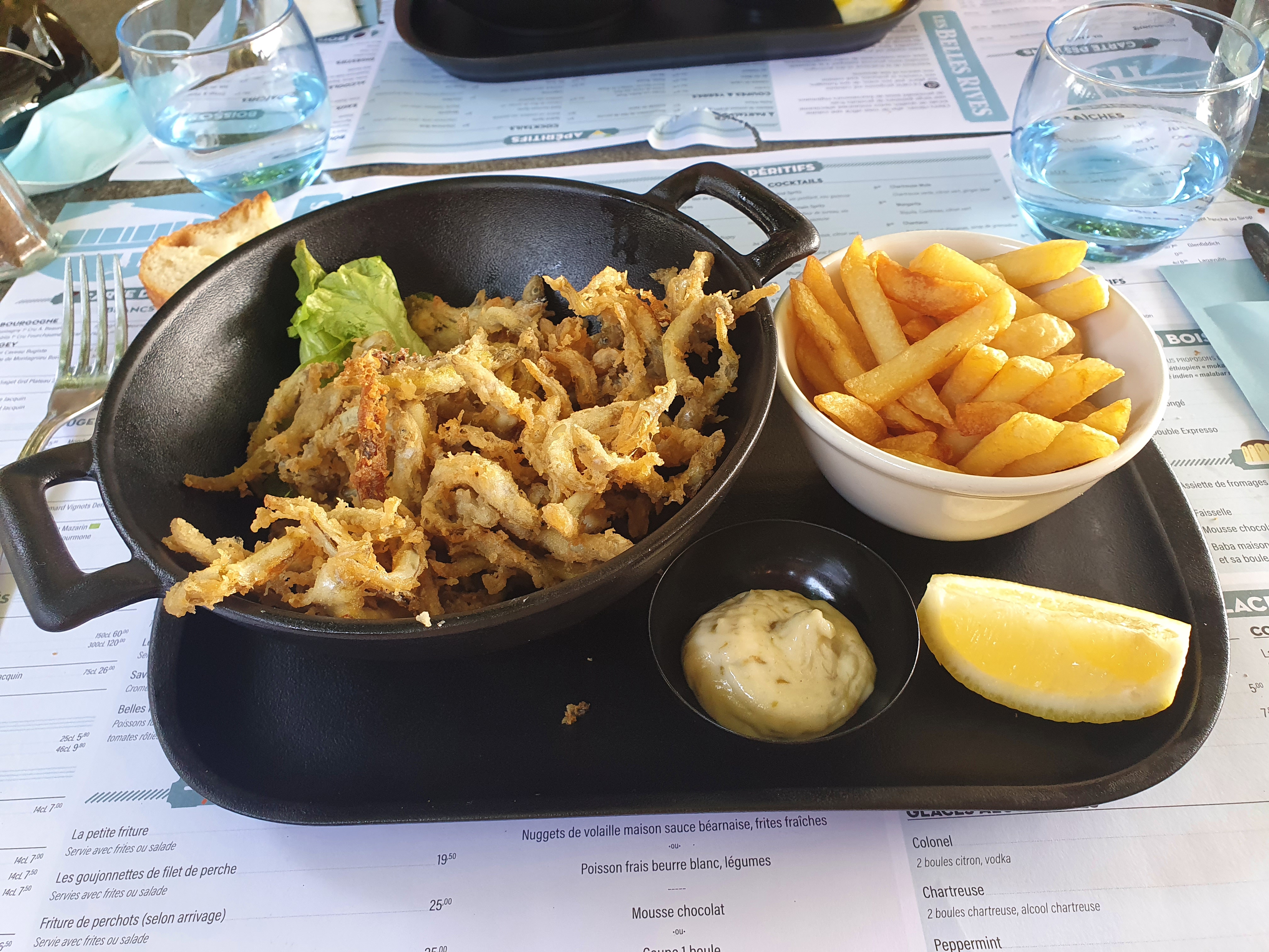 Juste parfait!!! La friture excellente en bonne portion pour 16,50€. Pensez à réserver bien à l'avance pour avoir le privilège d'une vue exceptionnelle sur le lac d'aiguebelette au coucher de soleil. Merci aux serveuses très aimables. Pas d'attente entre les plats malgré le monde.😋