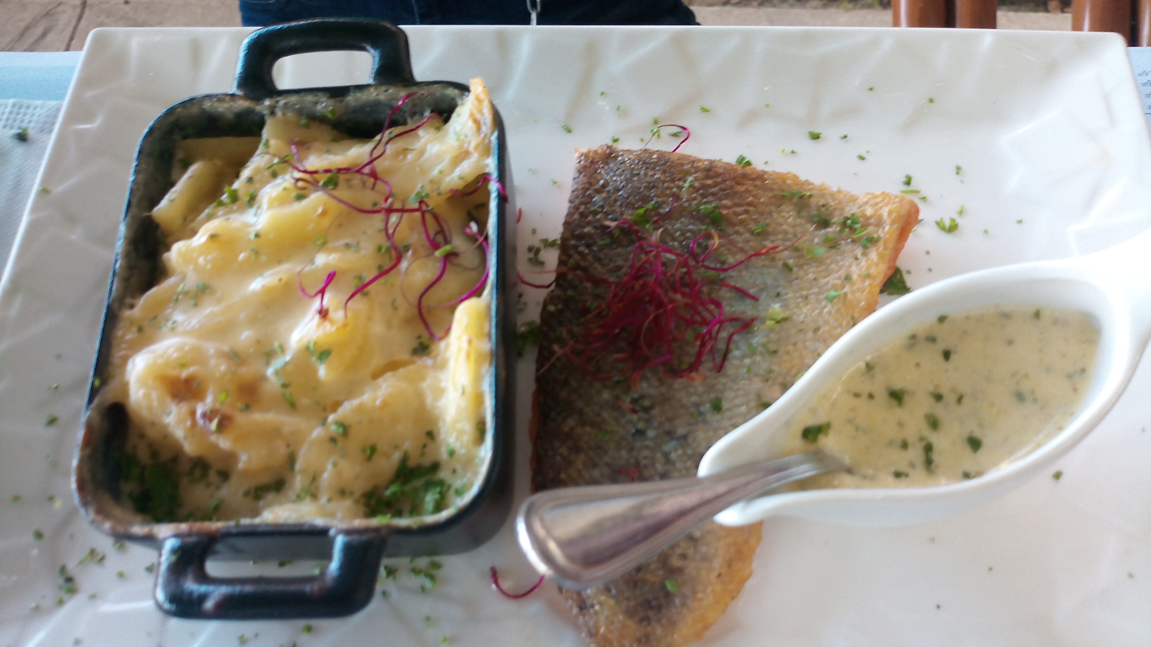 Belle terrasse, service soigné, cuisine bonne et présentation travaillée.