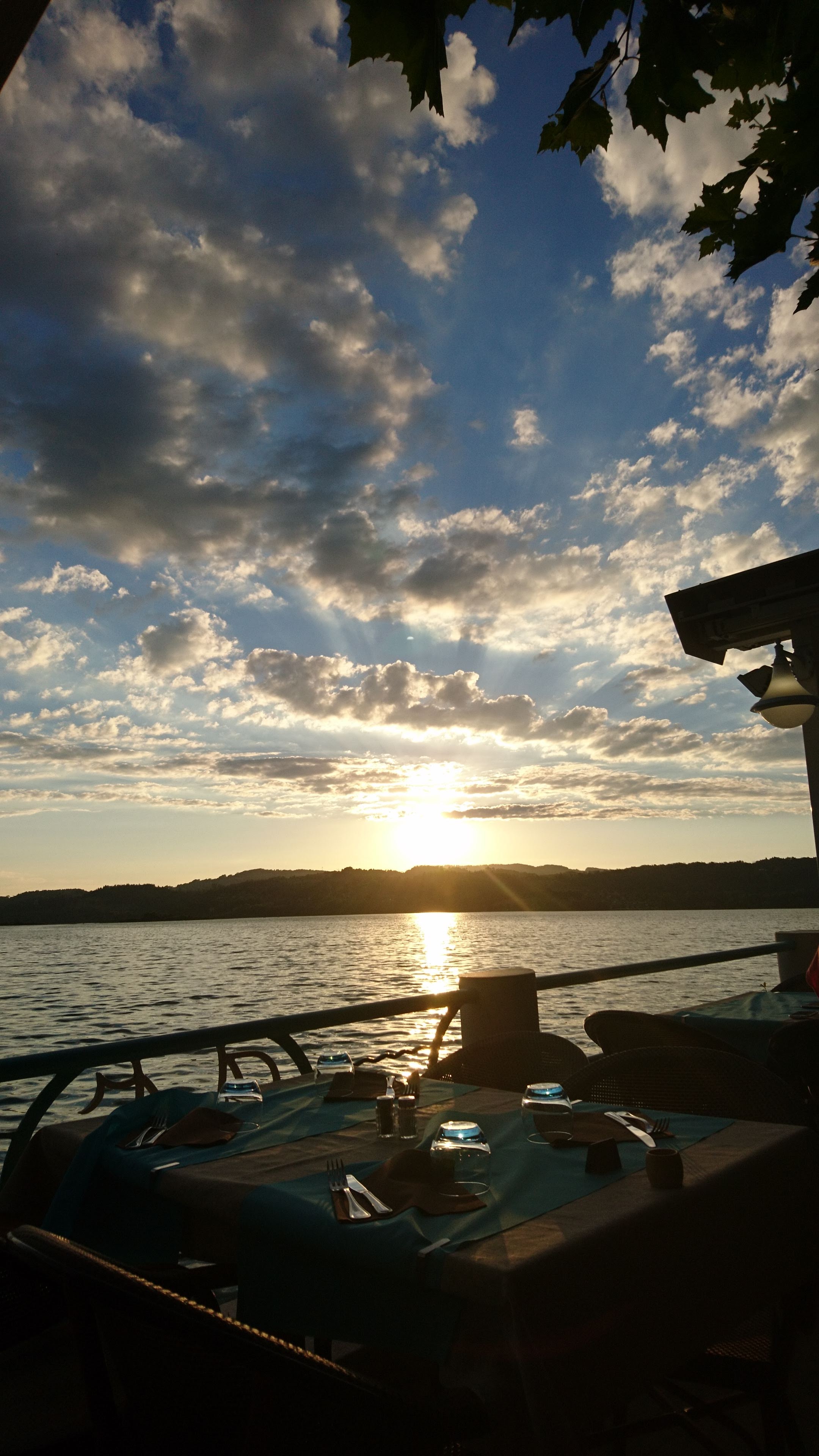 Vue sur le lac. Très bon rapport qualité prix, très bonnes fritures. Coucher de soleil incroyable
