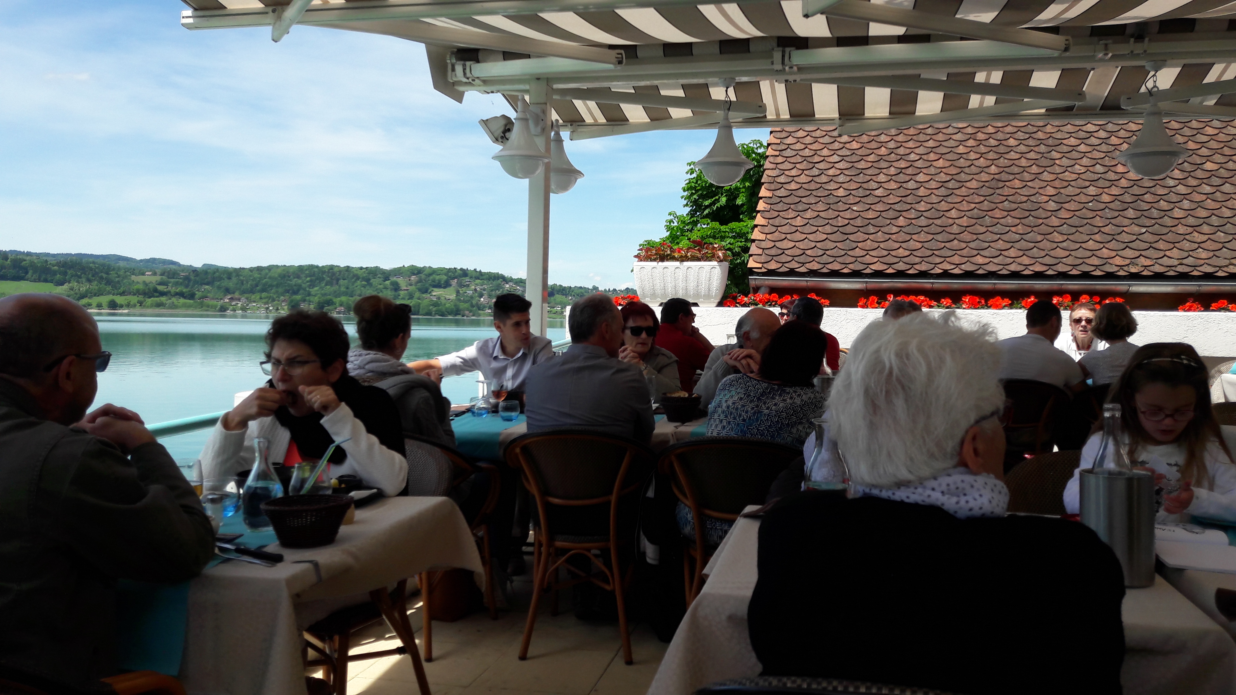 Nous avons passé un très agréable moment sous cette véranda avec une vue magnifique sur le lac Nous étions 10 adultes et 3 enfants, nous avons été très bien accueilli. Accueil et Service impeccable. Un serveur très impliqué...au top!. Tout était parfait pour fêter mes 60 ans. Ce sera un très bon souvenir en famille. Je recommande vivement cet établissement.