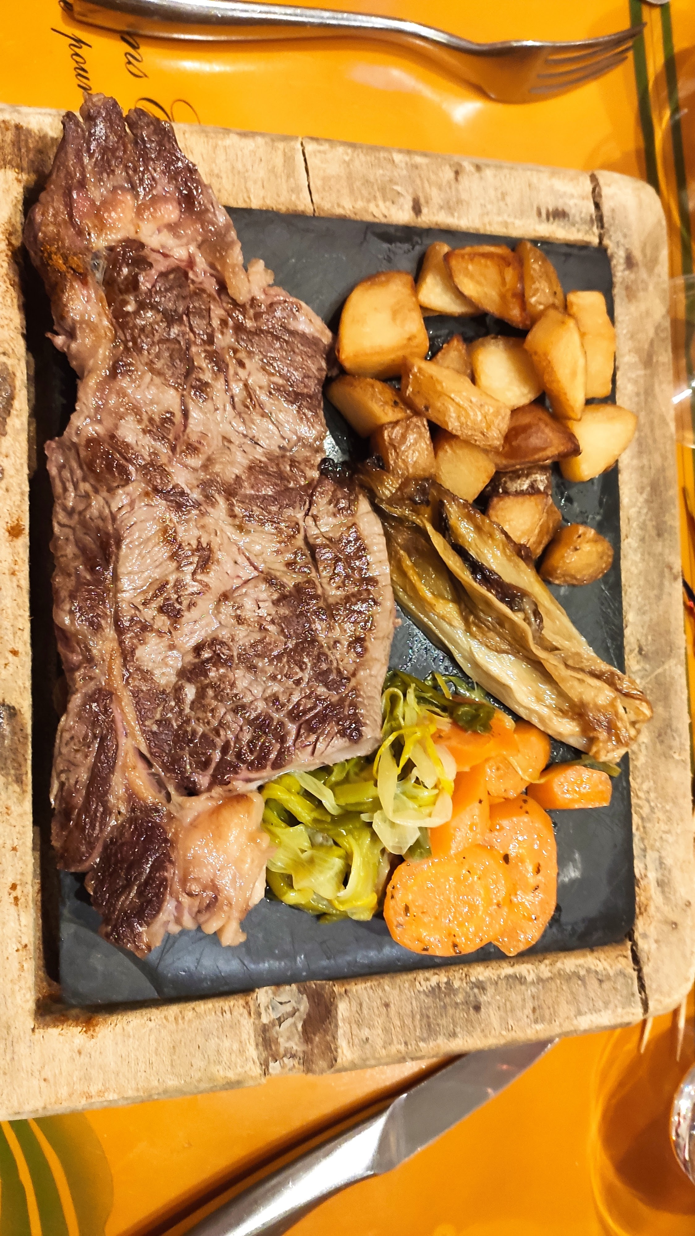 Restaurant situé dans un endroit sympa et calme, peu de circulation, un accueil très agréable, des amuses bouches appétissants, de l'eau pour le chien, que demander de plus ? Une large flopée de choix au menu, tous aussi attirants les uns que les autres, les tripes sont excellentes et les morceaux de viande bien servis. Je le conseille !!!