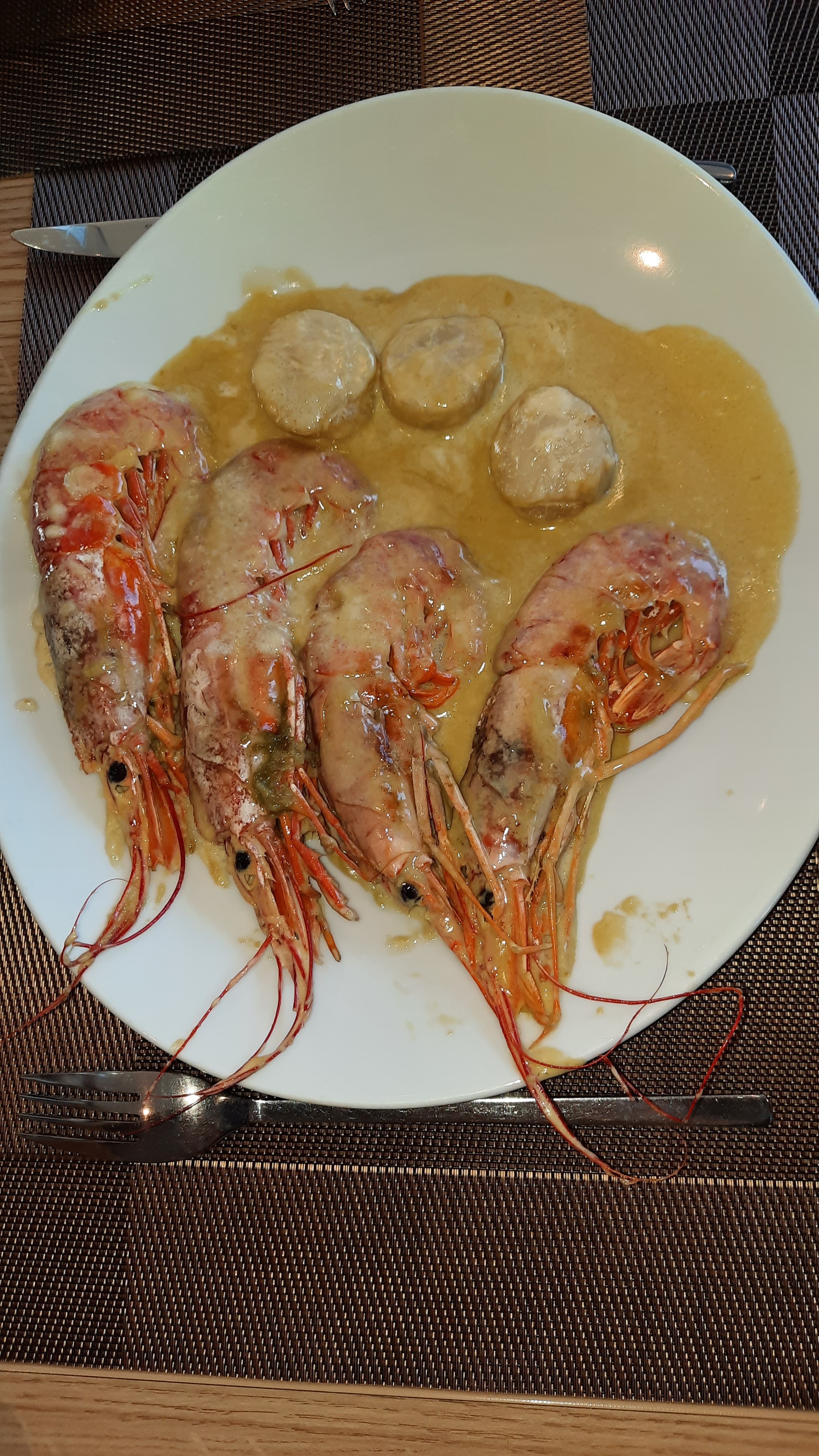 3etdemi st jacques et une cuillère de salade en entrée 14€.... C est très cher. Sinon pour le reste du repas pas beaucoup de légumes avec la viande mais celle ci était excellente