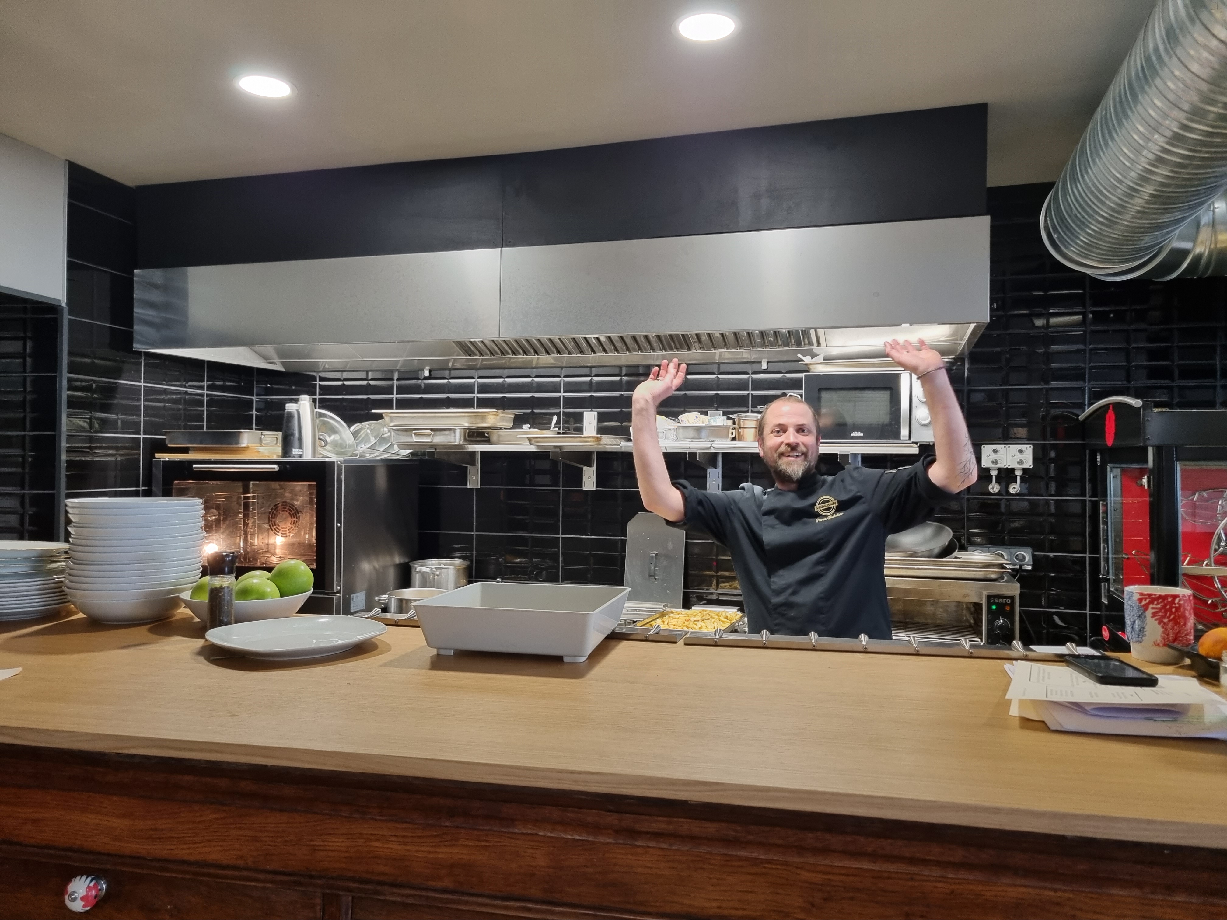 Super accueil ! Un cuisinier très pédagogue qui partage sa cuisine autant dans l'assiette que par ses histoires. Et c'est tellement bon qu'on louche sur le plat du voisin en se disant qu'on reviendra pour choisir autre chose au menu.
