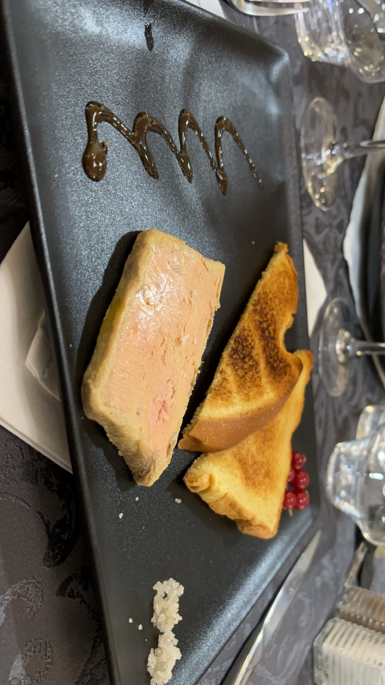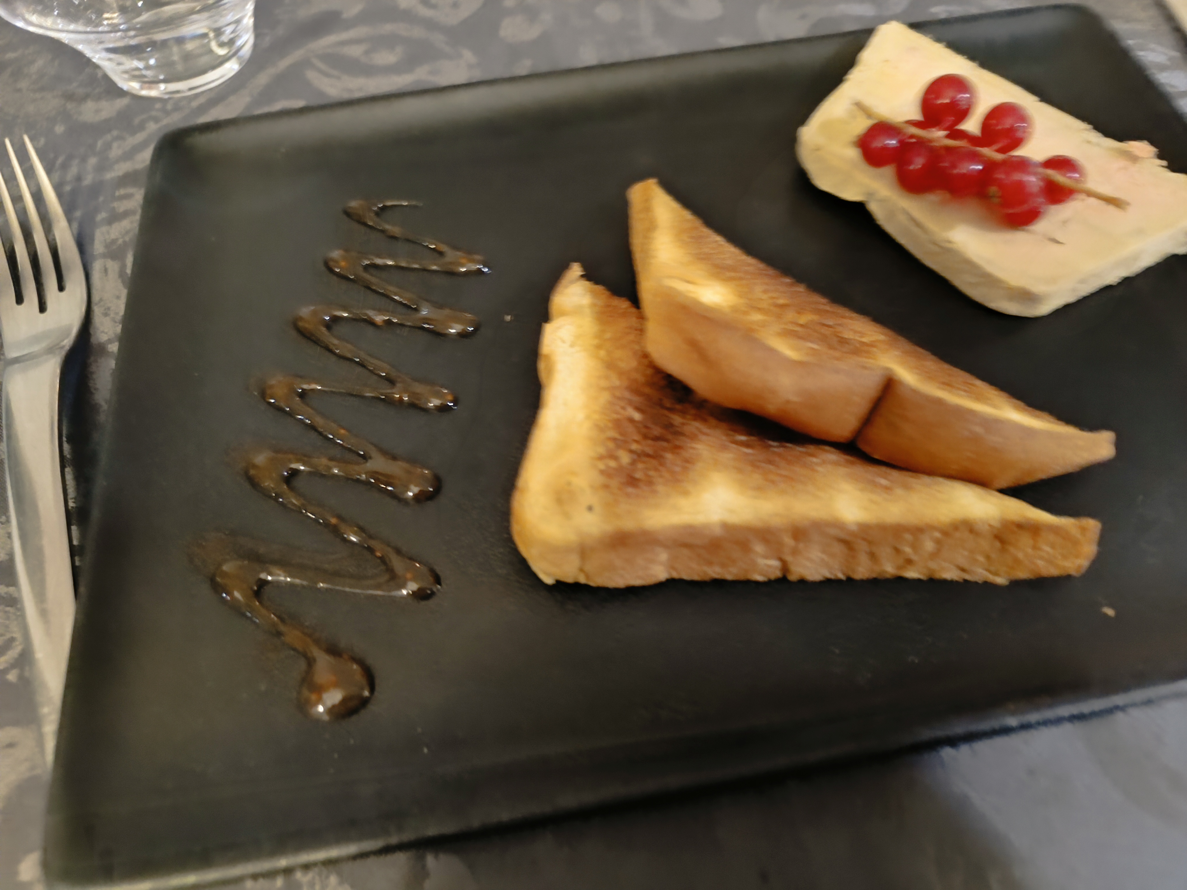 Excellente surprise avec le foie gras mariné au haut Médoc et chocolat de Tanzanie, suivi d'un ris de veau aux morilles....