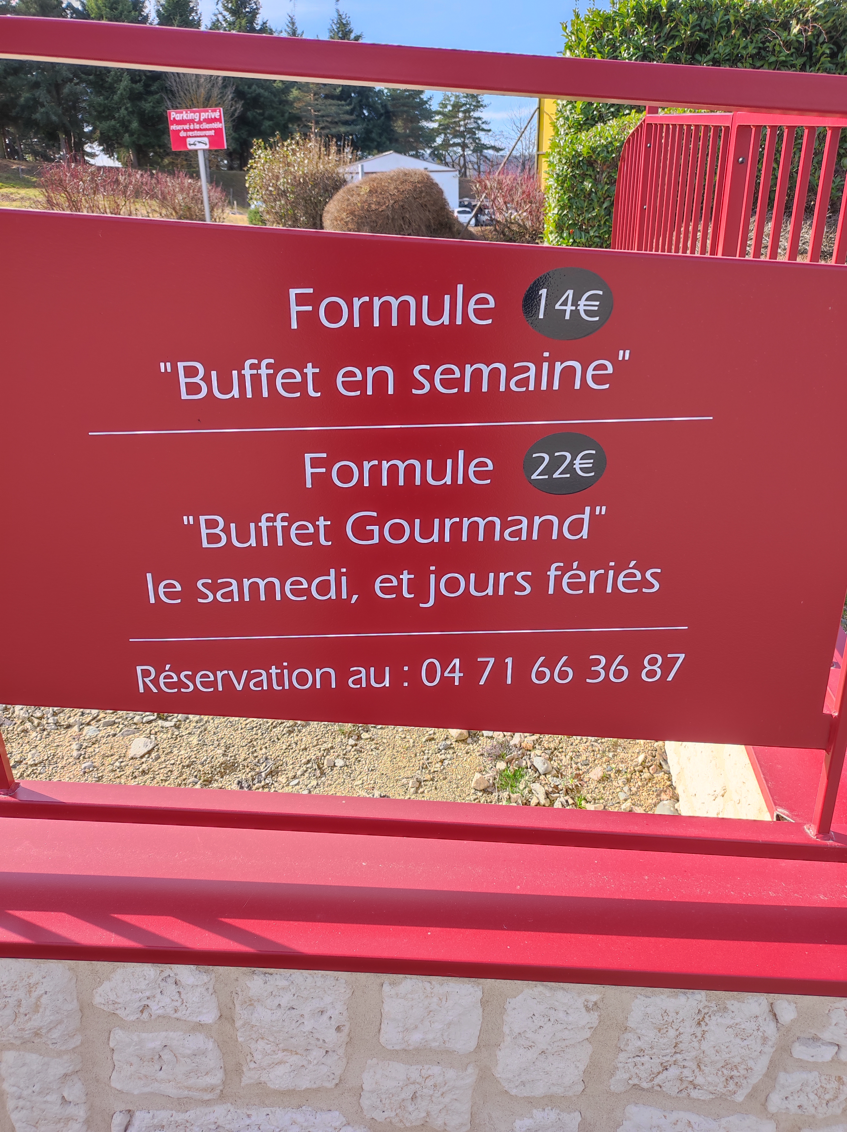 Restaurant sympathique,grand parking buffet à volonté ( entrée, plat, fromage, dessert ) avec beaucoup de choix plats fait maison et très bon le personnel est très agréable et souriant prix très resonable j' ai passé un très bon moment je recommande