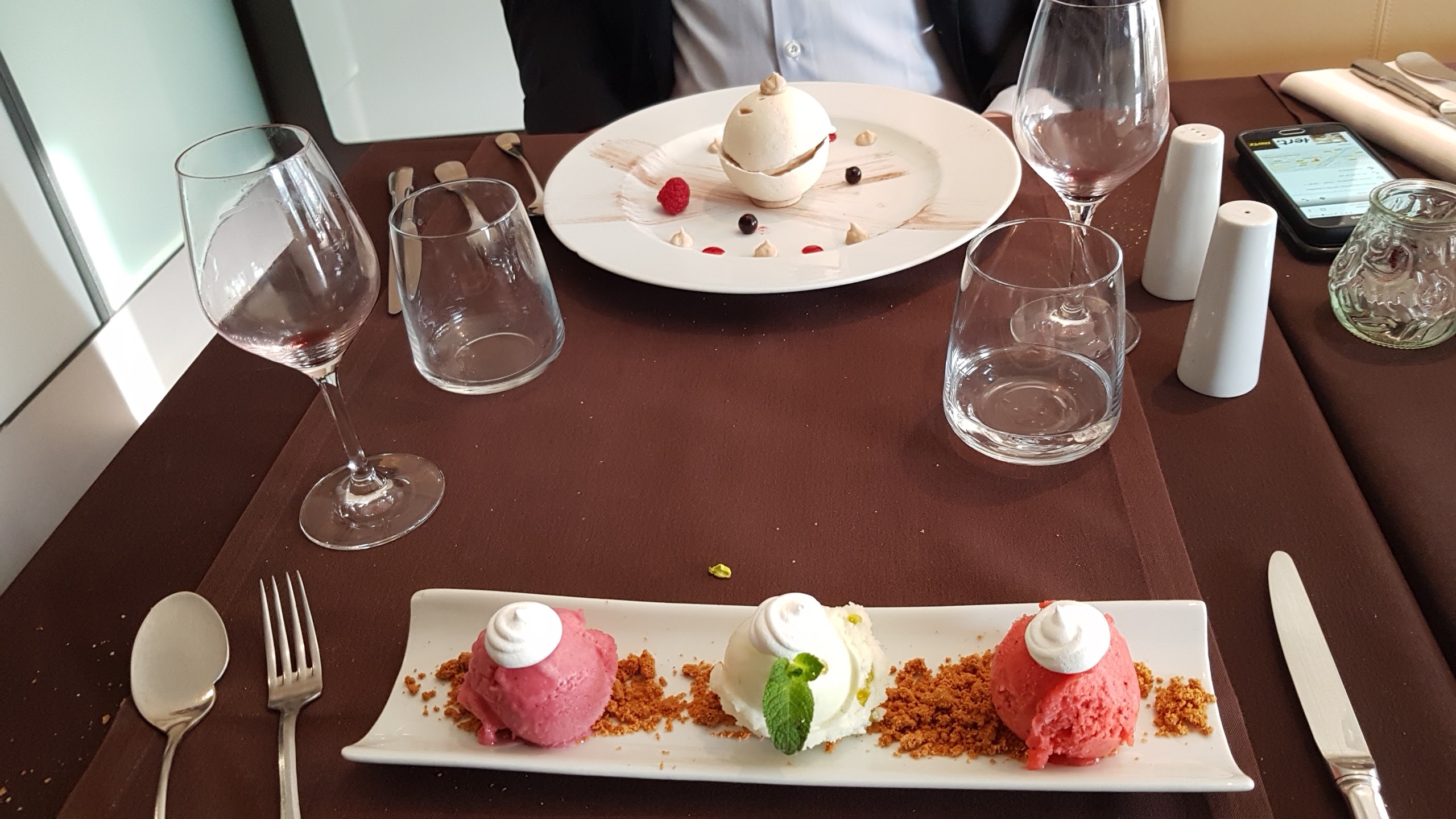 Une seule étoile pour le kir pétillant offert, duo de poisson surgelé mal réchauffé, la croûte de la raie toute molle, gratin de chou-fleur tiedasse au milieu pourtant servi sur assiette chaude, quant à la mousse au chocolat maison au vu de la quantité liquide au fond de la tulipe, elle avait quelques jours de frigo, pour finir le café est servi par le Barmaid en survêtement baskets ?????