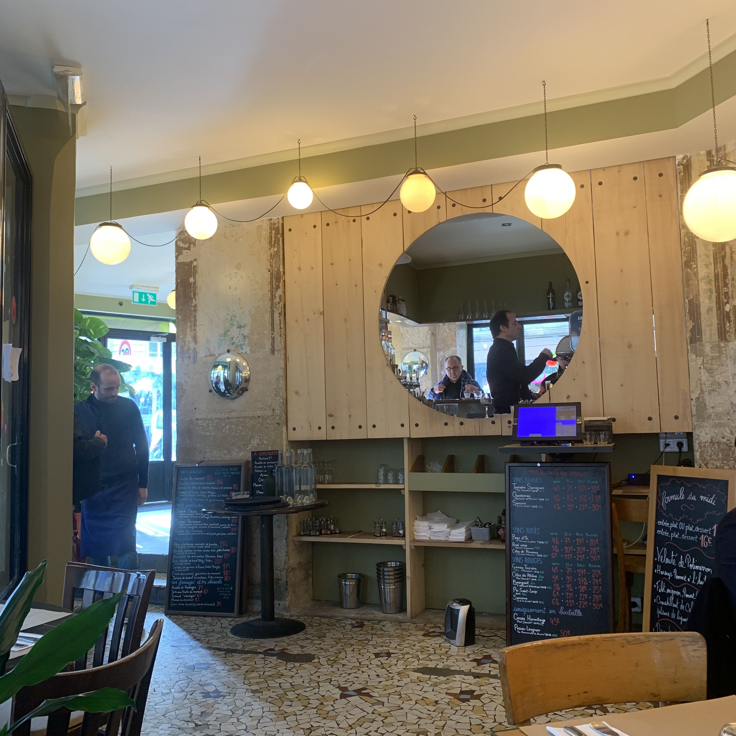 AVERTISSEMENT : toutes les remarques et critiques sont tirées de mes propres expériences et ne sont en aucun cas liées à un acte publicitaire ou rémunéré Parfaite découverte de ce bistrot ouvert depuis qq mois. Jeune équipe efficace et souriante Deco chaleureuse et bonne atmosphère Menu du jour à prix ultra raisonnable comme la carte; pas trop de choix mais de fait on va à l essentiel et de quoi plaire à tout le monde Service avec un bon timing Les plats sont tous franchement très bons et une note d originalité pour le croustillant de cabillaud. On pourrait pinailler sur les quantités en tant que « gros » mangeur mais à ce prix là franchement, rien à redire Choix des vins et bières pression pertinents et également à prix abordables Bref on y va pour se faire plaisir et on n est pas déçu Enfin mention spéciale pour les frites faites maison, parfaitement cuites et croustillantes à souhait et accompagnées de mayonnaise maison, excusez du peu #tropbonjyretourne (*7)
