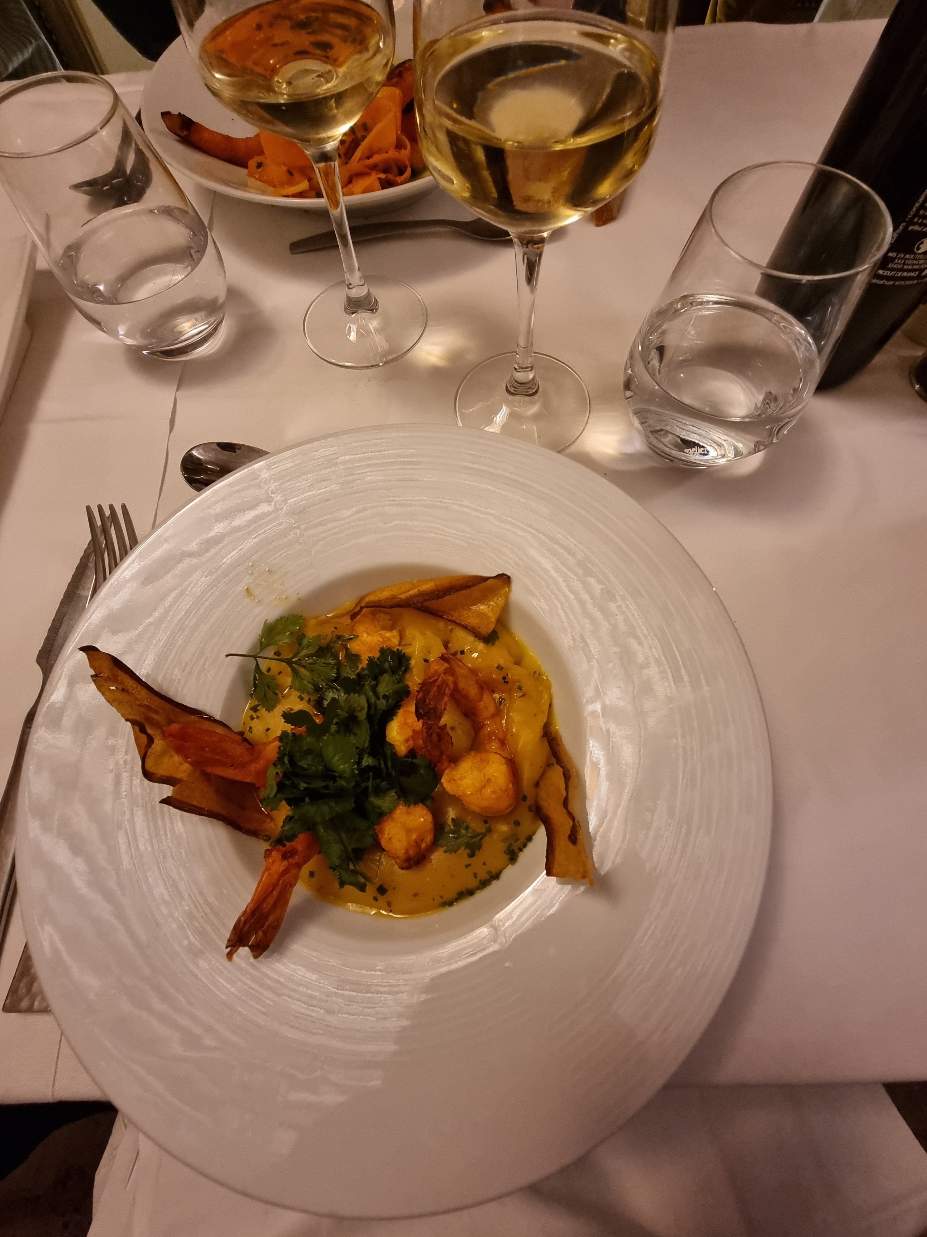 Dîner à 3, le service était excellent. On y était vendredi soir donc pianiste toute la soirée vraiment un petit moment suspendu. La cuisine, les cocktails et les vins… Tout était parfait merci encore