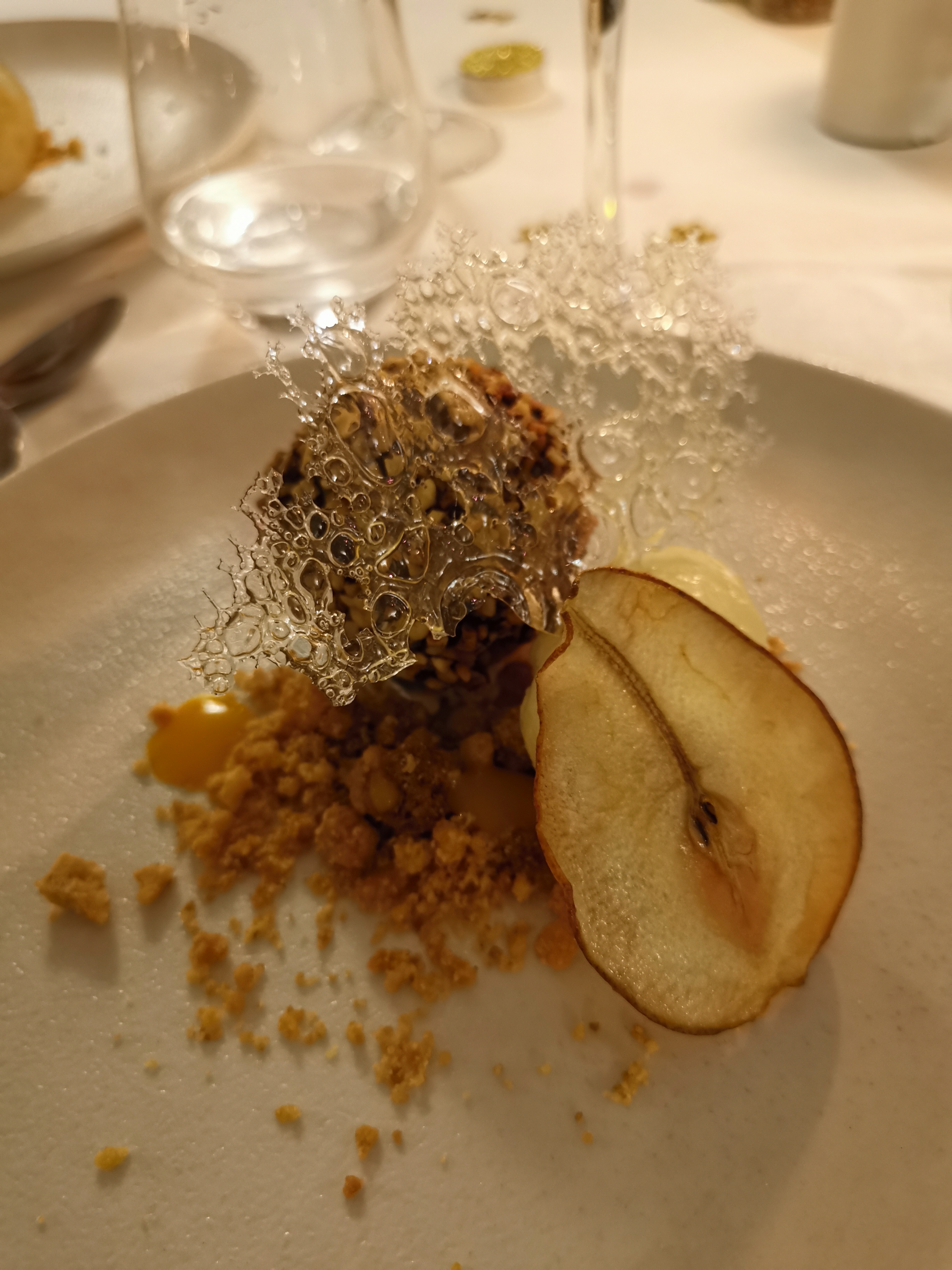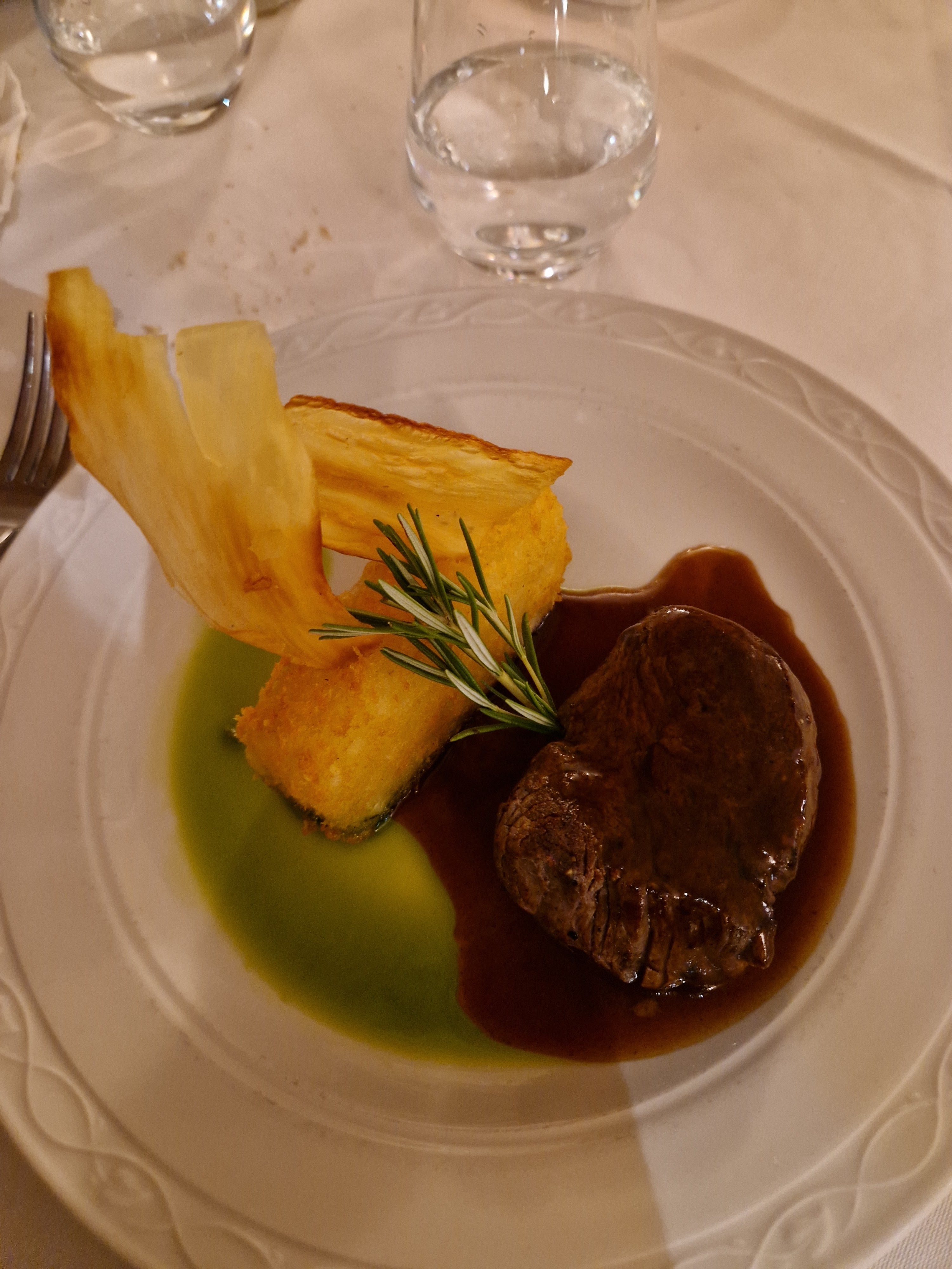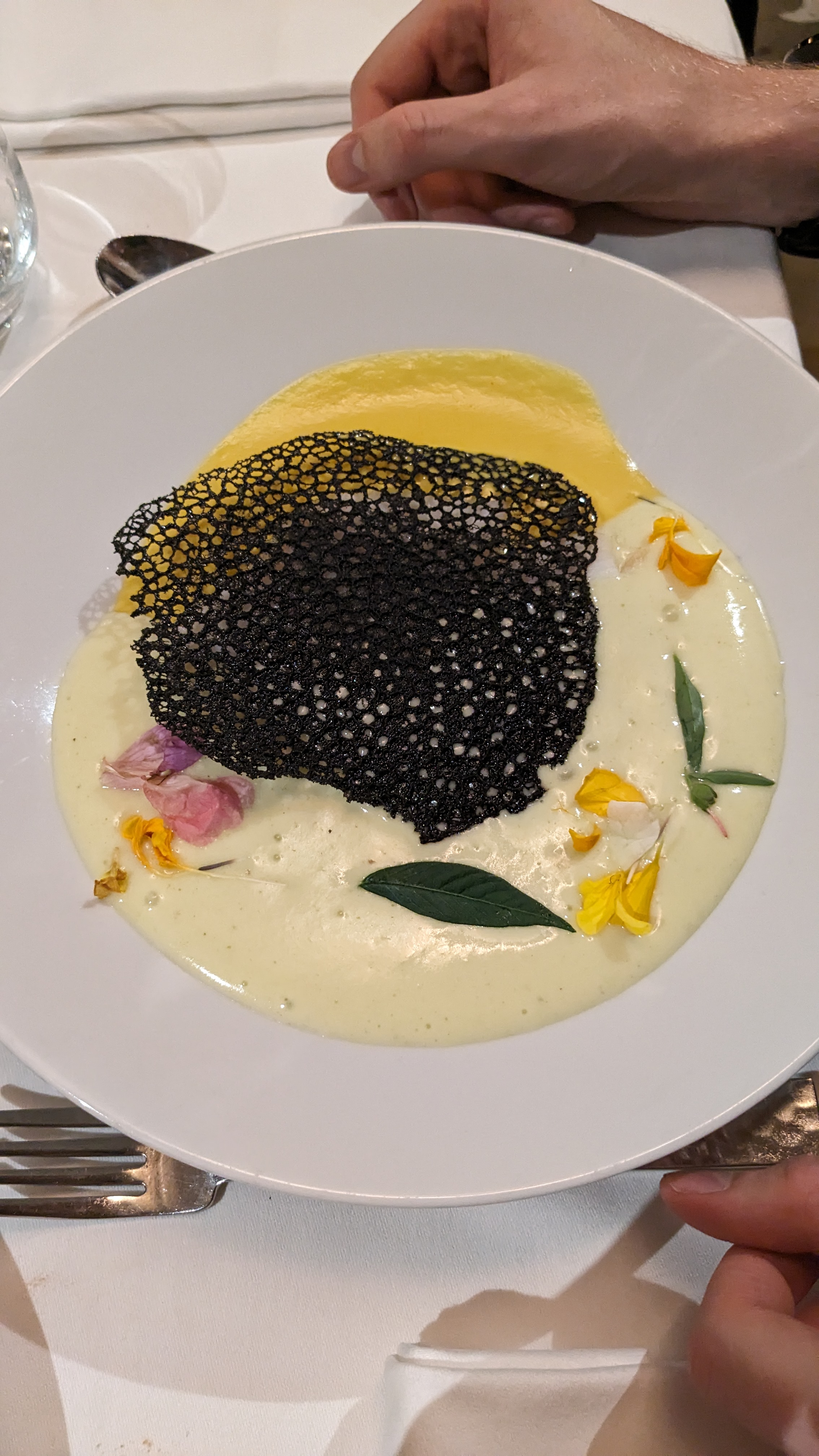 Lieu très agréable, serveurs souriants et discrets, cuisine élaborée qui fait son effet. Je recommande notamment pour le romantisme du cadre.