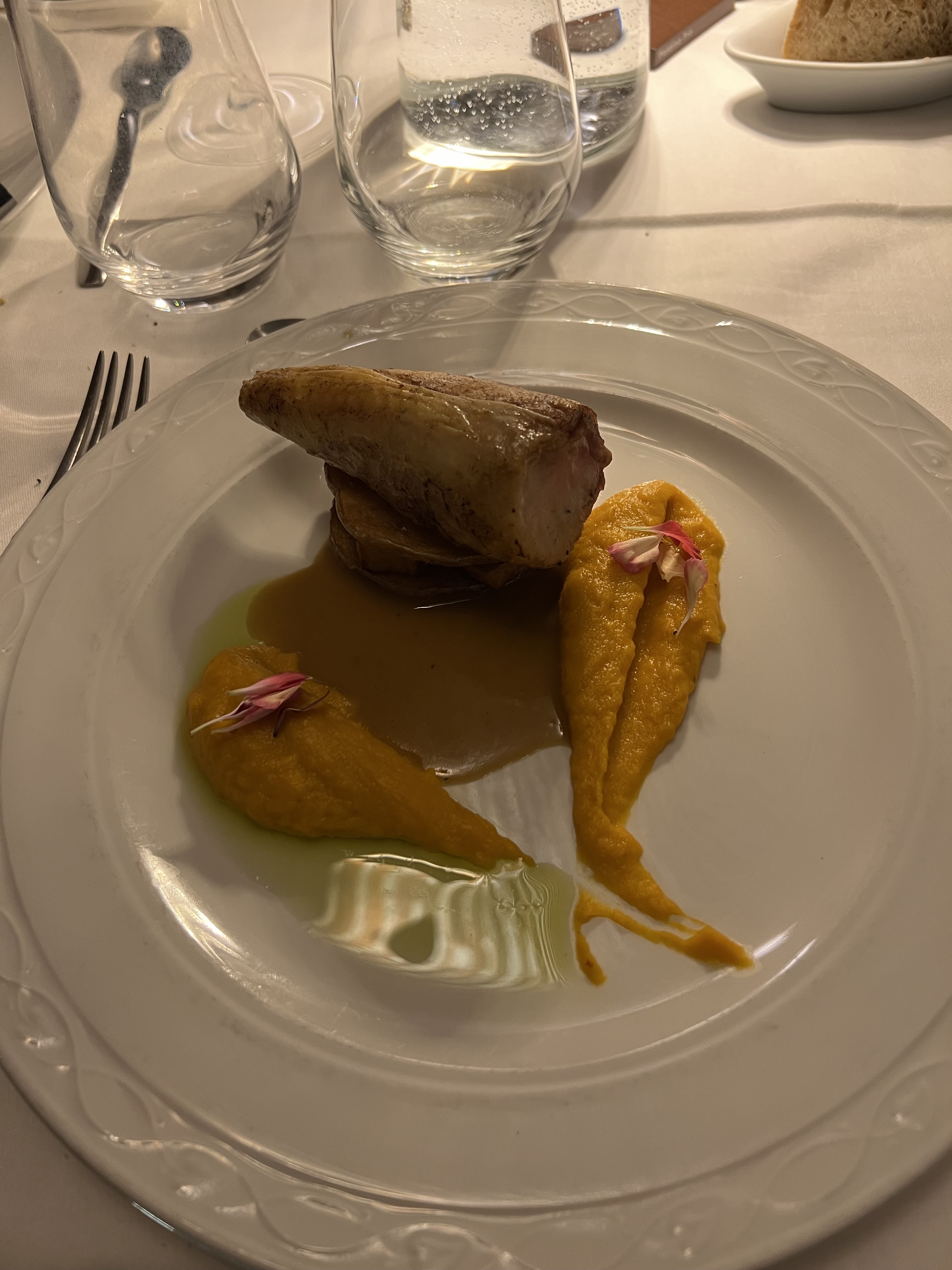 Service nul (serveur qui parle fort et de façon très familière) qui ne colle pas au cadre très beau et intimiste. Menu plutôt bon mais pas à la hauteur du prix et du cadre.